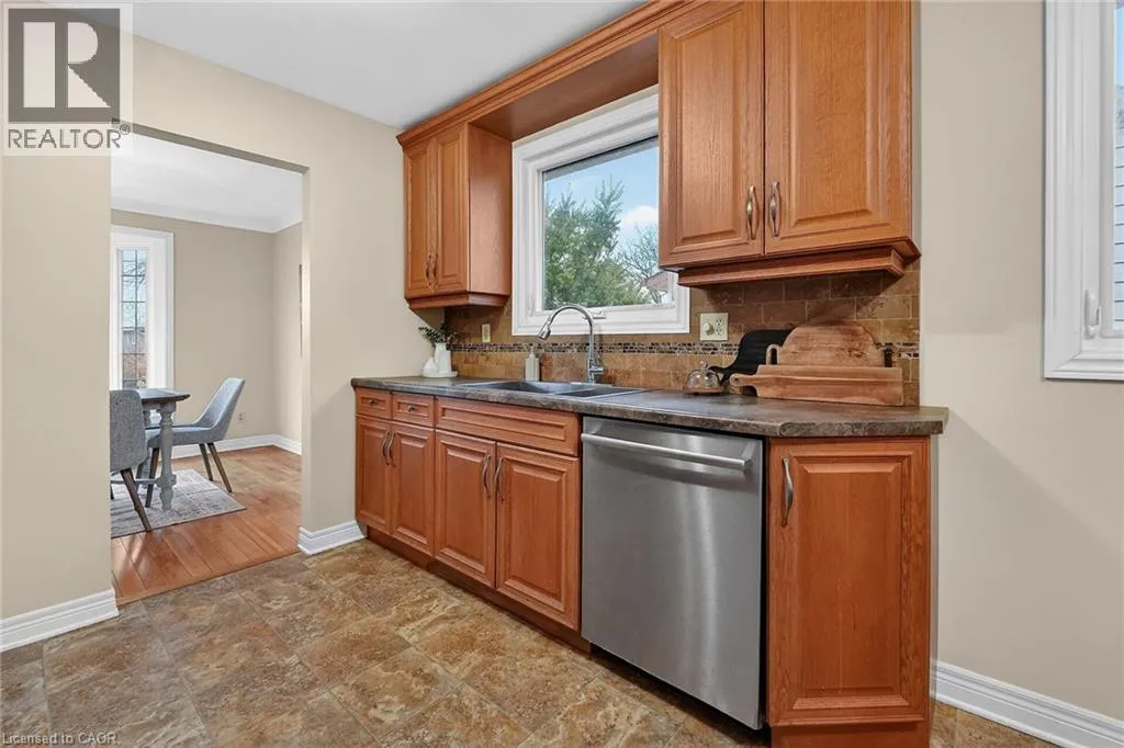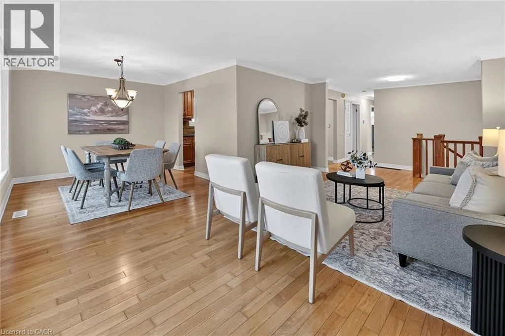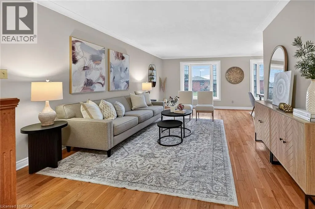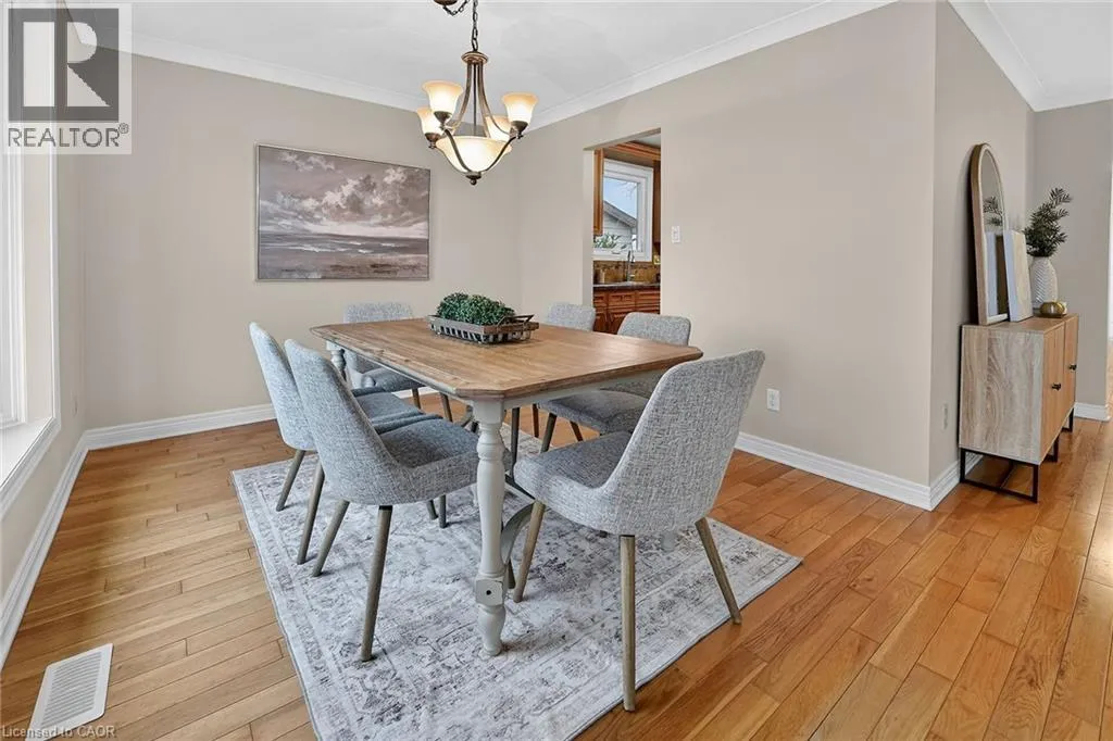 Winston to Joseph to Sidare Crt. Welcome to 9 Sidare Court, an impeccably maintained raised bungalow nestled on a quiet court in one of Grimsbyâs most desirable neighbourhoods. Bright, spacious, and truly move-in ready, this home offers 3 + 1 bedrooms, 2 full bathrooms, and a thoughtfully designed layout perfect for comfortable everyday living. A spacious foyer welcomes you to the main level, where youâll find a generous living and dining area with hardwood flooring, highlighted by two oversized bay windows that fill the space with natural light. The main floor also features an eat-in kitchen, four-piece bathroom, and three lovely bedrooms with new carpeting, including a spacious primary bedroom. The fully finished lower level adds approximately 850 sq. ft. of additional living space, offering exceptional versatility. Here youâll find a large recreation room with a cozy gas fireplace, an updated three-piece bathroom, a sizable games or hobby room, and an additional room with a large window that could easily serve as a bedroom, office, or guest space. Step outside to your private backyard retreat, complete with a well-maintained in-ground pool. The pump was replaced approximately two years ago, and the linerâinstalled around 2015âremains in good condition. The home also features an attached single garage and a large aggregate and stamped concrete driveway, providing ample parking. Mature landscaping enhances the homeâs curb appeal, creating a welcoming first impression. Ideally located just minutes from Fifty Point Conservation Area, the beachfront, scenic walking trails, dining, shopping, Costco, and convenient highway access. This home is truly flexible, perfect for families, downsizers, or anyone seeking space, comfort, and location all in one. (id:27476)