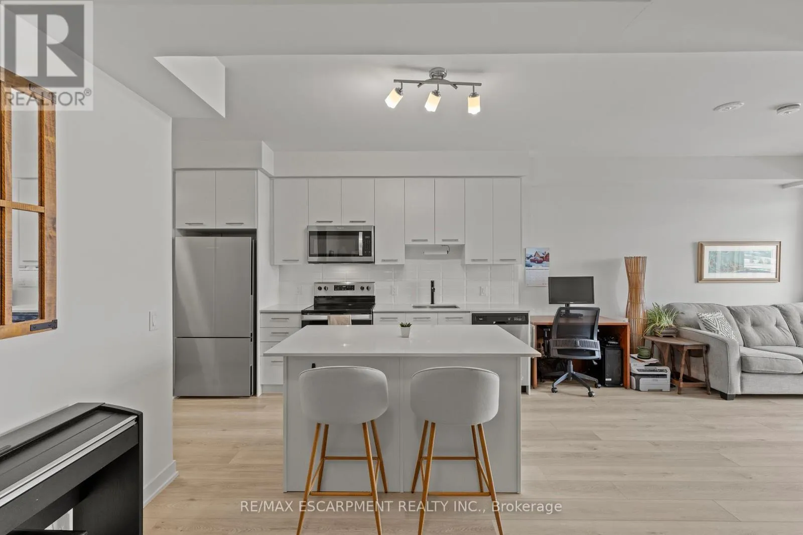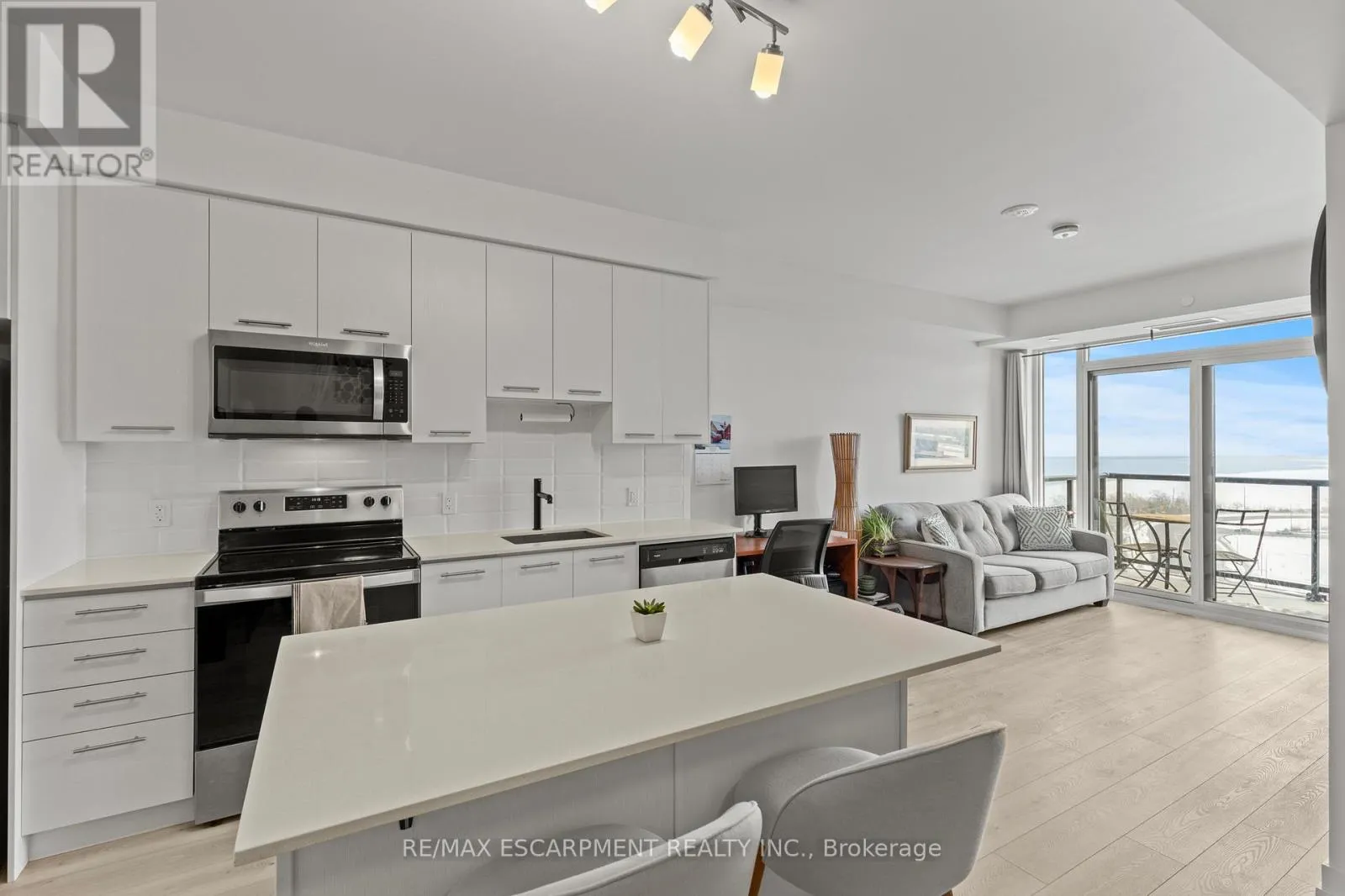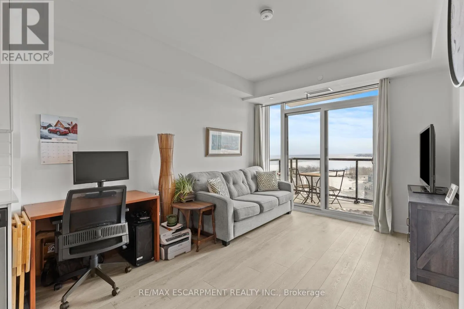 Cross Streets: windward and winston. ** Directions: windward to winston. Experience elevated lakeside living in the heart of Grimsby on the Lake. This beautifully maintained 3-year-old 1+1 bedroom condo offers the perfect blend of modern design, natural beauty, and everyday convenience.The bright, open-concept layout is filled with natural light and showcases stunning views of Lake Ontario and the Niagara Escarpment through expansive windows. The versatile den provides ideal space for a home office or guest area.Located steps from waterfront trails, parks, cafes, restaurants, and boutique shops, you'll enjoy everything this vibrant lakeside community has to offer. With quick access to the QEW, commuting to Hamilton, Niagara, or the GTA is simple and convenient.An exceptional opportunity to enjoy modern condo living surrounded by breathtaking scenery. (id:27476)