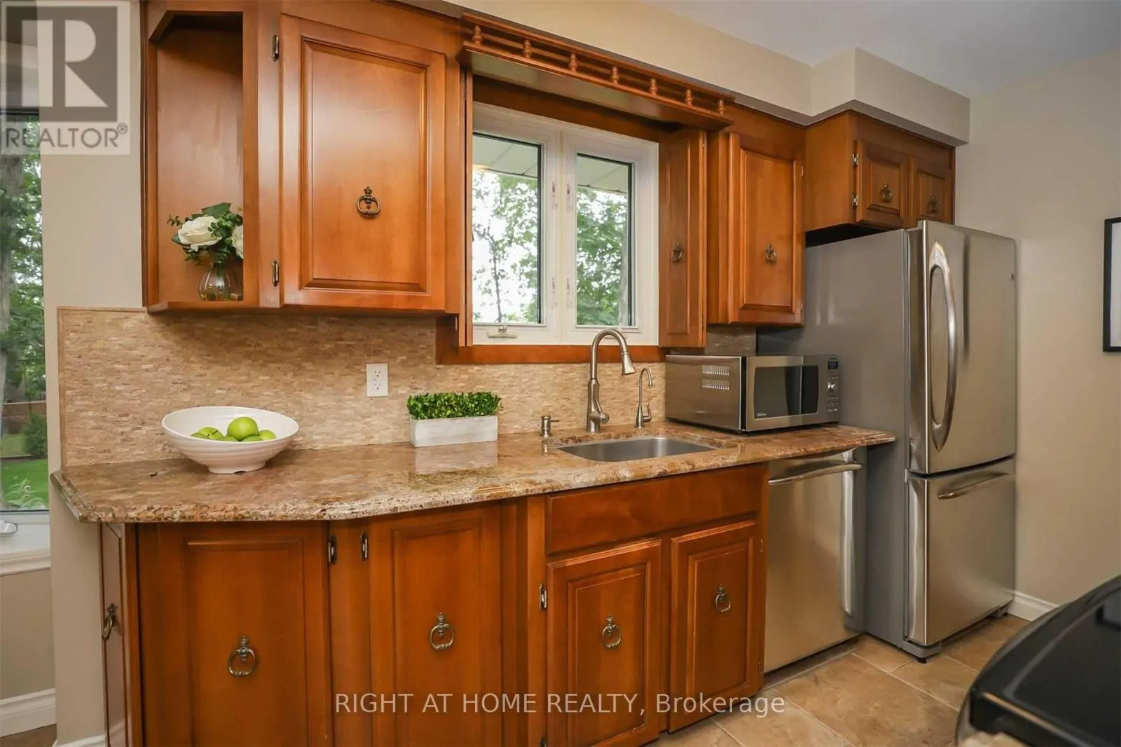 Ontario St/Olive St Fully finished bungalow in a park like setting. This 3 bedroom, 2 bathroom home offers approximately 1293 sq ft and sits on a quiet mature street. Bright living room with hardwood flooring flows into the dining area with an oversized bay window overlooking a landscaped backyard.Updated kitchen features porcelain tile flooring, granite countertops, stone backsplash and stainless steel appliances.Main floor includes a spacious primary bedroom with double closets, two additional bedrooms, a full bathroom and two linen closets.Finished lower level offers excellent entertainment space with a large recreation room, gas fireplace and additional bathroom.Parking for up to 6 vehicles. Convenient location only 2 minutes to the QEW.Included. Built in dishwasher, stainless steel stove, stainless steel fridge, microwave, wall unit in living room, light fixtures, window coverings, bar stools, basement table and chairs, central vacuum with attachments, shed, washer and dryer, and bar fridge. (id:27476)