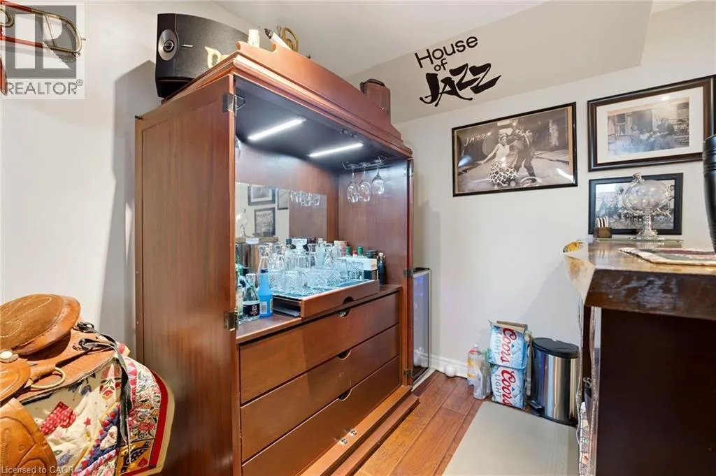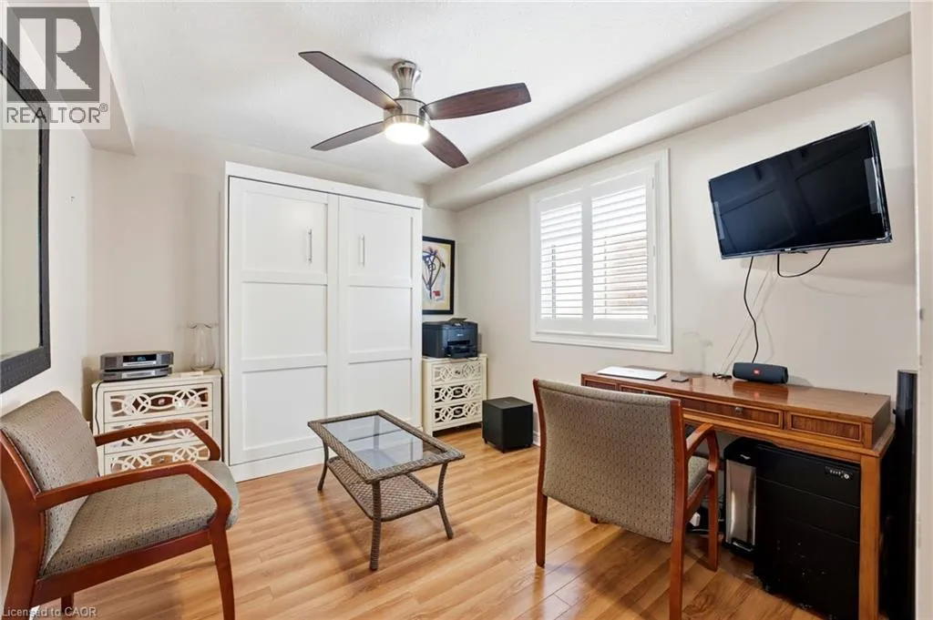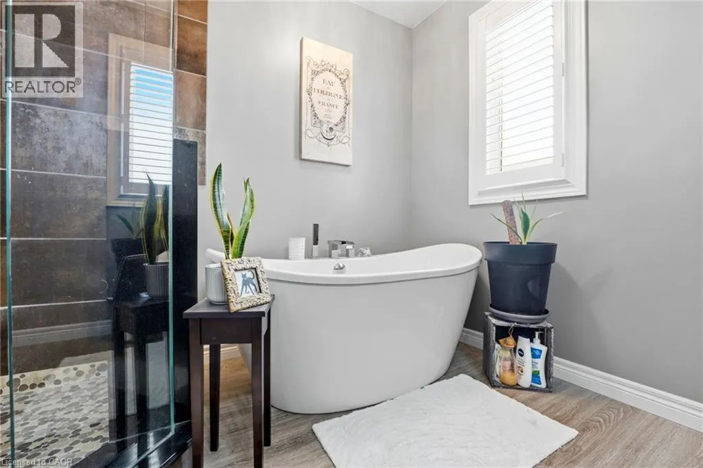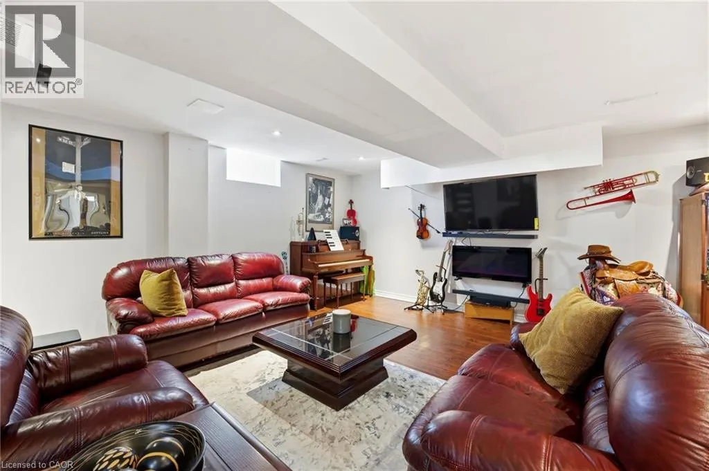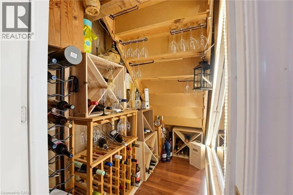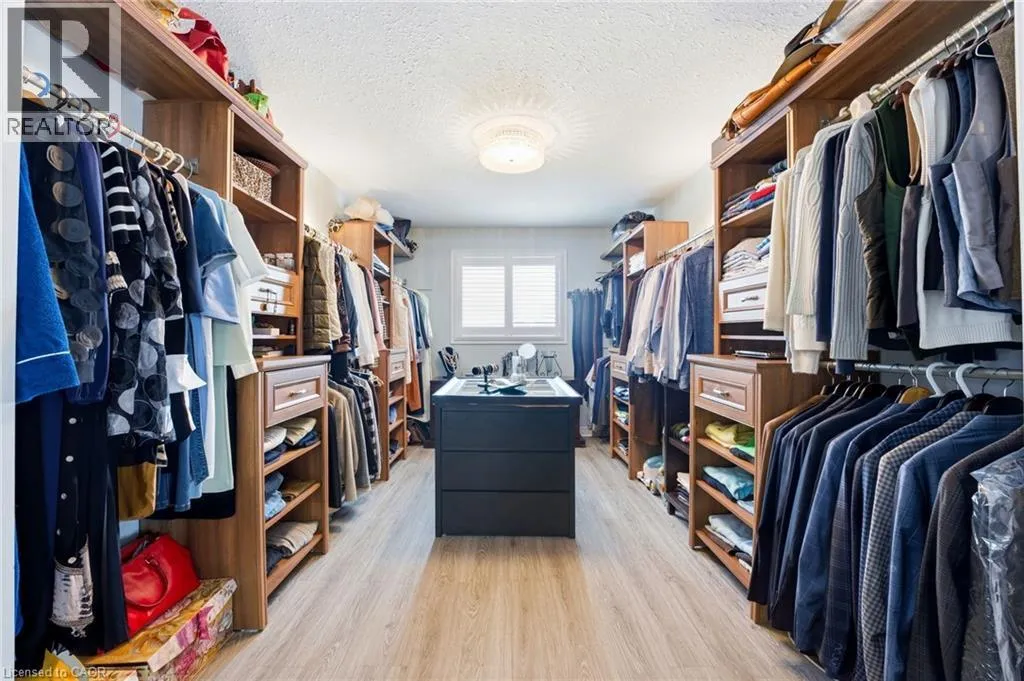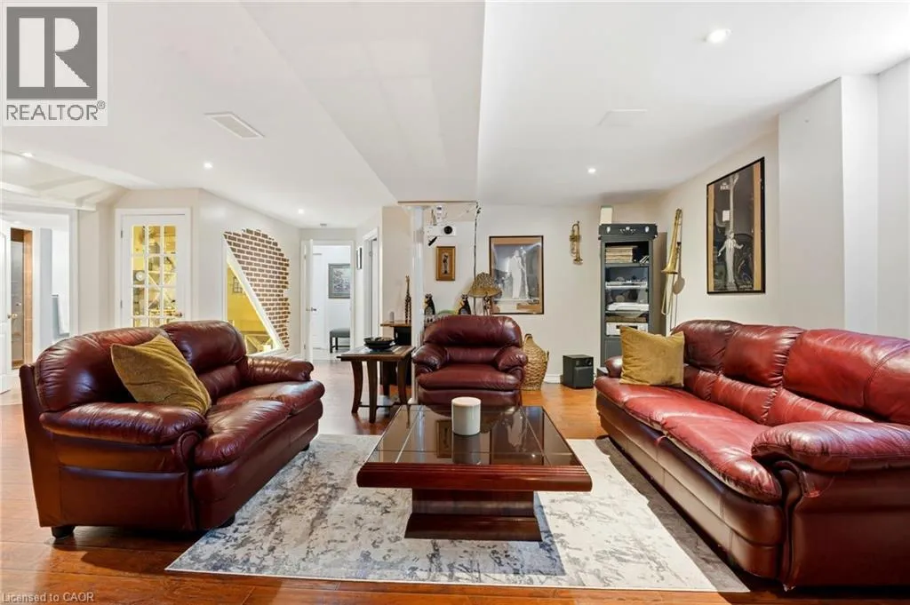 Dorchester Drive to Udell Way to Griffith Discover the charm and versatility of this beautiful bungaloft located in the heart of Grimsby along the renowned Niagara Wine Route. Just a short walk to local schools and the historic Olde Town, you'll enjoy easy access to vibrantt shops, restaurants, and nearby Ontario wineries. This thoughtfully designed home offers 2 bedrooms and 4 bathrooms with a bright open-concept layout featuring hardwood, laminate, and tile flooring throughout. The main floor includes a spacious living area and a light-filled kitchen with granite countertops, a gas range, and seamless flow into the dining area. The dining room was originally the main-floor primary bedroom and could easily be converted back to suit your needs. A patio door walkout leads to a beautifully landscaped, fully fenced backyard complete with mature trees, a deck, a recently installed retractable awning - perfect for relaxing or entertaining. The second floor is dedicated to an impressive primary retreat, featuring a massive bedroom with an electric fireplace, two dressing rooms one with closet organizers, and a luxurious updated 5-piece ensuite bathroom. The finished basement adds exceptional living space with a large recreation room, a distinctive glass wine storage room under the stairs, plus two additional versatile rooms - a den with a closet and an office with a closet - ideal for work-from-home flexibility or guest accommodations. Additional highlights include a recently updated furnace (2021) and a private yard offering both comfort and privacy. This unique bungaloft combines flexible living spaces, stylish finishes, and an unbeatable location in one of Niagara's most desirable communities. (id:27476)