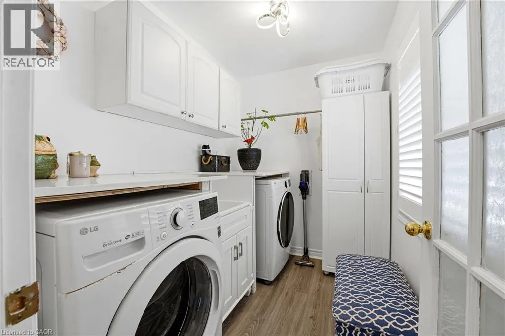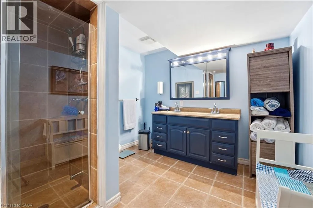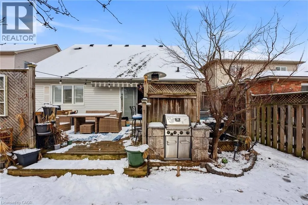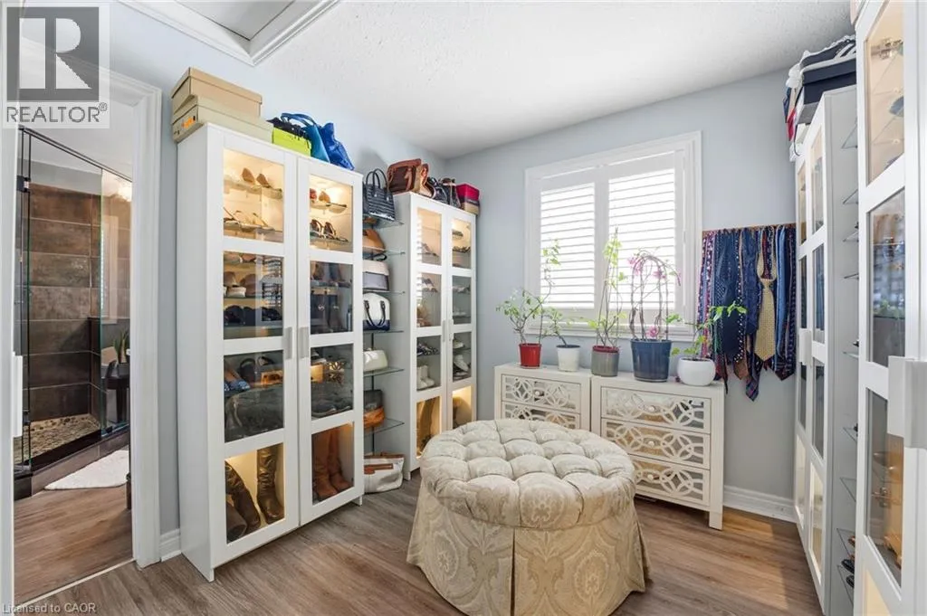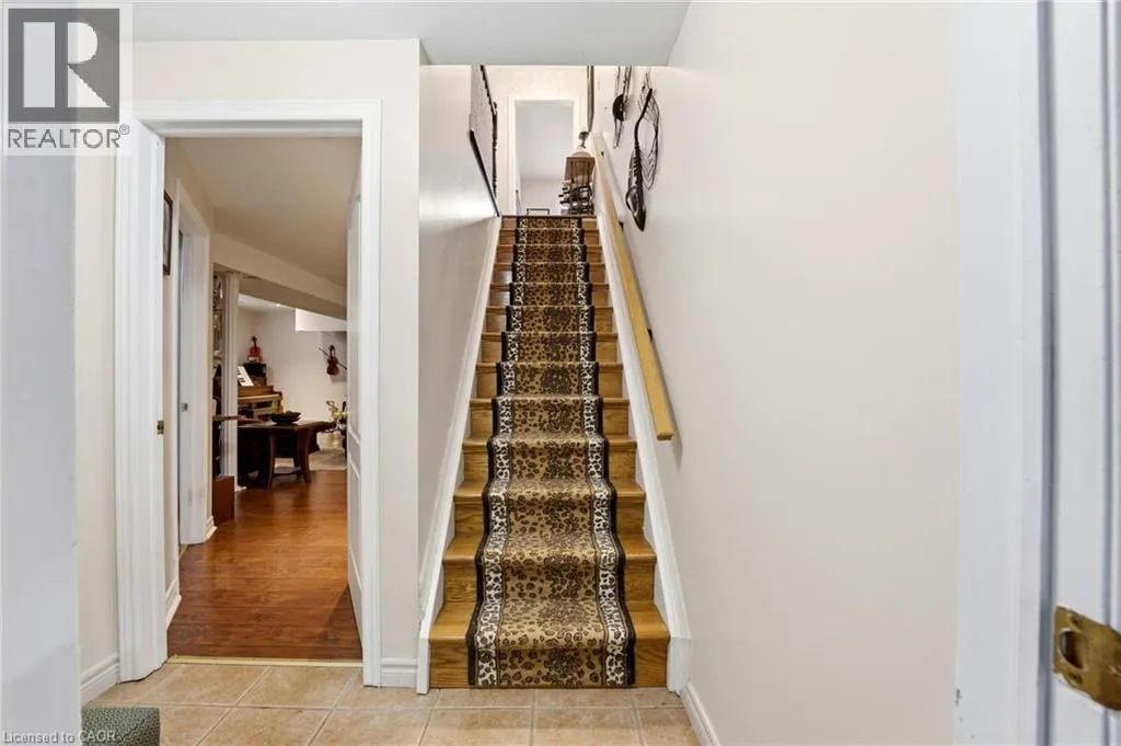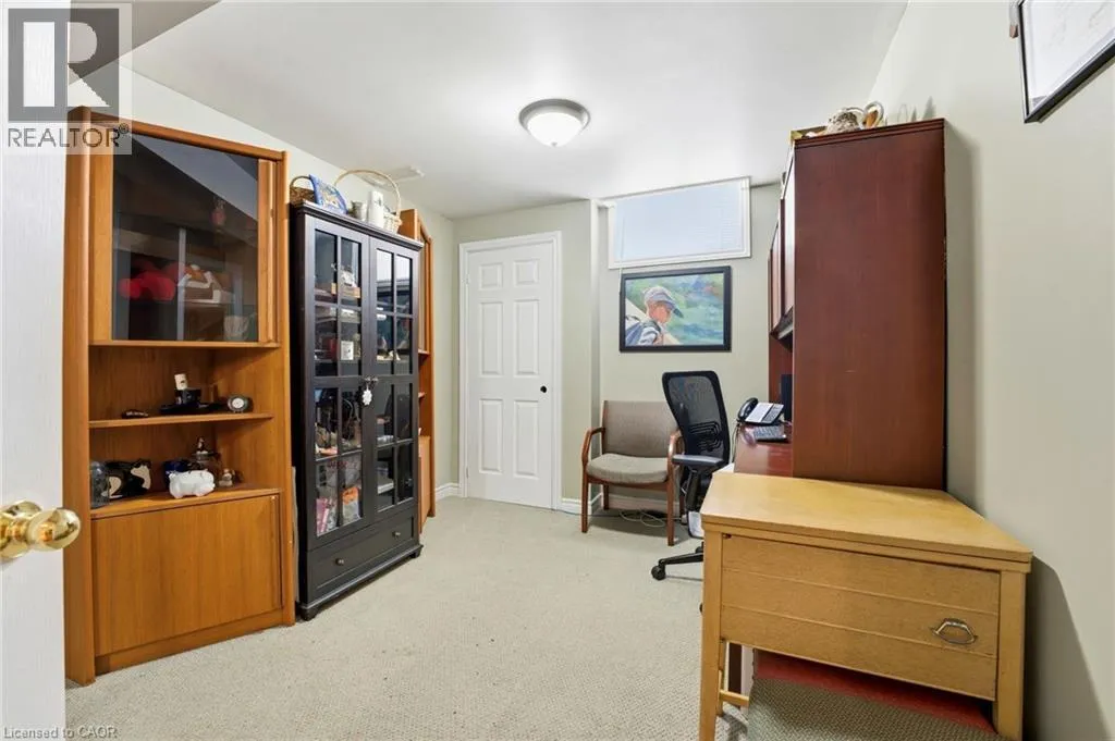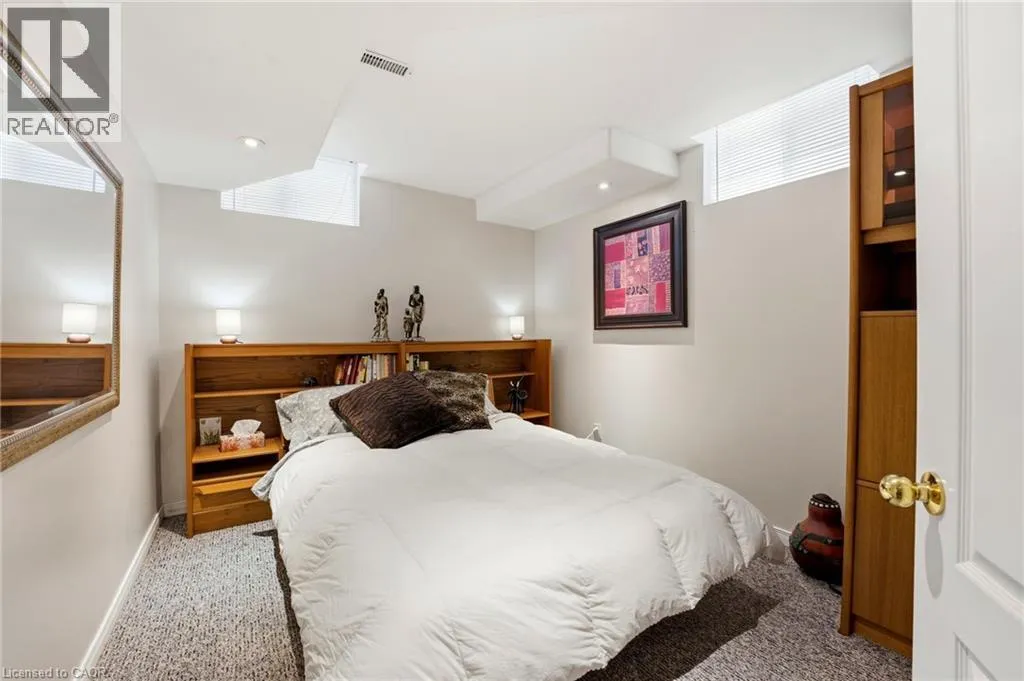 Dorchester Drive to Udell Way to Griffith Discover the charm and versatility of this beautiful bungaloft located in the heart of Grimsby along the renowned Niagara Wine Route. Just a short walk to local schools and the historic Olde Town, you'll enjoy easy access to vibrantt shops, restaurants, and nearby Ontario wineries. This thoughtfully designed home offers 2 bedrooms and 4 bathrooms with a bright open-concept layout featuring hardwood, laminate, and tile flooring throughout. The main floor includes a spacious living area and a light-filled kitchen with granite countertops, a gas range, and seamless flow into the dining area. The dining room was originally the main-floor primary bedroom and could easily be converted back to suit your needs. A patio door walkout leads to a beautifully landscaped, fully fenced backyard complete with mature trees, a deck, a recently installed retractable awning - perfect for relaxing or entertaining. The second floor is dedicated to an impressive primary retreat, featuring a massive bedroom with an electric fireplace, two dressing rooms one with closet organizers, and a luxurious updated 5-piece ensuite bathroom. The finished basement adds exceptional living space with a large recreation room, a distinctive glass wine storage room under the stairs, plus two additional versatile rooms - a den with a closet and an office with a closet - ideal for work-from-home flexibility or guest accommodations. Additional highlights include a recently updated furnace (2021) and a private yard offering both comfort and privacy. This unique bungaloft combines flexible living spaces, stylish finishes, and an unbeatable location in one of Niagara's most desirable communities. (id:27476)