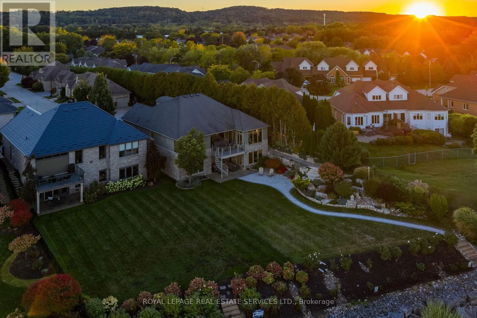 Cross Streets: Maple Ave - Lake St. ** Directions: Maple Ave & Lake St. An upscale lakeside lifestyle awaits in Lakeland Landing, an exclusive detached bungalow condominium community in Grimsby on the shores of Lake Ontario. Siding onto a grove of trees, this stunning 4-bedroom residence with a beautifully finished walkout basement is one of only four estates with direct beach access. Enjoy nearby waterfront parks, the Grimsby Waterfront Trail, Forty Mile Creek Park, Foran's Marina, the shops and restaurants of Grimsby on the Lake, and wineries and fine dining minutes away with easy QEW access at the gateway to Ontario's Wine Country. Outstanding curb appeal and magnificent professional landscaping with a cobblestone driveway accommodating 6 cars, extensive use of armour stone, and the backyard is a private lakeside retreat with two terraces designed to capture sweeping water views. Custom-built by DeHaan Homes, the home showcases exceptional craftsmanship with 9 and 10-ft ceilings, engineered hardwood floors, custom millwork, designer lighting, and expansive windows capturing breathtaking lake views. The open-concept main level features functional, elegant living spaces, a great room with a quartzite feature wall, 2-sided gas fireplace and exceptional lake views, a chef's kitchen with upgraded quartz counters, 10' waterfall island with a breakfast bar, and premium appliances, and a dining area with a walkout to a covered terrace with a fireplace, frameless glass railings and a custom wrought iron staircase to the lower terrace. The primary suite offers lake views and a luxurious 5-piece ensuite. The walkout lower level includes a renovated family room with a fireplace, a second kitchen with Thermador appliances, a home theatre, two bedrooms, a 4-piece bath and terrace access. Recent upgrades (2022-2025) include renovated living spaces, updated kitchens, EV charger rough-in, electrical upgrades, and security window film. (id:27476)