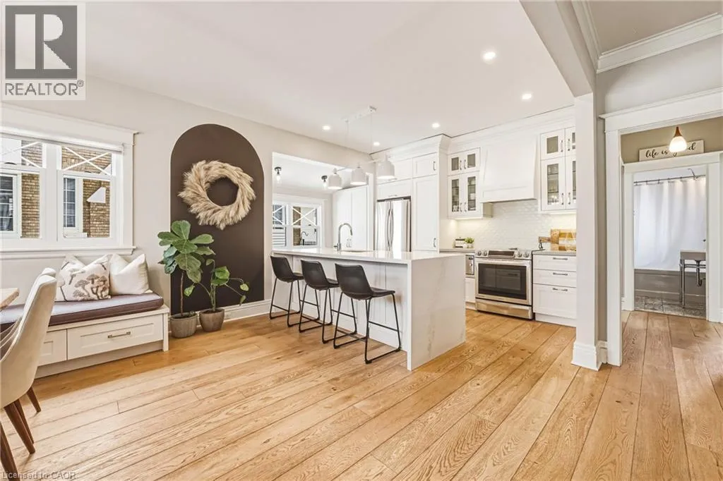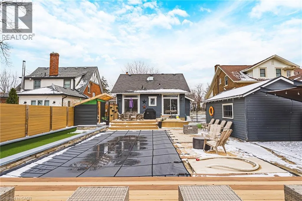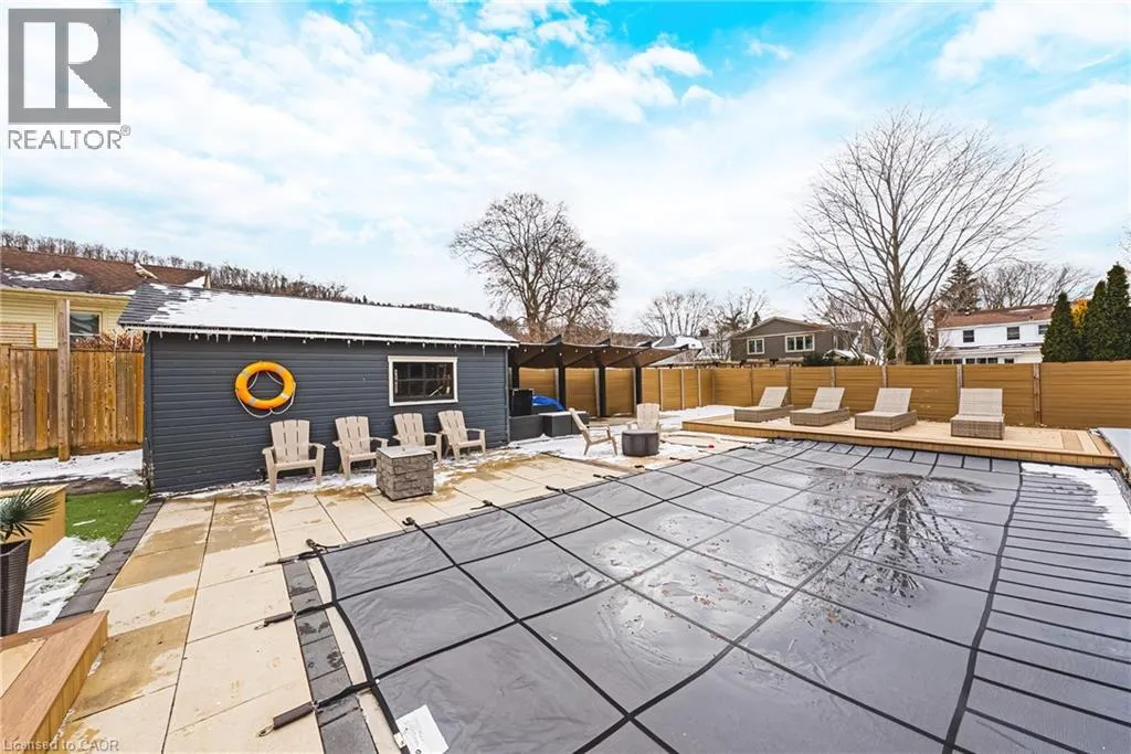 From Main St W (Livingston), Left onto Nelles, Slight right to stay on Nelles Blvd Summer awaits you, at 6 Nelles Blvd! Ideally situated in one of Grimsbyâs most sought-after neighbourhoods. Surrounded by mature trees and offering stunning Escarpment views, this location provides the perfect blend of tranquility and convenience, just moments from all amenities. Set on an oversized lot, the backyard is a true private oasis. In 2021 a full luxury backyard renovation was completed. Enjoy an in-ground saltwater pool, bocce ball court, composite decking, and a cozy gas fireplaceâperfect for entertaining or relaxing. With so many exceptional features, this outdoor space is exceptional. The beautifully finished, move-in ready home features two main floor bedrooms, each with walkouts to the backyard. The upper level boasts a luxurious primary suite complete with a skylight and a private ensuite, creating a bright and serene retreat. The gourmet kitchen is thoughtfully designed, featuring high-end finishes and a cozy built-in breakfast nookâperfect for casual dining and everyday living. The living room is complete with a wood burning fireplace, perfect for a night in. With so many exceptional features, this home and outdoor space truly has it all. Ample parking for up to five vehicles adds to the homeâs exceptional functionality and convenience. Walk to the village of Grimsby with shops and restaurants. This is a place to call home. (id:27476)