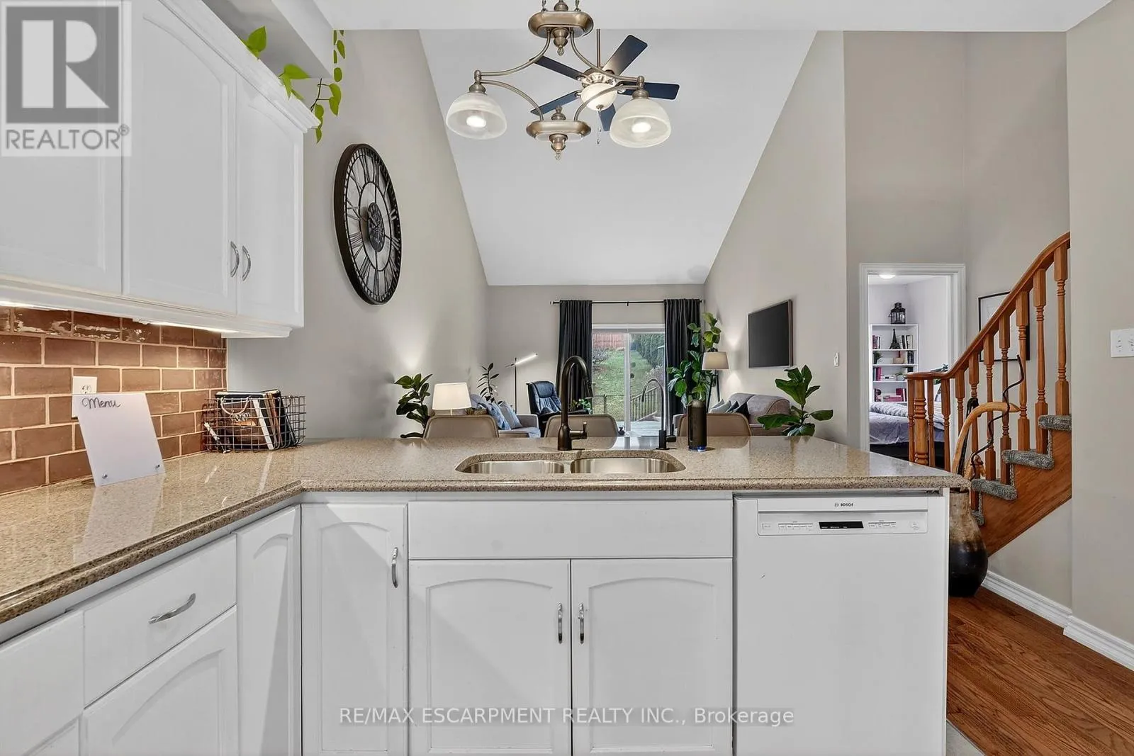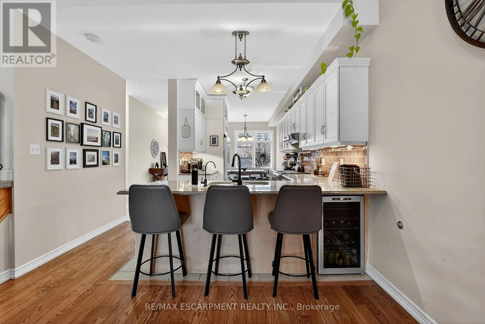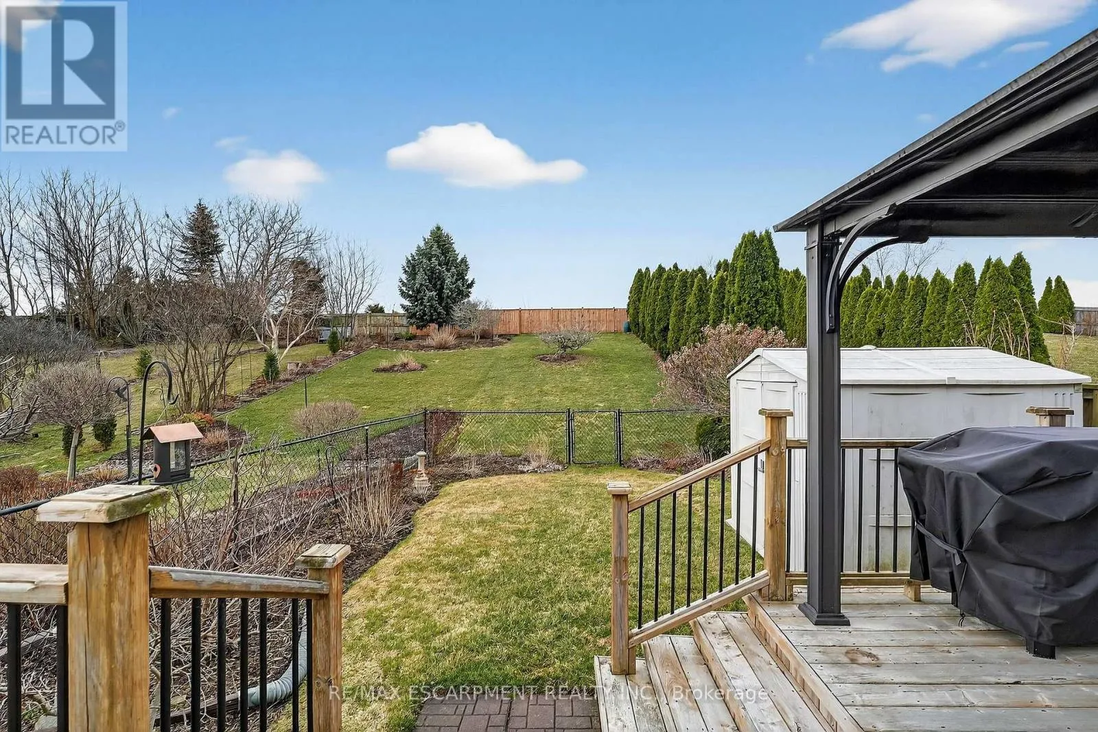 Cross Streets: Book Road. ** Directions: Book Road to Conrad Place. Tucked away on a quiet dead-end street just steps from Lake Ontario, this stylish bungaloft offers the perfect blend of comfort, privacy, and effortless living. Designed with downsizers, retirees, and empty nesters in mind, 6 Conrad Place provides the convenience of main-floor living with loads of additional space for guests and family. Set on an incredible lot with over 260 feet of depth, the backyard is ideal for morning coffee, evening wine, or entertaining friends on the spacious deck with gazebo and gas BBQ hookup. Inside, soaring vaulted ceilings and gleaming hardwood floors create a bright, welcoming living space. The eat-in kitchen is both elegant and functional, featuring granite countertops, a breakfast bar peninsula, built-in wine fridge, reverse osmosis water purification, and a premium Thermador gas range. The main-floor primary bedroom offers comfort and convenience with double closets and ensuite privilege to a spacious 4-piece bathroom. BONUS - additional laundry hookup located on the main floor for those seeking one floor living. Upstairs, a versatile loft overlooking the living room is perfect for a home office, reading lounge, or guest retreat (Murphy bed included), complemented by a second bedroom and stunning bathroom. The partially finished basement offers additional living space and excellent storage. Recent updates include new shingles (2024), EV rough-in (2025), fridge (2025), washer & dryer (2025), and new rear fence. Enjoy peaceful lakeside living in the charming town of Grimsby. (id:27476)
