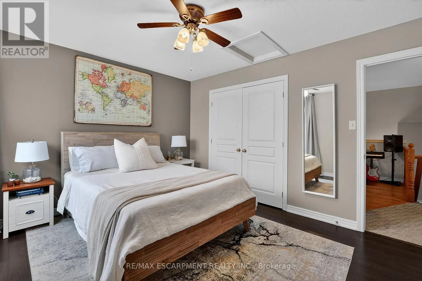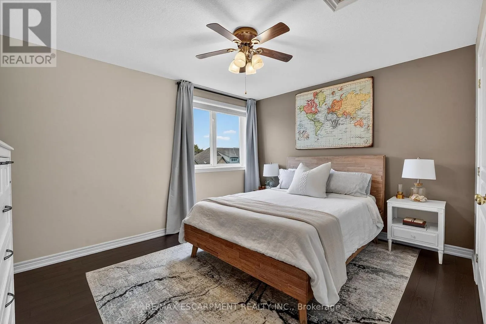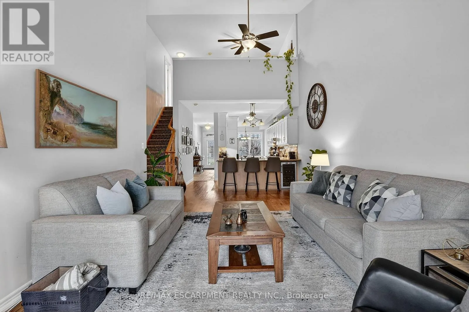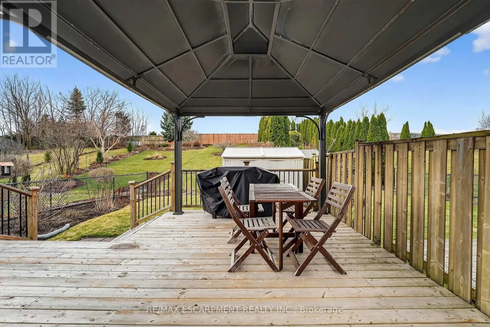 Cross Streets: Book Road. ** Directions: Book Road to Conrad Place. Tucked away on a quiet dead-end street just steps from Lake Ontario, this stylish bungaloft offers the perfect blend of comfort, privacy, and effortless living. Designed with downsizers, retirees, and empty nesters in mind, 6 Conrad Place provides the convenience of main-floor living with loads of additional space for guests and family. Set on an incredible lot with over 260 feet of depth, the backyard is ideal for morning coffee, evening wine, or entertaining friends on the spacious deck with gazebo and gas BBQ hookup. Inside, soaring vaulted ceilings and gleaming hardwood floors create a bright, welcoming living space. The eat-in kitchen is both elegant and functional, featuring granite countertops, a breakfast bar peninsula, built-in wine fridge, reverse osmosis water purification, and a premium Thermador gas range. The main-floor primary bedroom offers comfort and convenience with double closets and ensuite privilege to a spacious 4-piece bathroom. BONUS - additional laundry hookup located on the main floor for those seeking one floor living. Upstairs, a versatile loft overlooking the living room is perfect for a home office, reading lounge, or guest retreat (Murphy bed included), complemented by a second bedroom and stunning bathroom. The partially finished basement offers additional living space and excellent storage. Recent updates include new shingles (2024), EV rough-in (2025), fridge (2025), washer & dryer (2025), and new rear fence. Enjoy peaceful lakeside living in the charming town of Grimsby. (id:27476)