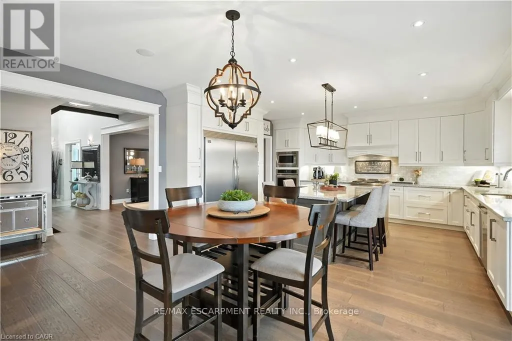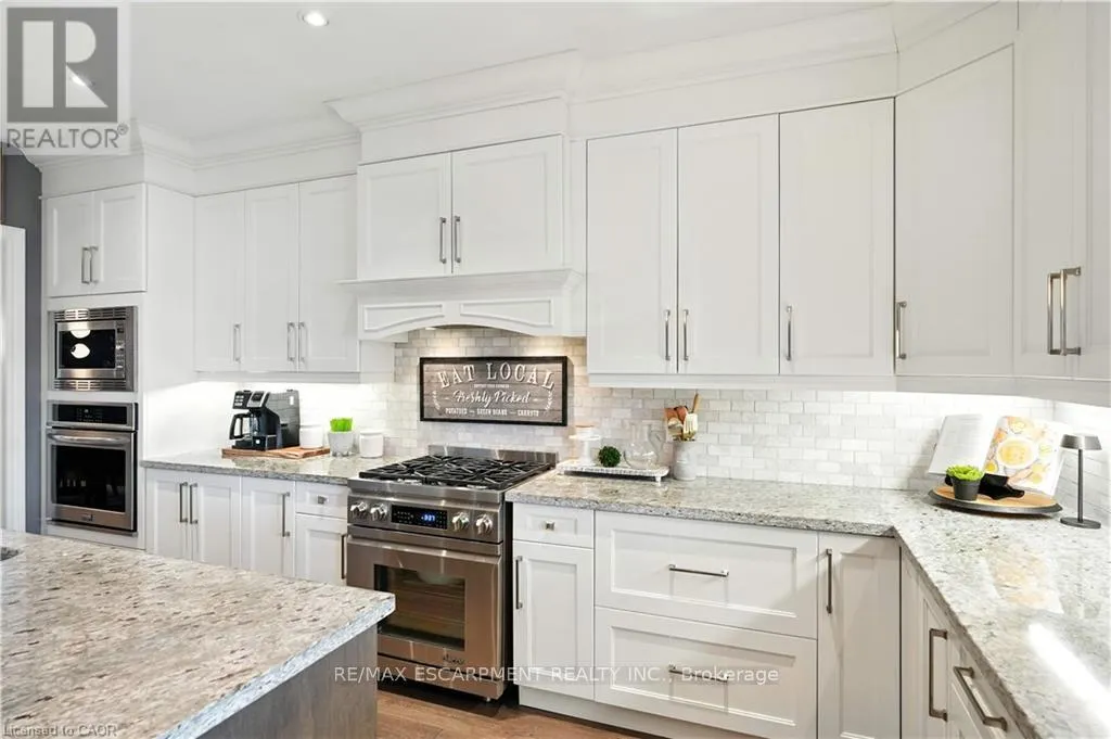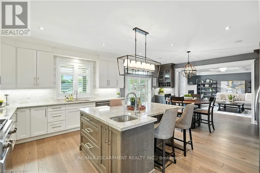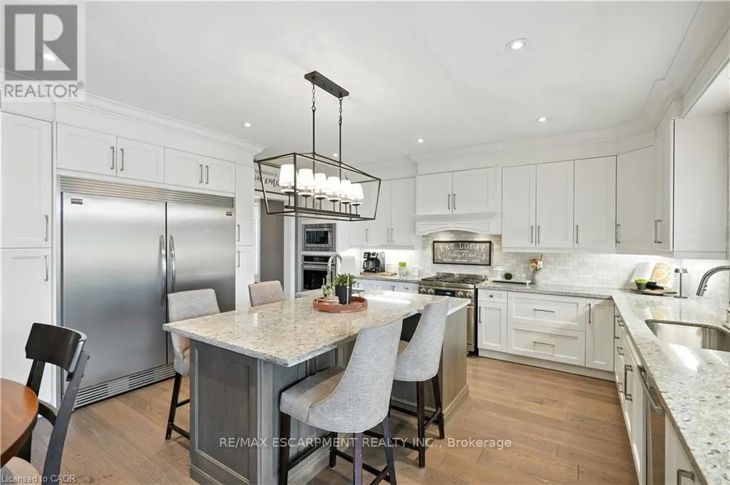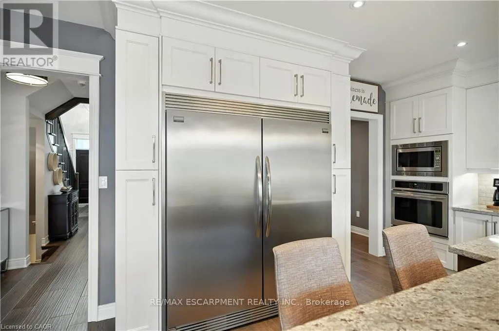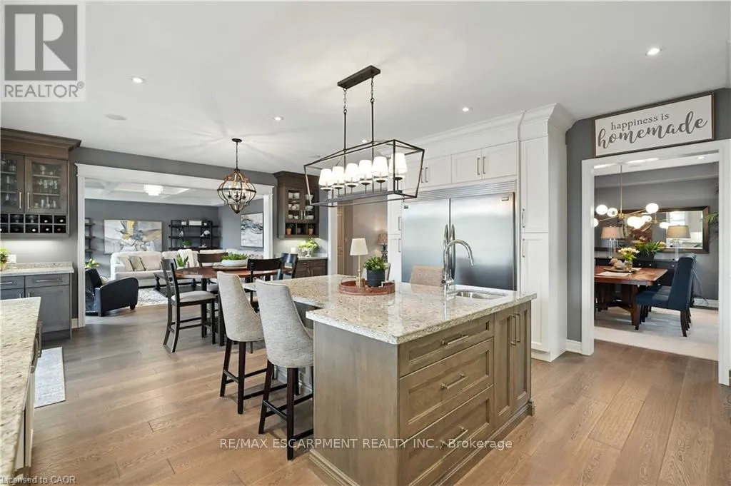 Cross Streets: Lampman Dr. & Main St. ** Directions: QEW Niagara, South on Fifty Rd., East on Hwy 8, North on Lampman Dr. Stunning Custom-Built Executive Style HOME in Grimsby, completely finished top to bottom, professionally designed & decorated throughout and truly move-in ready. Ideal for Large or Multi-Generational Families, featuring 2 full Living Spaces with separate entrances, 2 Kitchens, 6 Bedrooms and 4.5 bathrooms. Main level boasts 9' ceilings, wide plank flooring, formal dining room with California Shutters, and a Gourmet Kitchen with 2 toned Cabinets, Granite countertops, large Island with Prep Sink, SS Appliances including Side-by-Side Fridge/Freezer, Gas Stove, Double Ovens and Custom Built-in Coffee and Wine Bar Stations. Kitchen overlooks the Great Room complete with Gas Fireplace, Coffered Ceilings, Recessed Lighting and Walk-Out to an oversized Covered Porch. Upper level features 4 spacious Bedrooms including a Primary Retreat with walk-in closet, 5-piece Primary Ensuite with Glass Shower, Soaker Tub, and Double Sinks. 3 additional Bedrooms - two with Jack & Jill Bath, one with it's own private 3-piece Ensuite, and convenient upper-level Laundry. Fully finished LL offers a Luxury In-Law Suite with a gorgeous designer Kitchen, brand new SS Appliances, separate Living and Dining areas with Custom Built-In Cabinetry, 2 spacious Bedrooms, full 4pc bath, and 2nd Laundry hookup-completely turnkey. Exterior boasts a Triple Car Garage with AGDO, ample Driveway Parking, Aggregate Walkway, Covered Porch, and landscaped yard. This stunning HOME is located in a family-friendly neighbourhood nestled beneath the Niagara Escarpment, close to Vineyards, Parks, Schools, Shopping, and convenient Highway access. RSA. (id:27476)