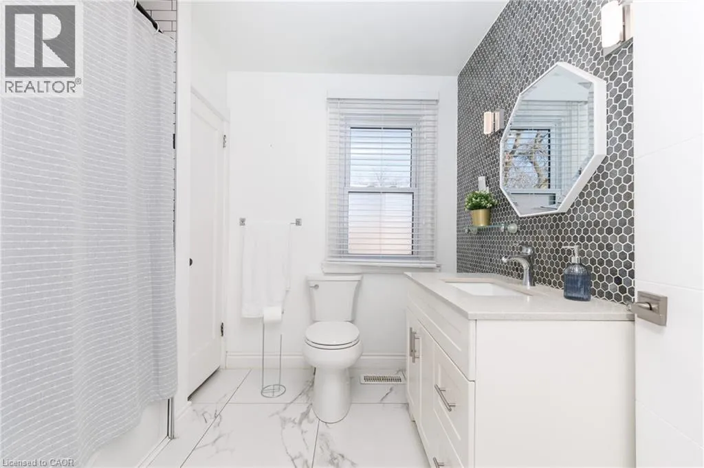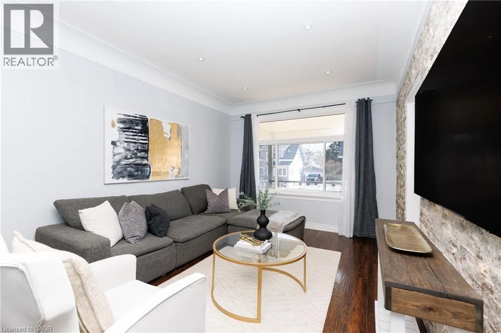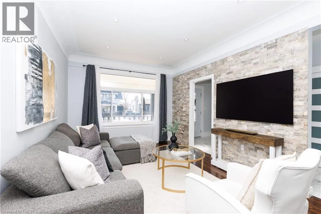 Christie to Olive street. Right on Fairview Beautifully updated 5-bedroom, 2-bath family home located on the desirable lakeside of Grimsby at 11 Fairview Road. Set on a generous lot, this property offers a large, private backyard surrounded by mature trees and fruit trees, ideal for families, entertaining, or future outdoor enhancements. A welcoming covered front porch leads into a bright and spacious interior featuring updated flooring, modern lighting, and abundant natural light throughout. The main floor includes a versatile primary bedroom or home office, stylish 4-piece bath, convenient laundry with exterior access, and an updated kitchen complete with stone countertops, backsplash, and ample cabinetry. The open living and dining areas provide comfortable everyday living and entertaining space. The upper level features four additional bedrooms, an updated 3-piece bath with glass shower, and a bonus den/sunroom overlooking the fully fenced backyard, perfect as a workspace, playroom, or relaxation area. The home offers excellent attic height with potential for additional finished living space, while the spacious lot presents potential for a future garage addition. Basement provides ample storage. Double driveway with parking for three vehicles or space for a boat or RV. Ideally located close to schools, parks, downtown Grimsby amenities, lakefront access, wineries, and just minutes to QEW access for commuters. (id:27476)