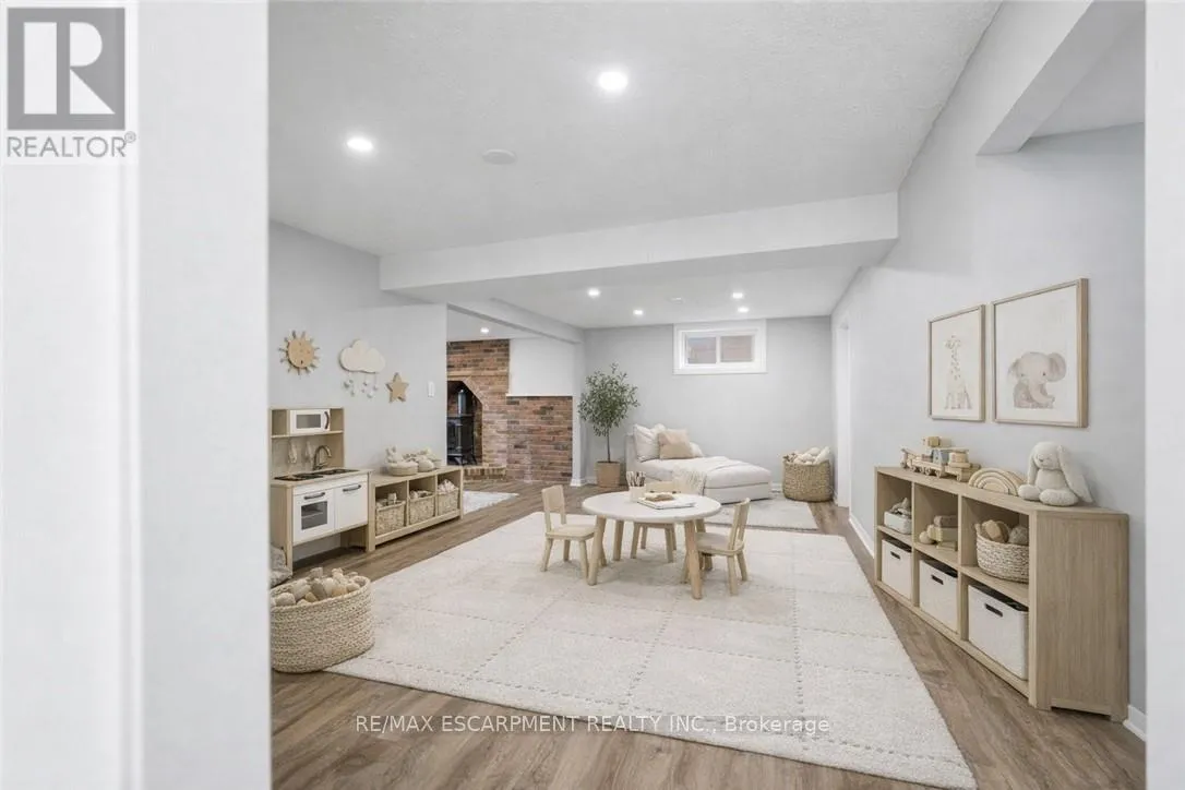 Cross Streets: Nelles / Lake. ** Directions: Lake Street to Nelles Rd N to Margaret Ave. Welcome to this brick bungalow in a prime Grimsby location just steps to the waterfront. Featuring an updated kitchen and a bright, spacious living room, this home offers 3+1 bedrooms and 2 full bathrooms. The finished basement includes a cozy rec room with exposed brick, a gas fireplace, and a projector-perfect for relaxing or entertaining. Enjoy the large, private backyard complete with an incredible playground-ideal for families-along with the convenience of an attached garage. Located within walking distance to Nelles Beach Park, Lakeview Terrace Park and the Grimsby Marina, with quick QEW access for commuters. This is the perfect home for a young family, a first time buyer or someone looking to upsize from their condo. (id:27476)