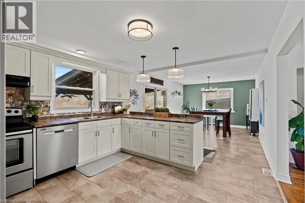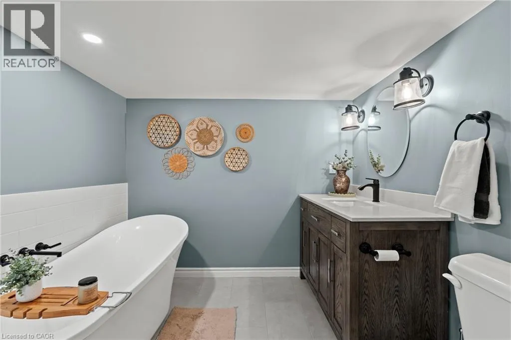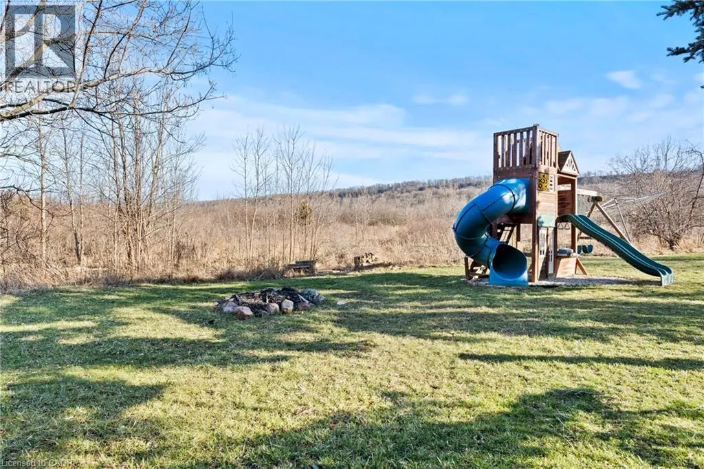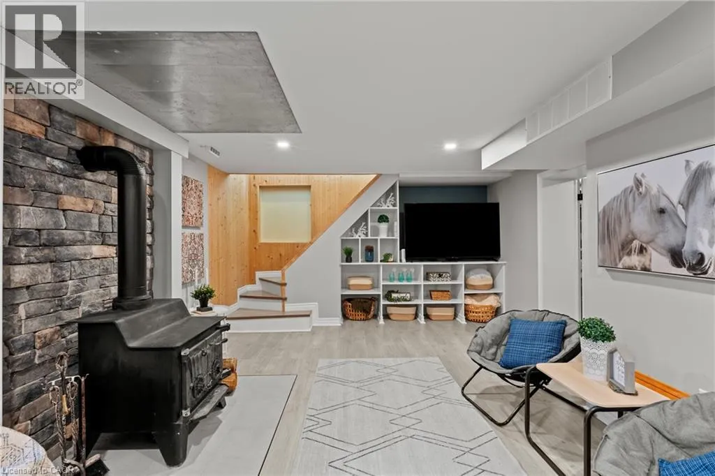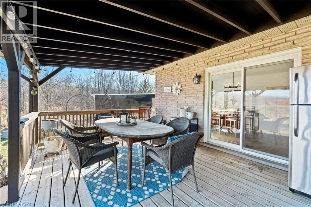 Main St W. to Cline Mountain Rd. S. Tucked away on a quiet dead-end street beneath the escarpment, this sprawling all-brick bungalow offers over 3,000 sq ft of thoughtfully designed living space. Set on an expansive 110 x 120 ft lot with no rear neighbours, the setting is as private as it is peaceful. Inside, the home features 3+2 bedrooms, a functional main floor laundry, and a beautifully defined dining room, perfect for hosting and everyday living. The layout offers both openness and intention, anchored by two wood-burning fireplaces that bring warmth and character to multiple living spaces. The kitchen walks out to a covered deck overlooking the private backyard, complete with a hot tub, creating a seamless indoor-outdoor experience ideal for relaxing or entertaining. With abundant storage throughout and parking for up to 8 vehicles, this home delivers both comfort and practicality. A rare opportunity to live in a quiet, established pocket while enjoying space, privacy, and the natural beauty of the escarpment. (id:27476)