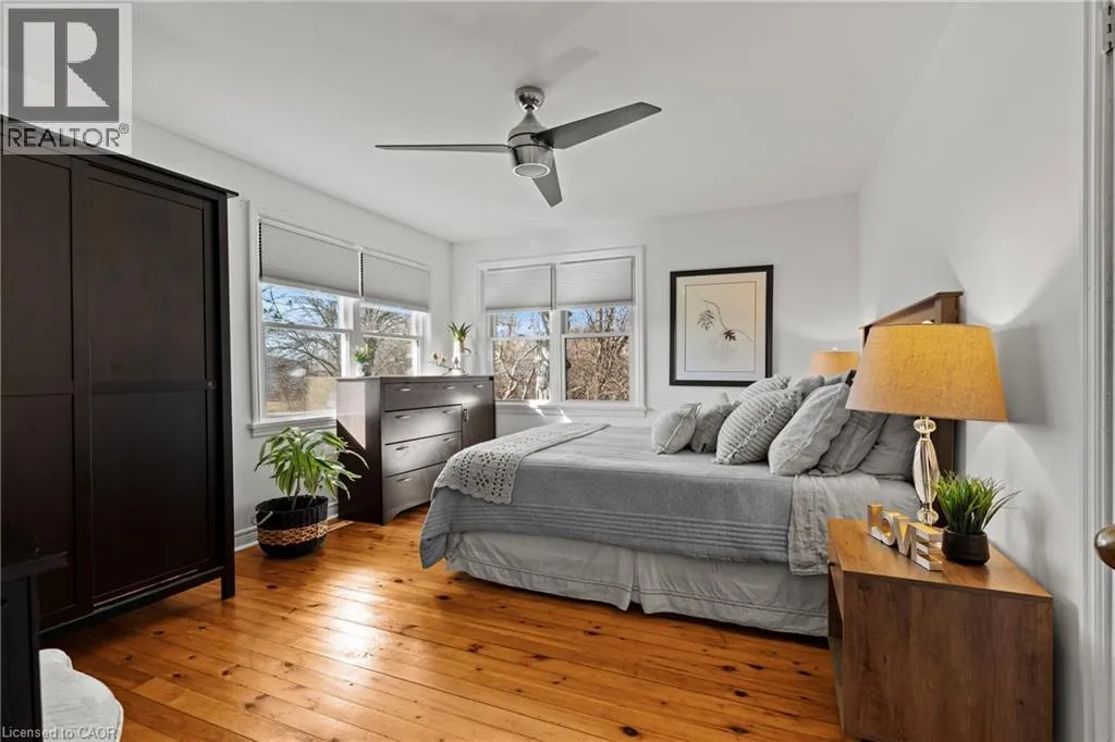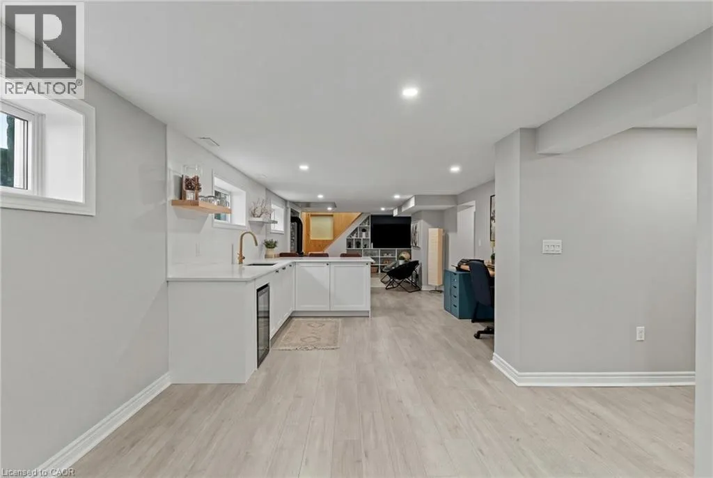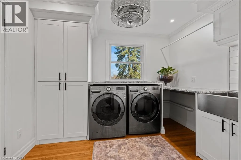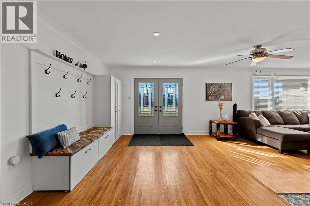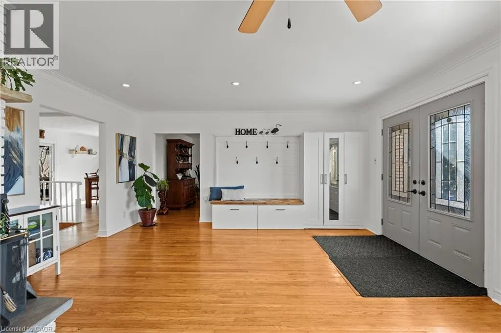 Main St W. to Cline Mountain Rd. S. Tucked away on a quiet dead-end street beneath the escarpment, this sprawling all-brick bungalow offers over 3,000 sq ft of thoughtfully designed living space. Set on an expansive 110 x 120 ft lot with no rear neighbours, the setting is as private as it is peaceful. Inside, the home features 3+2 bedrooms, a functional main floor laundry, and a beautifully defined dining room, perfect for hosting and everyday living. The layout offers both openness and intention, anchored by two wood-burning fireplaces that bring warmth and character to multiple living spaces. The kitchen walks out to a covered deck overlooking the private backyard, complete with a hot tub, creating a seamless indoor-outdoor experience ideal for relaxing or entertaining. With abundant storage throughout and parking for up to 8 vehicles, this home delivers both comfort and practicality. A rare opportunity to live in a quiet, established pocket while enjoying space, privacy, and the natural beauty of the escarpment. (id:27476)