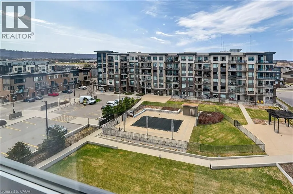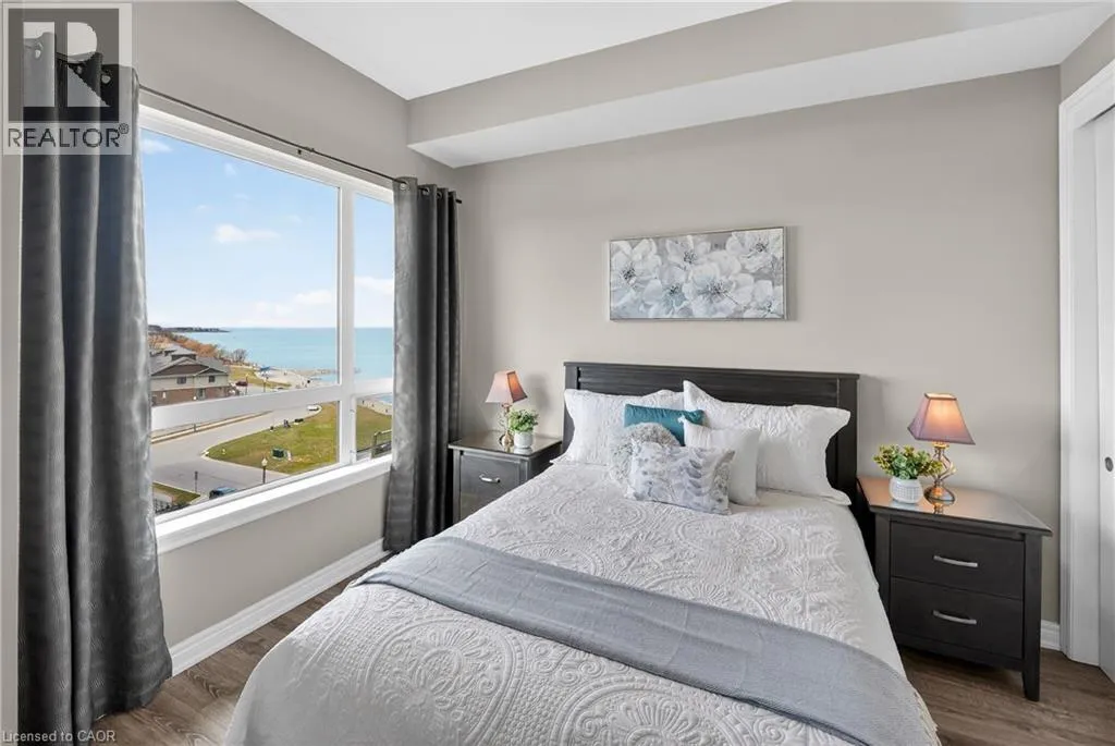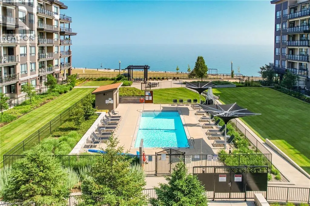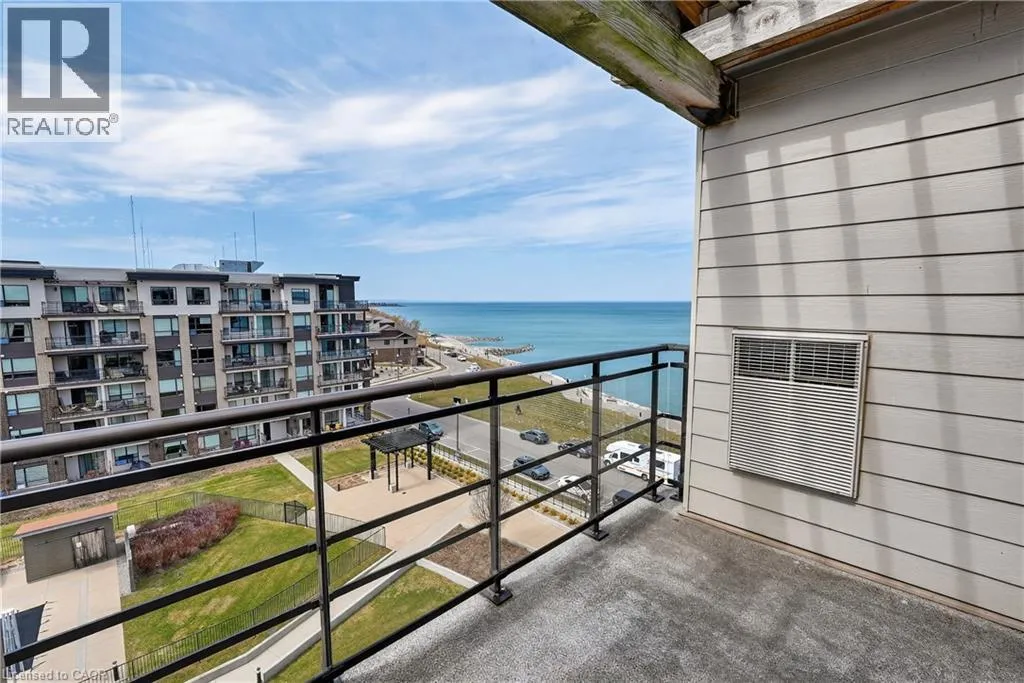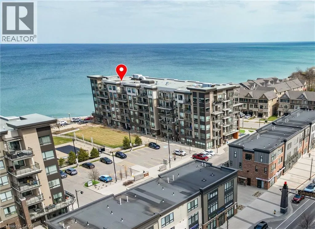From QEW, Exit Casablanca Blvd, North on Casablanca, Left on N. Service Rd, Right on Place Polonaise Dr, Left on Esplanade Lane. ELEGANT PENTHOUSE LIVING ⦠Perched on the top floor, this stunning LAKESIDE CONDO at 602-10 Esplanade Place captures the essence of effortless, CAREFREE, WATERFRONT living in the heart of Grimsby. With 10â ceilings and an abundance of natural light, this thoughtfully designed 1-bedroom PLUS DEN layout offers both comfort & style complemented by a 65 sq ft PRIVATE BALCONY showcasing breathtaking POOL & LAKE VIEWS. The open-concept living space is finished with sleek vinyl flooring and anchored by a modern kitchen featuring built-in appliances, QUARTZ countertops, tile backsplash, under-cabinet lighting, and potlights - creating a clean, contemporary feel ideal for everyday living or entertaining. The spacious primary bedroom is complete with double closets and LAKE VIEWS, while the versatile den offers flexibility for a home office or guest space. Convenience is key with IN-SUITE STACKABLE LAUNDRY, a well-appointed 4-pc bath, and ample storage solutions including locker (#198) and dedicated underground bike storage. Parking is a breeze with an UNDERGROUND SPACE (#128). Beyond the unit, residents enjoy access to a FULL SUITE OF AMENITIES, including a fitness centre, dog wash, party room, pool, PLUS VISITOR PARKING - enhancing the lifestyle experience this building has to offer. Set just steps from the waterfront, scenic trails, Grimsby Public Beach, and a vibrant mix of boutique shops & restaurants, this location balances relaxation with everyday convenience. With highway access just one minute away, commuting is seamless while still enjoying the charm of LAKESIDE LIVING. A rare opportunity to own a penthouse-level suite in one of Grimsbyâs most desirable waterfront communities. CLICK ON MULTIMEDIA for virtual tour, floor plans, drone photos & more. (id:27476)