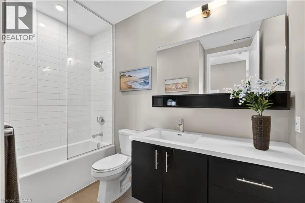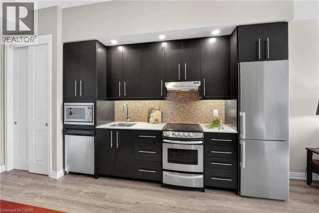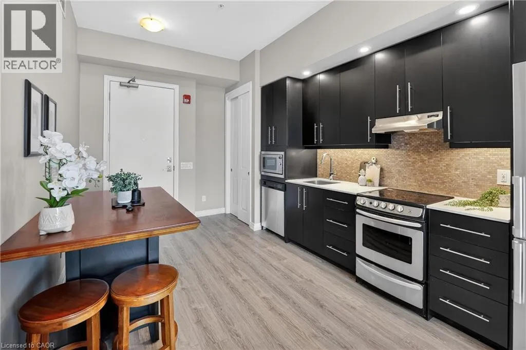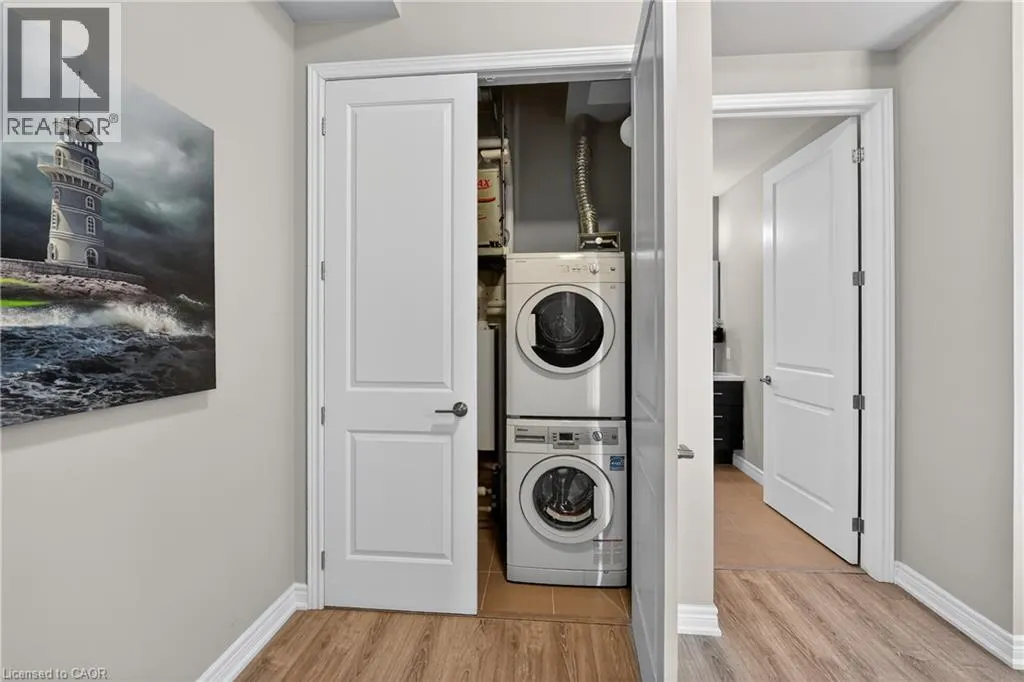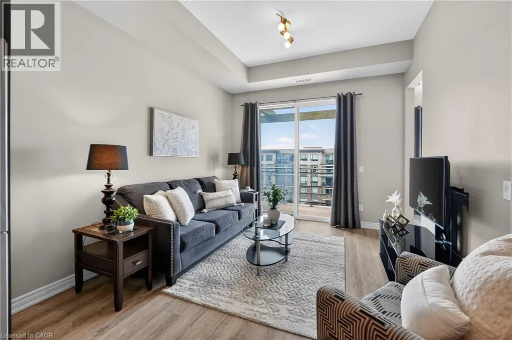 From QEW, Exit Casablanca Blvd, North on Casablanca, Left on N. Service Rd, Right on Place Polonaise Dr, Left on Esplanade Lane. ELEGANT PENTHOUSE LIVING ⦠Perched on the top floor, this stunning LAKESIDE CONDO at 602-10 Esplanade Place captures the essence of effortless, CAREFREE, WATERFRONT living in the heart of Grimsby. With 10â ceilings and an abundance of natural light, this thoughtfully designed 1-bedroom PLUS DEN layout offers both comfort & style complemented by a 65 sq ft PRIVATE BALCONY showcasing breathtaking POOL & LAKE VIEWS. The open-concept living space is finished with sleek vinyl flooring and anchored by a modern kitchen featuring built-in appliances, QUARTZ countertops, tile backsplash, under-cabinet lighting, and potlights - creating a clean, contemporary feel ideal for everyday living or entertaining. The spacious primary bedroom is complete with double closets and LAKE VIEWS, while the versatile den offers flexibility for a home office or guest space. Convenience is key with IN-SUITE STACKABLE LAUNDRY, a well-appointed 4-pc bath, and ample storage solutions including locker (#198) and dedicated underground bike storage. Parking is a breeze with an UNDERGROUND SPACE (#128). Beyond the unit, residents enjoy access to a FULL SUITE OF AMENITIES, including a fitness centre, dog wash, party room, pool, PLUS VISITOR PARKING - enhancing the lifestyle experience this building has to offer. Set just steps from the waterfront, scenic trails, Grimsby Public Beach, and a vibrant mix of boutique shops & restaurants, this location balances relaxation with everyday convenience. With highway access just one minute away, commuting is seamless while still enjoying the charm of LAKESIDE LIVING. A rare opportunity to own a penthouse-level suite in one of Grimsbyâs most desirable waterfront communities. CLICK ON MULTIMEDIA for virtual tour, floor plans, drone photos & more. (id:27476)