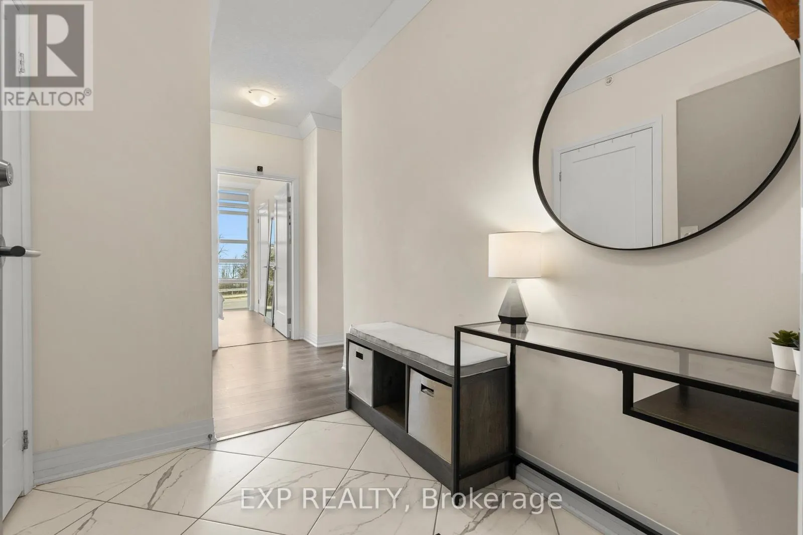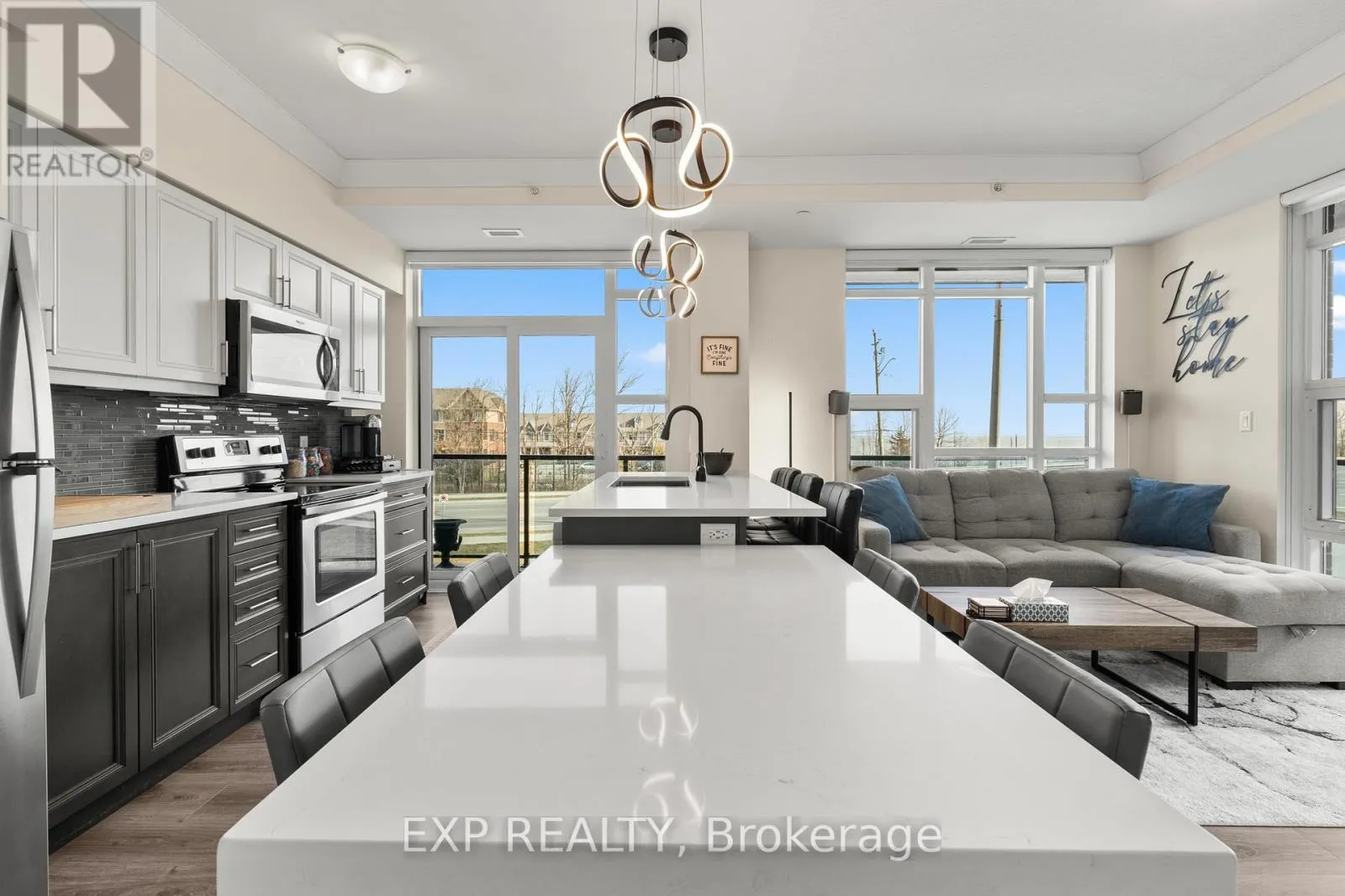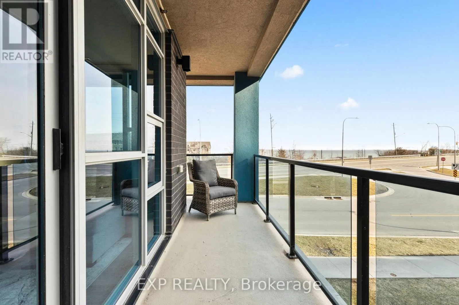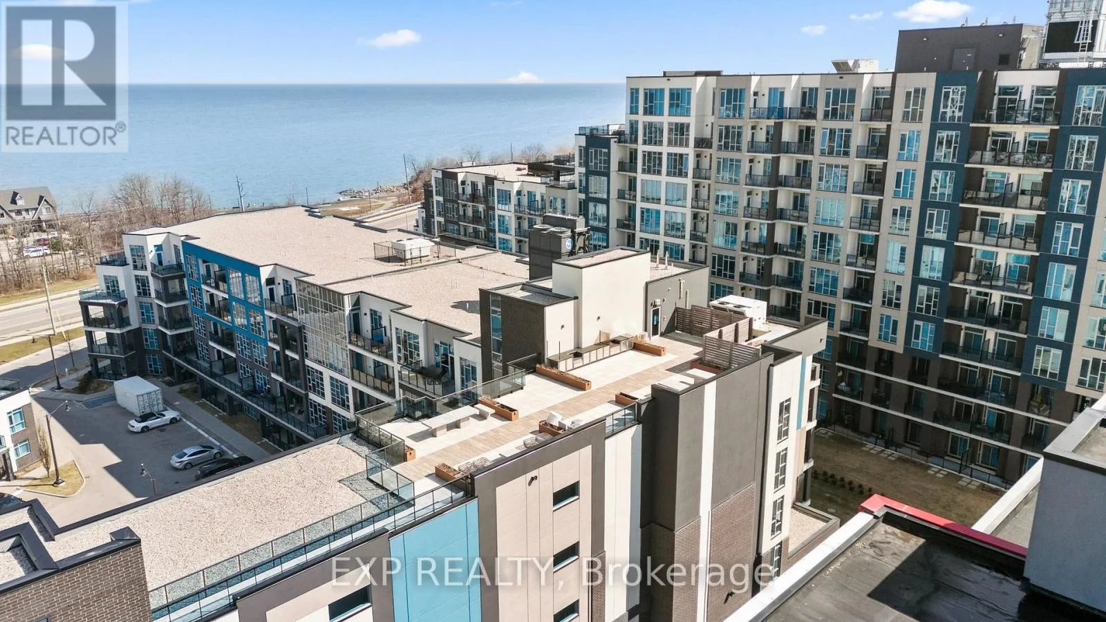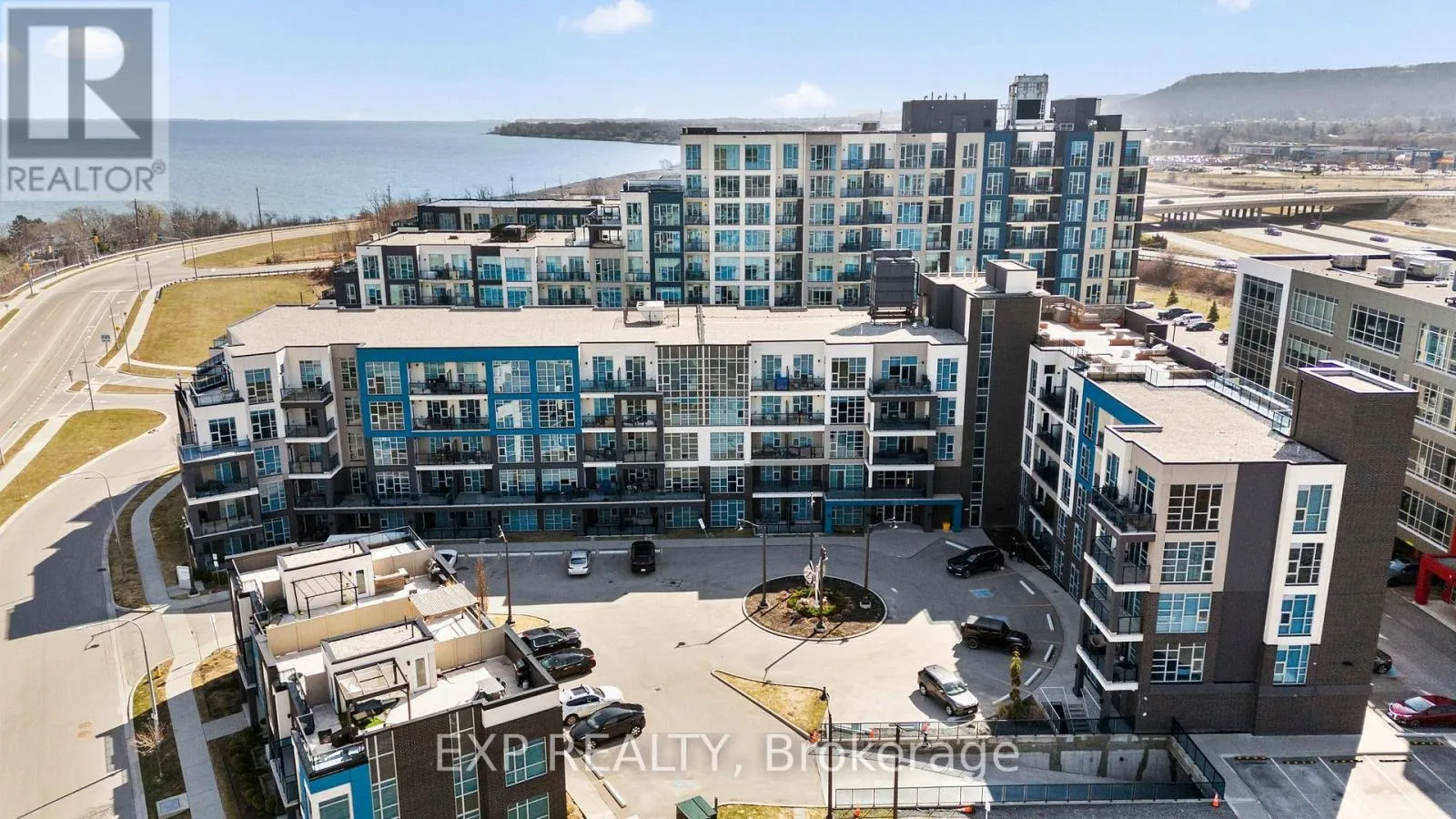 Cross Streets: Casablanca Blvd & N. Service Rd. ** Directions: South off N. Service Rd., west on Concord Pl. #10 AquaBlu on left. 10 Concord Place, Unit 209 in Grimsby offers well-planned living in a quiet, well-managed building. The layout is open and easy to live in, centered around a bright living area with floor-to-ceiling windows and a walkout to a private balcony with a clear view toward the lake. The kitchen is finished with quartz countertops, updated fixtures, and a defined breakfast nook that adds structure while keeping the space open. Crown moulding and trim carry throughout, maintaining a cohesive airy feel. Both bedrooms are thoughtfully positioned for privacy. The primary bedroom includes a three-piece ensuite, making the layout well suited for guests or a balanced setup. In-suite laundry, a dedicated storage locker, and two underground parking spaces handle the practical side. Amenities include a rooftop terrace, fitness area, and a reservable space for hosting. The location is conveniently located with quick highway access for commuting, and everyday essentials nearby including Costco, The Grimsby-on-the-Lake area is close by for restaurants, cafés, and local spots, with parks and the waterfront easily worked into your routine. If you're looking for a condo that delivers strong value on layout, lighting, and usability, this one is worth seeing in person. (id:27476)