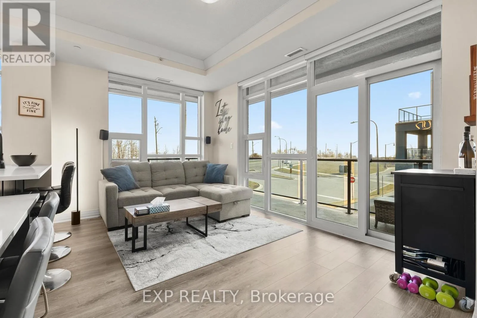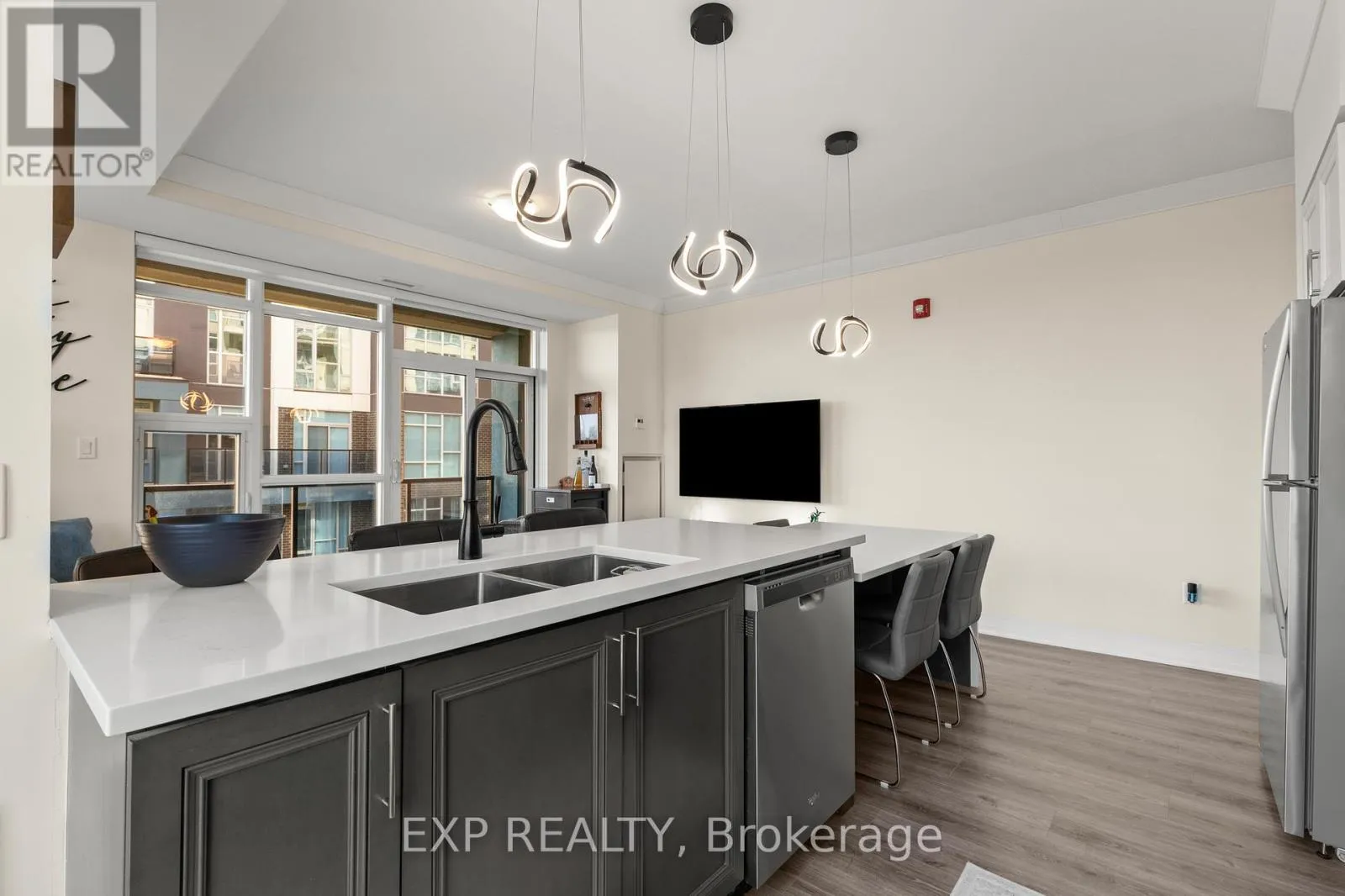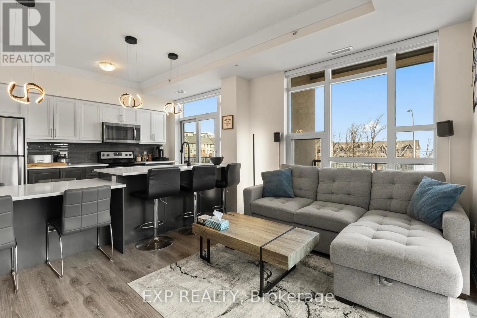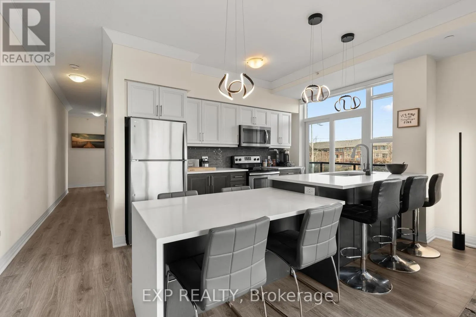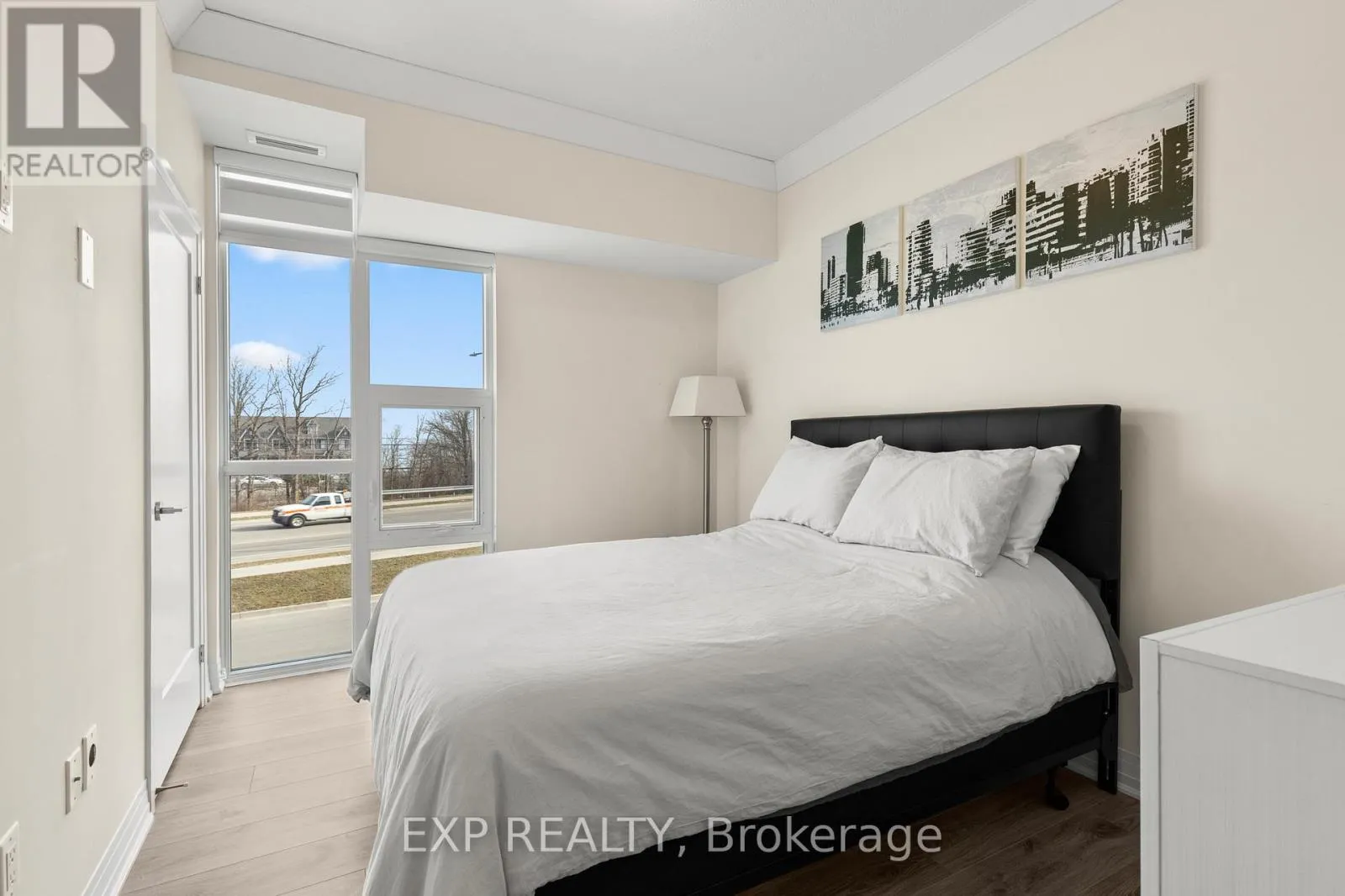 Cross Streets: Casablanca Blvd & N. Service Rd. ** Directions: South off N. Service Rd., west on Concord Pl. #10 AquaBlu on left. 10 Concord Place, Unit 209 in Grimsby offers well-planned living in a quiet, well-managed building. The layout is open and easy to live in, centered around a bright living area with floor-to-ceiling windows and a walkout to a private balcony with a clear view toward the lake. The kitchen is finished with quartz countertops, updated fixtures, and a defined breakfast nook that adds structure while keeping the space open. Crown moulding and trim carry throughout, maintaining a cohesive airy feel. Both bedrooms are thoughtfully positioned for privacy. The primary bedroom includes a three-piece ensuite, making the layout well suited for guests or a balanced setup. In-suite laundry, a dedicated storage locker, and two underground parking spaces handle the practical side. Amenities include a rooftop terrace, fitness area, and a reservable space for hosting. The location is conveniently located with quick highway access for commuting, and everyday essentials nearby including Costco, The Grimsby-on-the-Lake area is close by for restaurants, cafés, and local spots, with parks and the waterfront easily worked into your routine. If you're looking for a condo that delivers strong value on layout, lighting, and usability, this one is worth seeing in person. (id:27476)