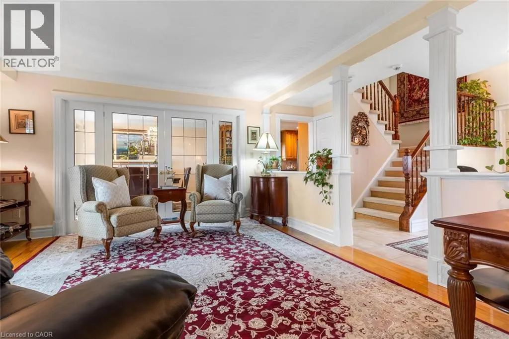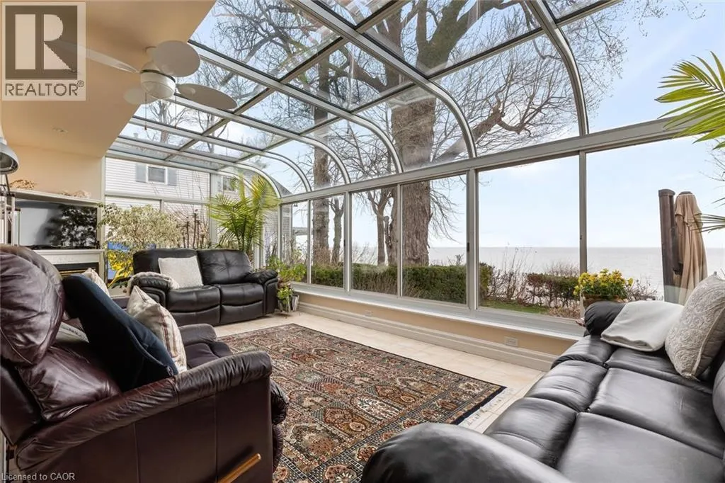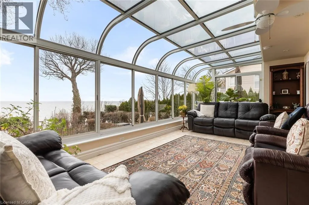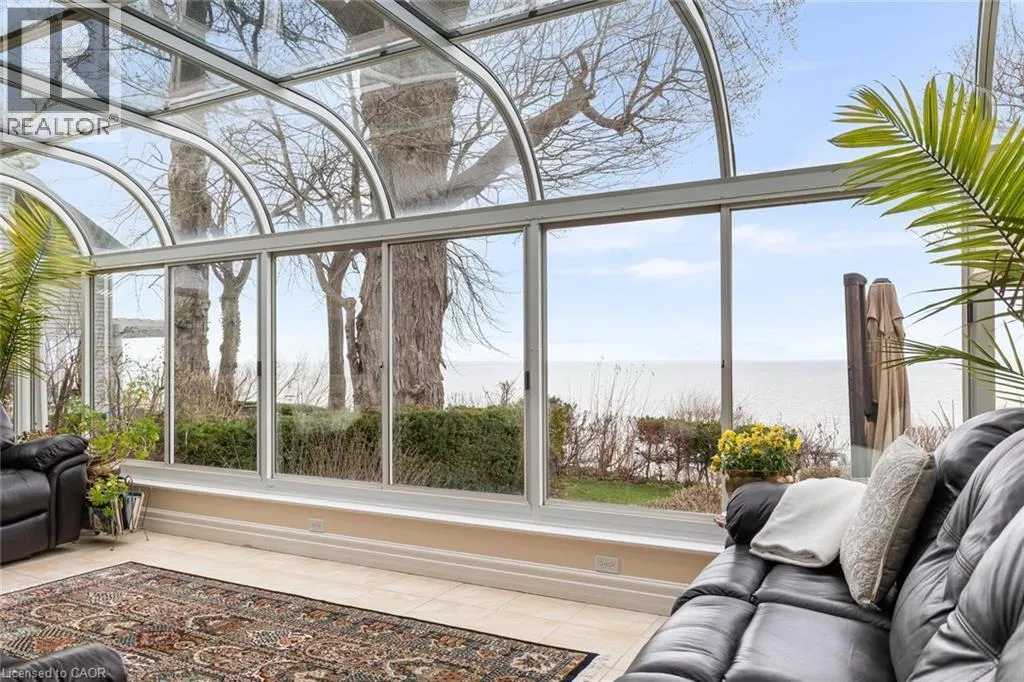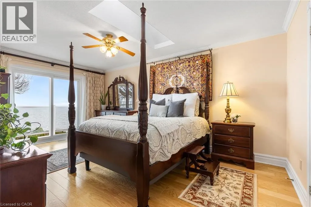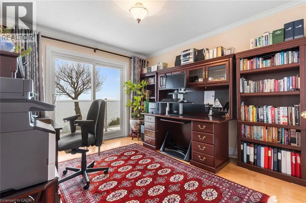 Lake St to Twelfth St Exceptional waterfront 3 +1 bedroom and 3.5 bathrooms detached home in Grimsby, offering a grand double door entry and an impressive foyer with soaring high ceilings. This well-appointed home features a beautiful wood staircase and a spacious layout designed for both comfortable living and entertaining. The bright living room showcases rich hardwood flooring and a charming wood-burning fireplace, while the inviting family room seamlessly opens to a stunning and expansive sunroom complete with a gas fireplaceâperfect for relaxing and enjoying natural light year-round. The well-equipped kitchen features tile flooring, stainless steel appliances, a built-in wine rack, garburator, and abundant cabinetry and counter space. A separate dining area is ideal for hosting guests, while the breakfast area provides the perfect setting for morning coffee or tea. Main floor laundry adds everyday convenience. The upper level offers three generously sized bedrooms, 2 full bathrooms, and access to a charming balcony. The primary bedroom retreat includes a walk-in closet and a private ensuite with a tub and jacuzzi. The finished basement provides additional living space with a large recreation room featuring a gas fireplace, a dedicated office for working from home, an additional bedroom, a full bathroom, and ample storage. Step outside to enjoy a large deck, garden shed, and gas BBQ hookup, ideal for outdoor entertaining. The home also features a double garage with extra ceiling height and windows for added light. Just steps to the waterfront, gazebo, and breathtaking sunsets. Close to parks, trails, schools, shopping, and easy highway access. (id:27476)