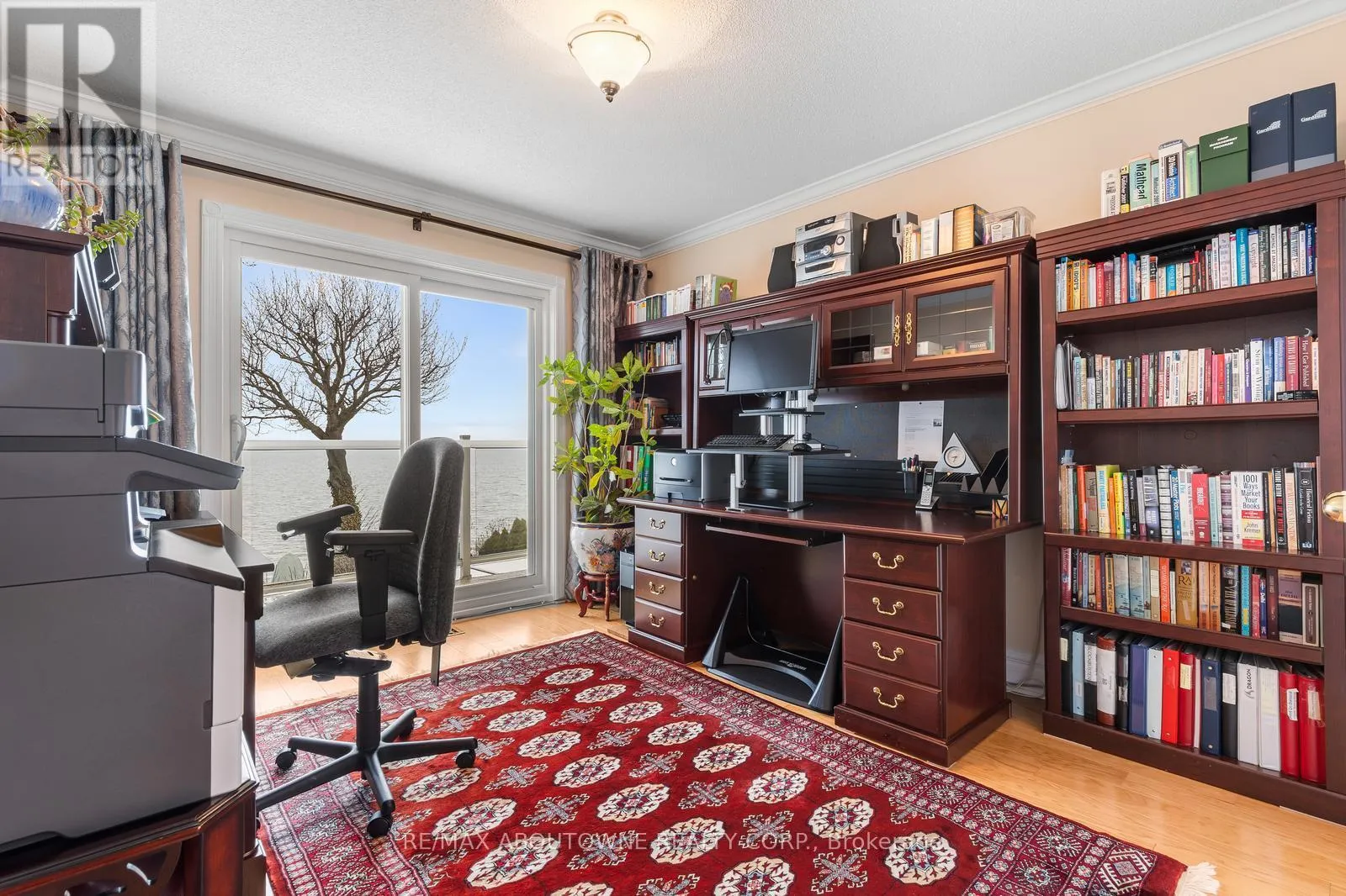 Cross Streets: Lake St. ** Directions: Lake St to Twelfth St. Exceptional waterfront 3 +1 bedroom and 3.5 bathrooms detached home in Grimsby, offering a grand double door entry and an impressive foyer with soaring high ceilings. This well-appointed home features a beautiful wood staircase and a spacious layout designed for both comfortable living and entertaining. The bright living room showcases rich hardwood flooring and a charming wood-burning fireplace, while the inviting family room seamlessly opens to a stunning and expansive sunroom complete with a gas fireplace-perfect for relaxing and enjoying natural light year-round. The well-equipped kitchen features tile flooring, stainless steel appliances, a built-in wine rack, garburator, and abundant cabinetry and counter space. A separate dining area is ideal for hosting guests, while the breakfast area provides the perfect setting for morning coffee or tea. Main floor laundry adds everyday convenience. The upper level offers three generously sized bedrooms, 2 full bathrooms, and access to a charming balcony. The primary bedroom retreat includes a walk-in closet and a private ensuite with a tub and jacuzzi. The finished basement provides additional living space with a large recreation room featuring a gas fireplace, a dedicated office for working from home, an additional bedroom, a full bathroom, and ample storage. Step outside to enjoy a large deck, garden shed, and gas BBQ hookup, ideal for outdoor entertaining. The home also features a double garage with extra ceiling height and windows for added light. Just steps to the waterfront, gazebo, and breathtaking sunsets. Close to parks, trails, schools, shopping, and easy highway access. (id:27476)