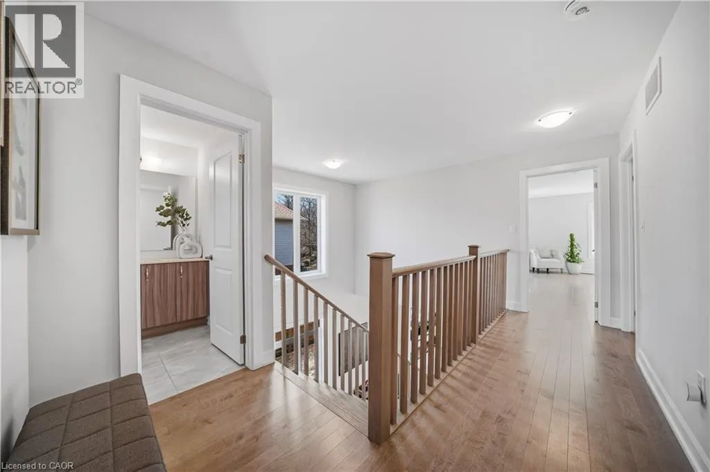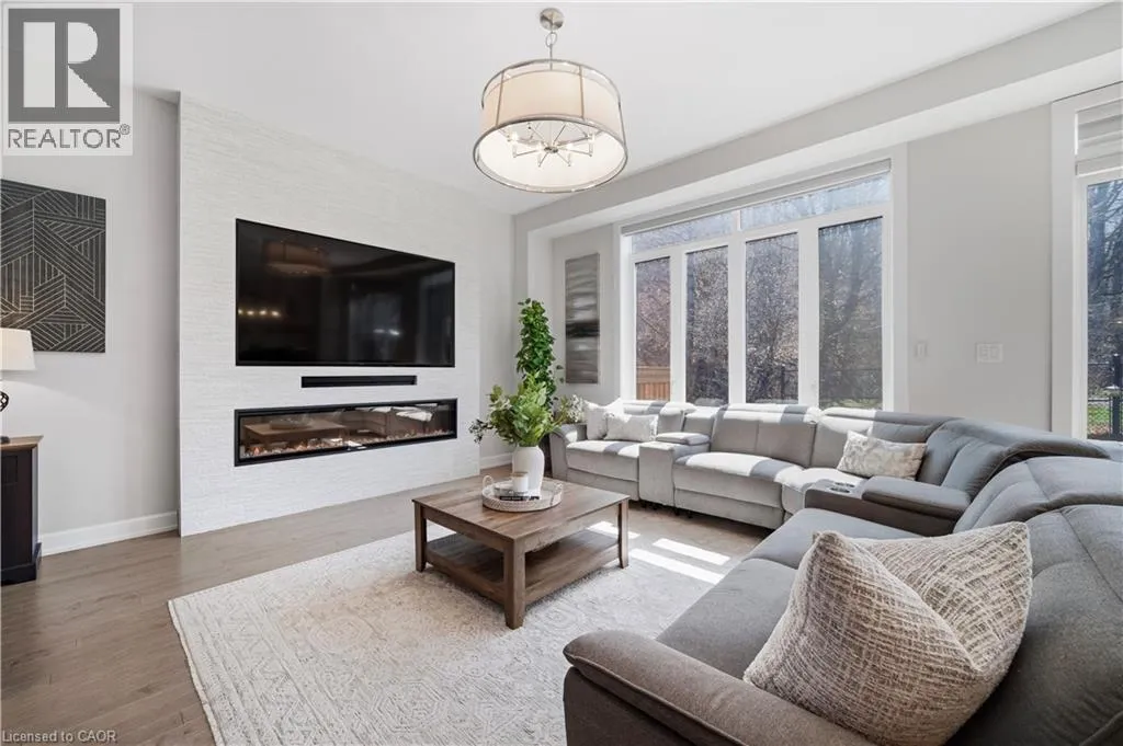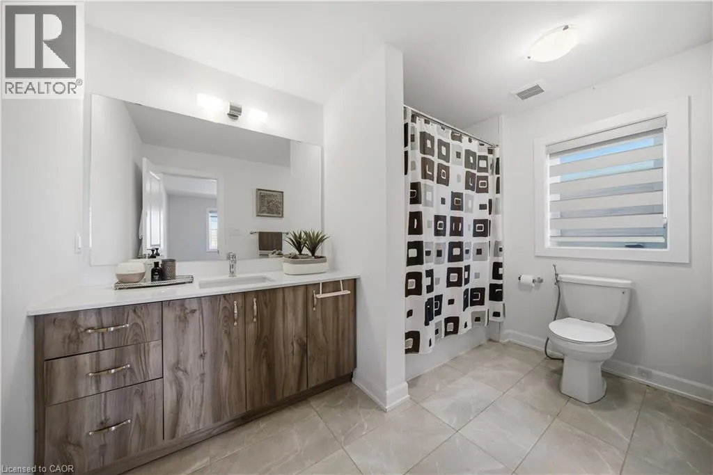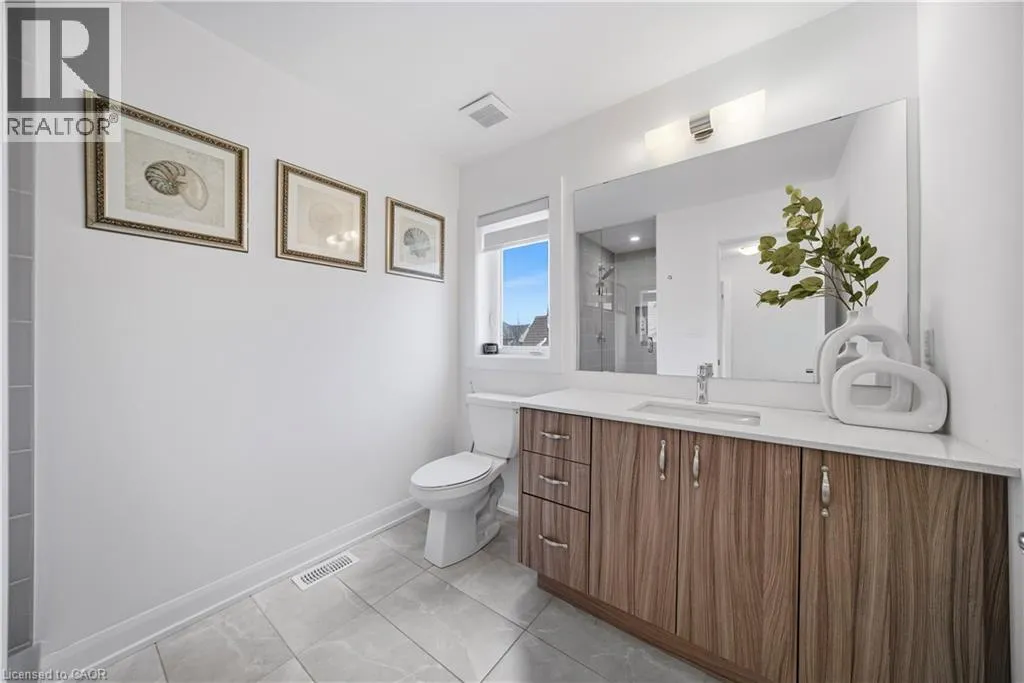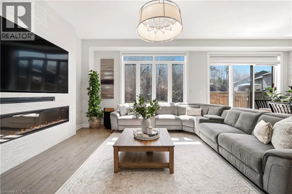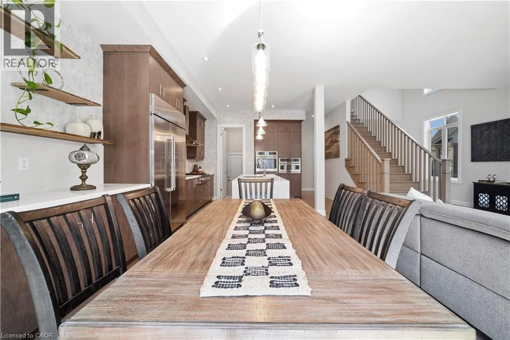 Stunning 3-bedroom, 3.5-bathroom detached home in sought-after Grimsby, offering the perfect blend of elegance, functionality, & modern design. This beautifully maintained property features a double garage & a welcoming foyer that leads into a practical mudroom, w/ a large closet & convenient powder room-ideal for busy families. The main level showcases a bright, spacious living room w/soaring 10-foot ceilings, floor-to-ceiling windows & patio door that flood the space with natural light, built in niche space for the large TV and surround sound speakers & a sleek electric fireplace. The open-concept dining area seamlessly connects to the backyard through sliding doors, creating an ideal setting for indoor-outdoor entertaining. The contemporary kitchen is thoughtfully designed with quality upgraded countertops, matching backspace, large island, additional upgraded cabinetry including waste, pull out racks for deep pots and spices, stainless steel upgraded appliances from Cafe, & ample storage space. A solid wood staircase leads to the second level, featuring 3 generously sized bedrooms, each w/ large windows and access to full bathrooms. The primary suite offers separate his & hers walk-in closets and a luxurious 4-piece ensuite w/double sinks. The 2nd bedroom includes a 3-piece ensuite & double closet, while the 3rd bedroom features oversized windows & a spacious closet. Enjoy the convenience of second-floor laundry. The basement boasts impressive 9-foot ceilings, large egress window included w/ 2 additional large windows, a freshly painted interior, a spacious rec. area, a partially finished bathroom, & rough-ins for a future kitchen-offering excellent potential for extended living or customization. Step outside to a private, fully fenced backyard O/L Niagara Escarpment allowing privacy and year round seasonal changes. Located close to schools, parks, shopping, & all essential amenities, this home is an exceptional opportunity in a family-friendly community. (id:27476)