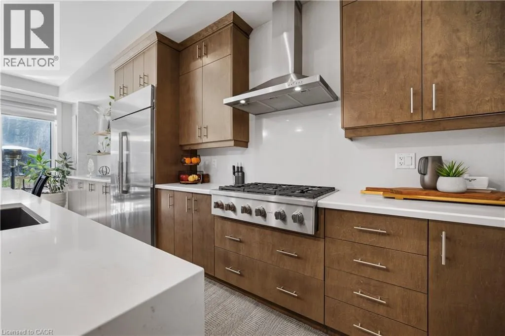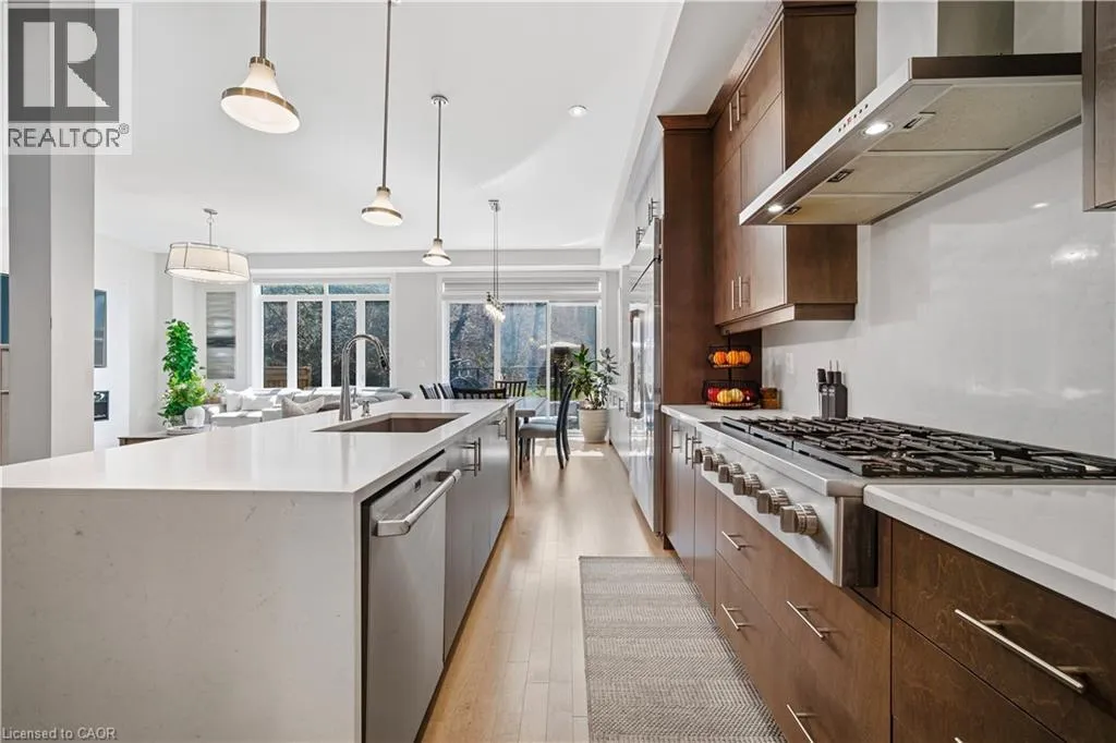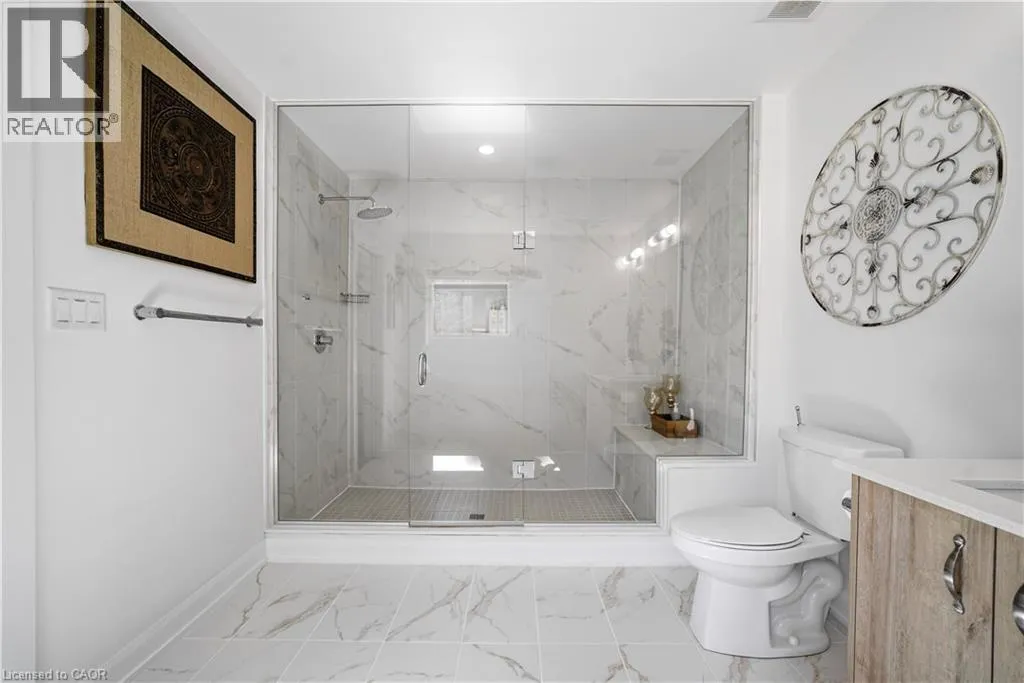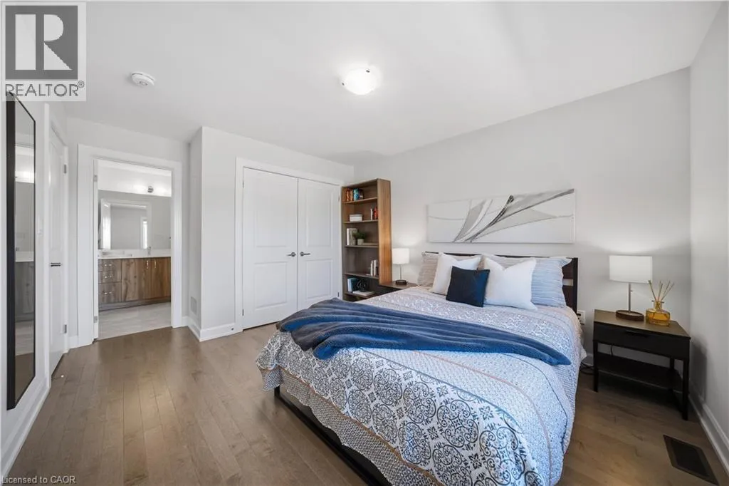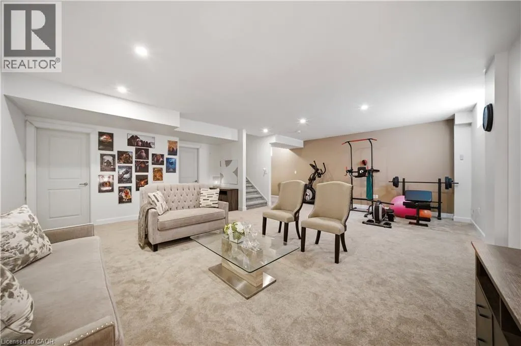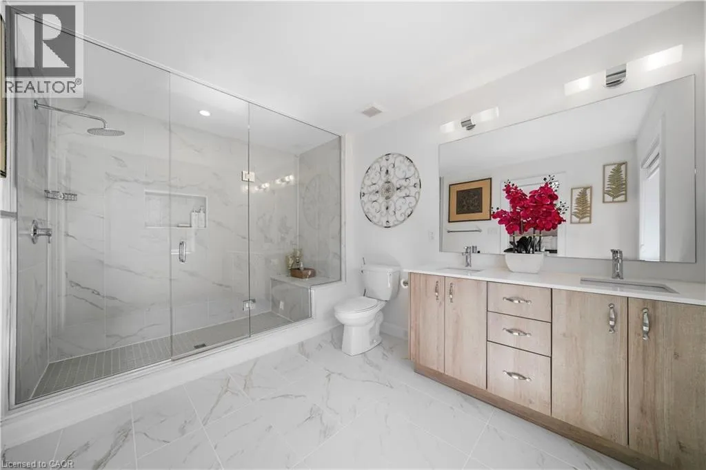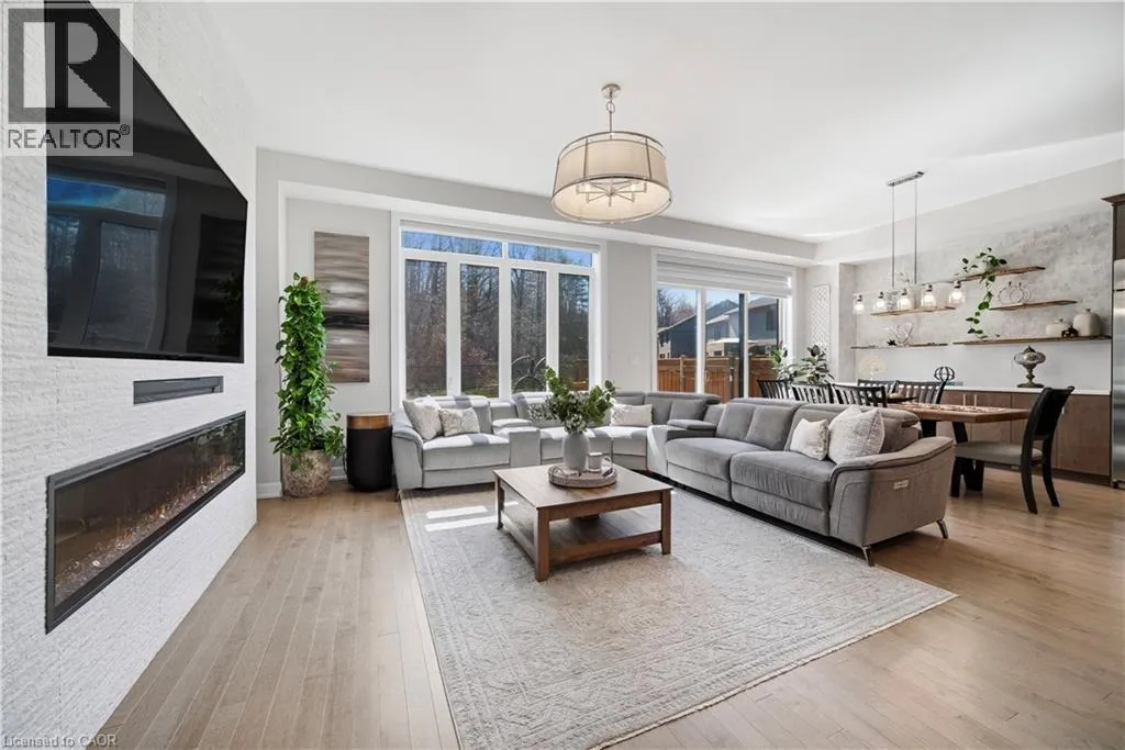 Stunning 3-bedroom, 3.5-bathroom detached home in sought-after Grimsby, offering the perfect blend of elegance, functionality, & modern design. This beautifully maintained property features a double garage & a welcoming foyer that leads into a practical mudroom, w/ a large closet & convenient powder room-ideal for busy families. The main level showcases a bright, spacious living room w/soaring 10-foot ceilings, floor-to-ceiling windows & patio door that flood the space with natural light, built in niche space for the large TV and surround sound speakers & a sleek electric fireplace. The open-concept dining area seamlessly connects to the backyard through sliding doors, creating an ideal setting for indoor-outdoor entertaining. The contemporary kitchen is thoughtfully designed with quality upgraded countertops, matching backspace, large island, additional upgraded cabinetry including waste, pull out racks for deep pots and spices, stainless steel upgraded appliances from Cafe, & ample storage space. A solid wood staircase leads to the second level, featuring 3 generously sized bedrooms, each w/ large windows and access to full bathrooms. The primary suite offers separate his & hers walk-in closets and a luxurious 4-piece ensuite w/double sinks. The 2nd bedroom includes a 3-piece ensuite & double closet, while the 3rd bedroom features oversized windows & a spacious closet. Enjoy the convenience of second-floor laundry. The basement boasts impressive 9-foot ceilings, large egress window included w/ 2 additional large windows, a freshly painted interior, a spacious rec. area, a partially finished bathroom, & rough-ins for a future kitchen-offering excellent potential for extended living or customization. Step outside to a private, fully fenced backyard O/L Niagara Escarpment allowing privacy and year round seasonal changes. Located close to schools, parks, shopping, & all essential amenities, this home is an exceptional opportunity in a family-friendly community. (id:27476)