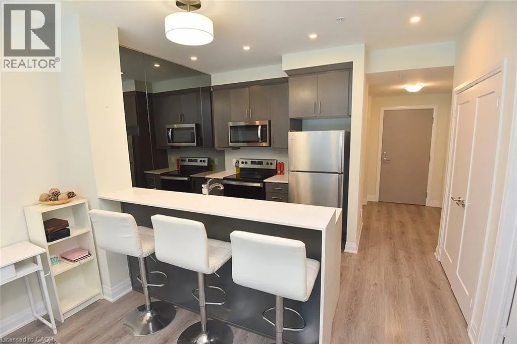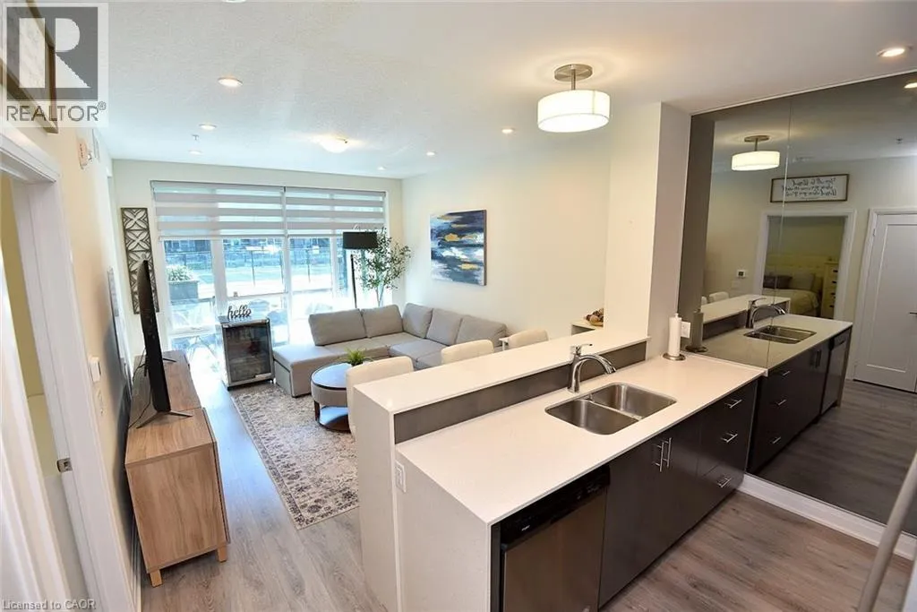 QEW to Casablanca to west on North Service Rd., to Concord Welcome to 16 Concord Place, one of the most sought-after destinations in Grimsby On The Lake! This luxury 1 Bedroom + Den, main floor unit in the coveted AquaZul development, leaves a lasting impression and confidently displays pride of ownership! Featuring an open concept layout, the interior of this suite provides a custom mirrored wall in the Kitchen, beautiful Quartz counter tops with Breakfast Bar, wide plank Flooring, floor to ceiling Windows, large walk-in Closet & Ensuite privilege! Enjoy the added ease of having in-suite Laundry and relaxing or entertaining on your massive walkout Terrace, allowing quick access to the walking Path and Pool! Complete with a full 4-piece Bathroom and Pot lighting throughout, this unit is move in ready! Be a part of this fabulous community and enjoy the full resort style inspired amenities of Party room, Games & Media room, full Gym with stunning Lake views, a storage Locker, and underground Parking. Sit back, relax, and entertain in the Courtyard offering BBQ's, outdoor Pool & Lounge area. Take advantage of this great location that puts you just steps from trendy Restaurants, Cafes, Boutique Shopping, walking Trails, and easy access to the QEW; ideal for commuters and weekend adventurers alike! (id:27476)