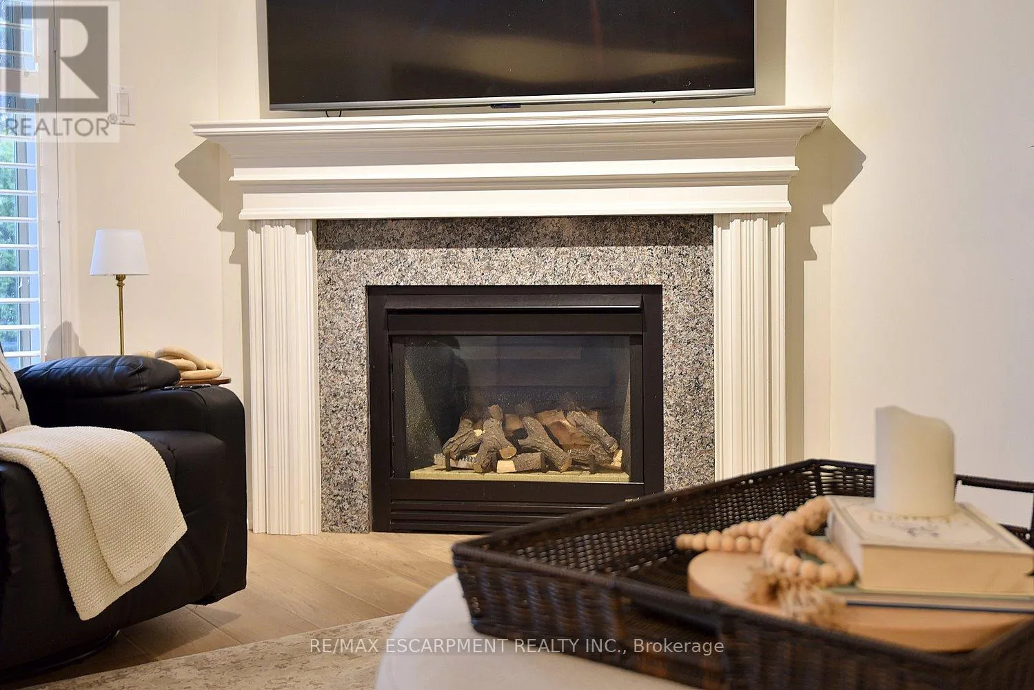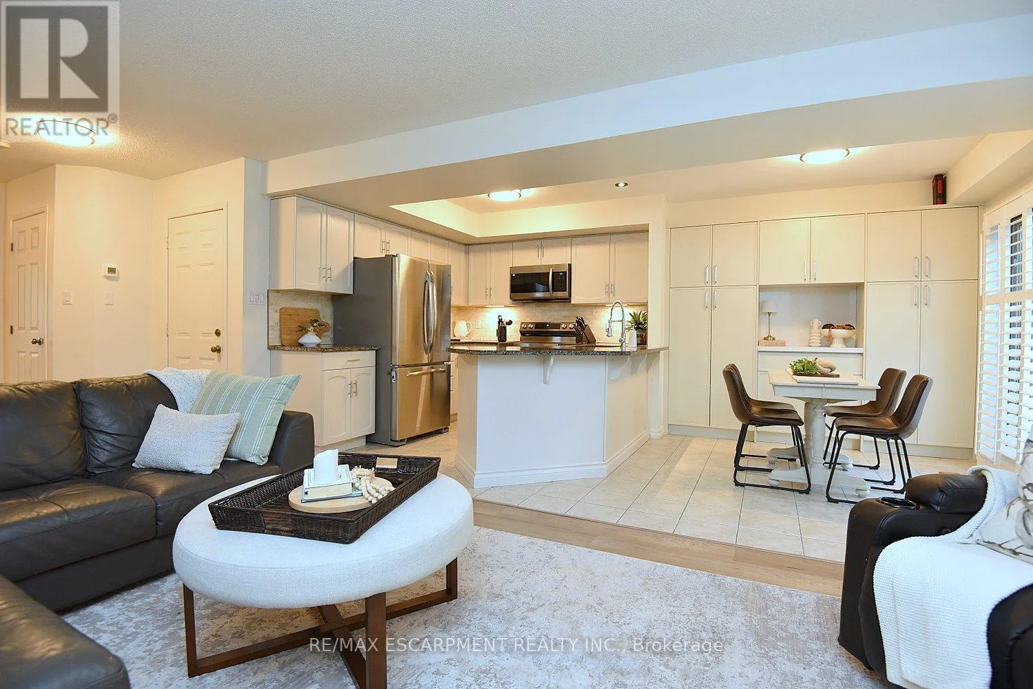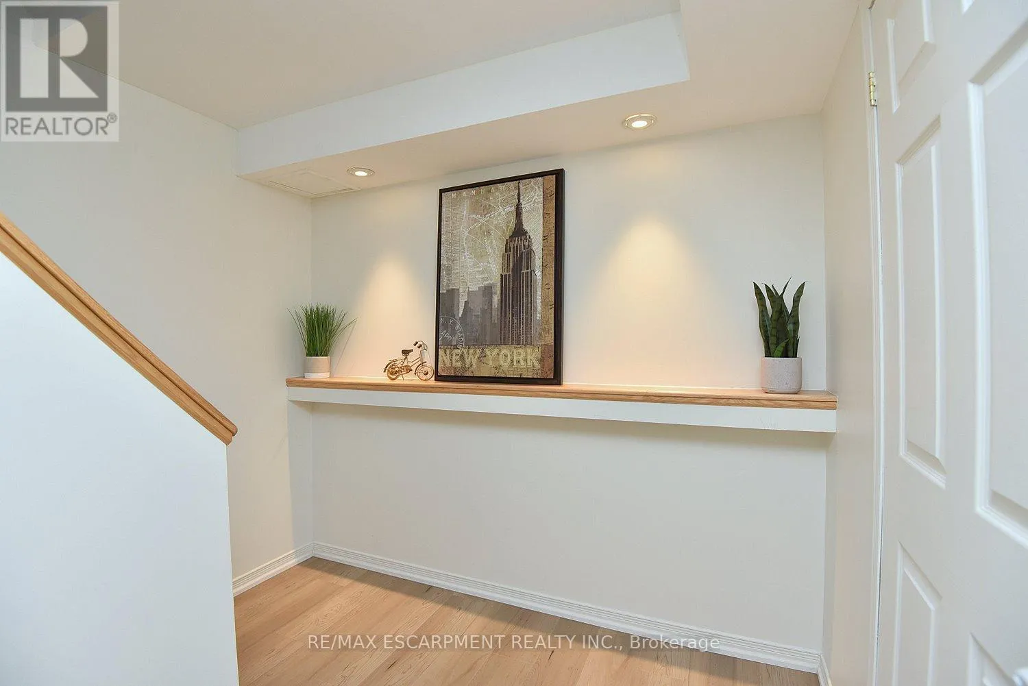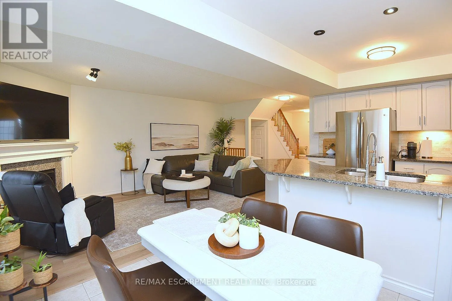 Livingston/Casablanca Welcome to the beautifully appointed townhome, ideally located in the heart of family-friendly Grimsby, just 1.3km from the Casablanca/QEW exit for convenient highway assess. The Open-Concept main level is perfect for modern living, featuring a stylish white kitchen, with granite countertops, SS appliances, and additional built-in cabinetry. Recent upgrade; newer wood-look flooring throughout the main & upper levels(2025). California Shutters & cozy gas fireplace. Step outside to a private, treed backyard with an aggregate patio and gas-line bbq. The upper level offers three generously sized bedrooms, along with a small loft space perfect for a home office or reading nook. Lower level is finished with a nice size recroom and laundry. A RARE feature; the driveway accommodates parking for 2 cars along with the garage gives you parking for 3 cars. Don't delay this amazing home will not last. (id:27476)
