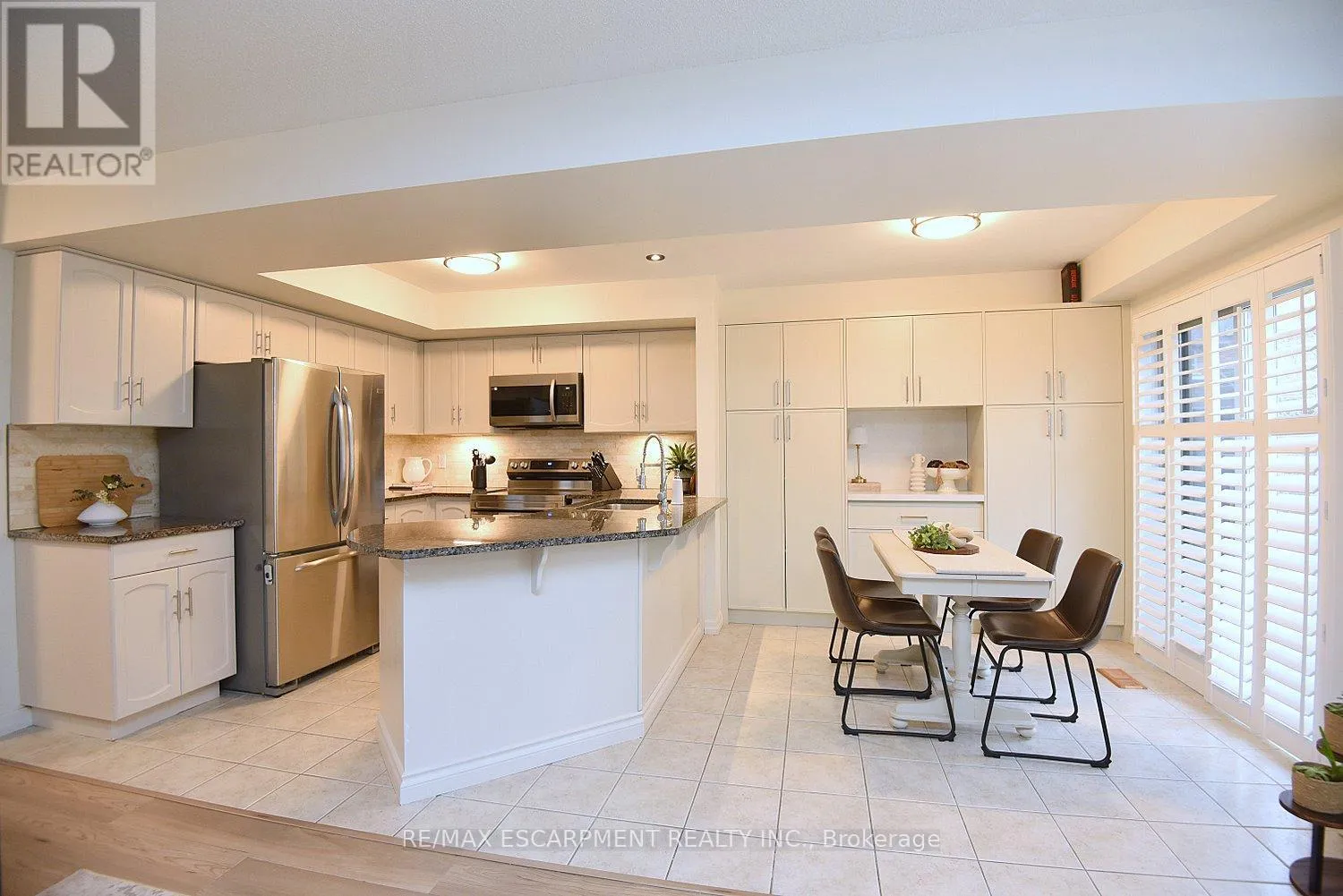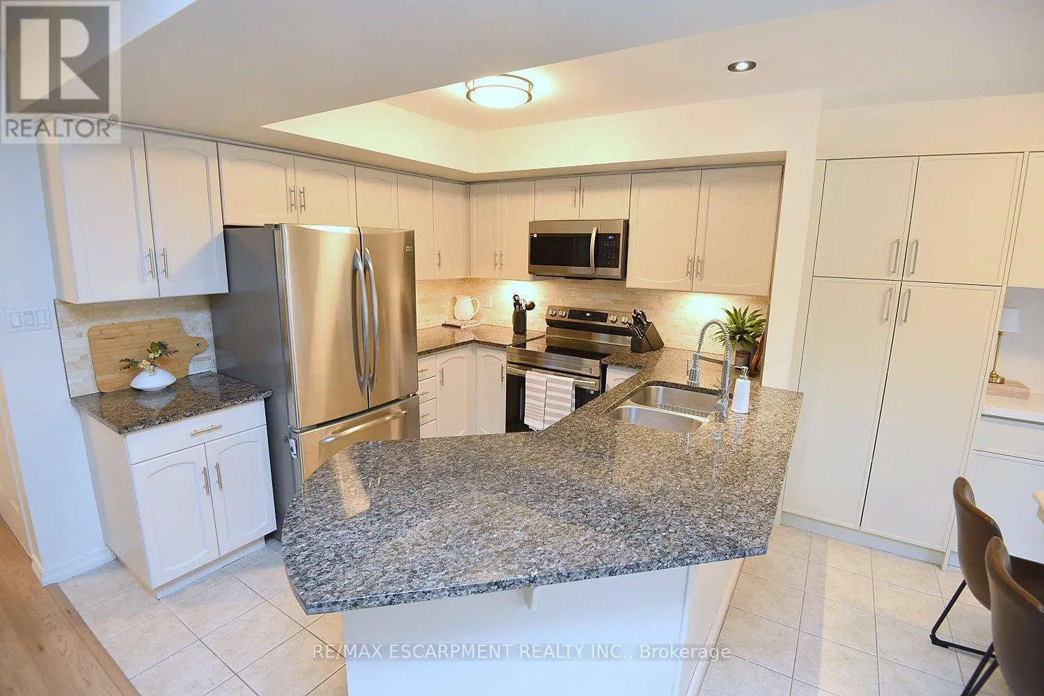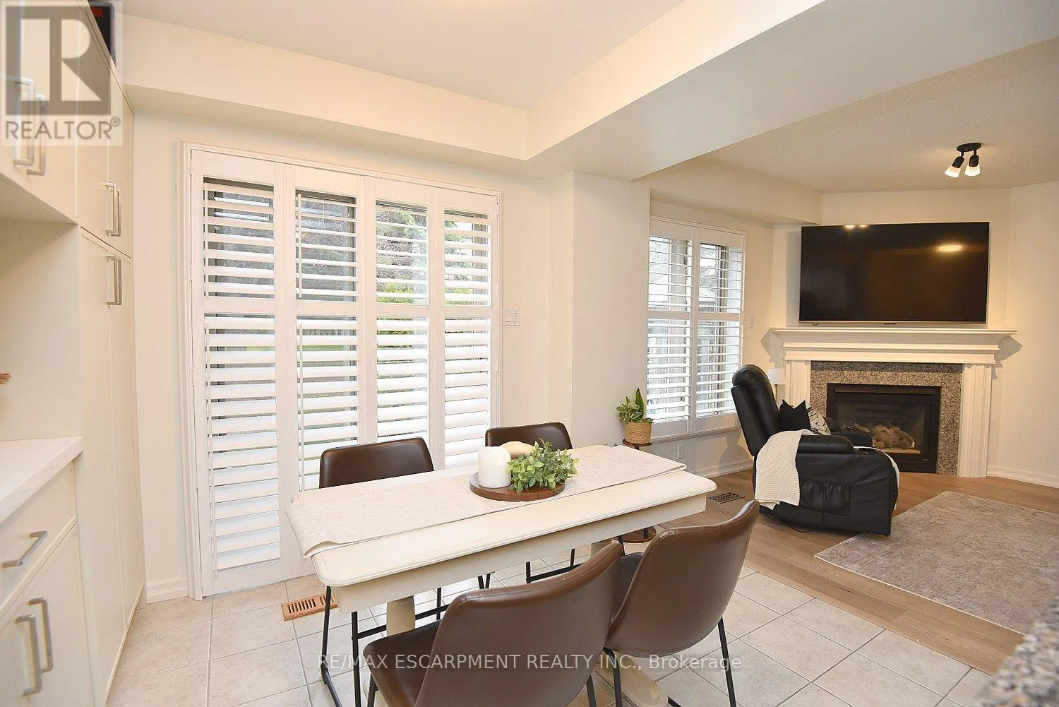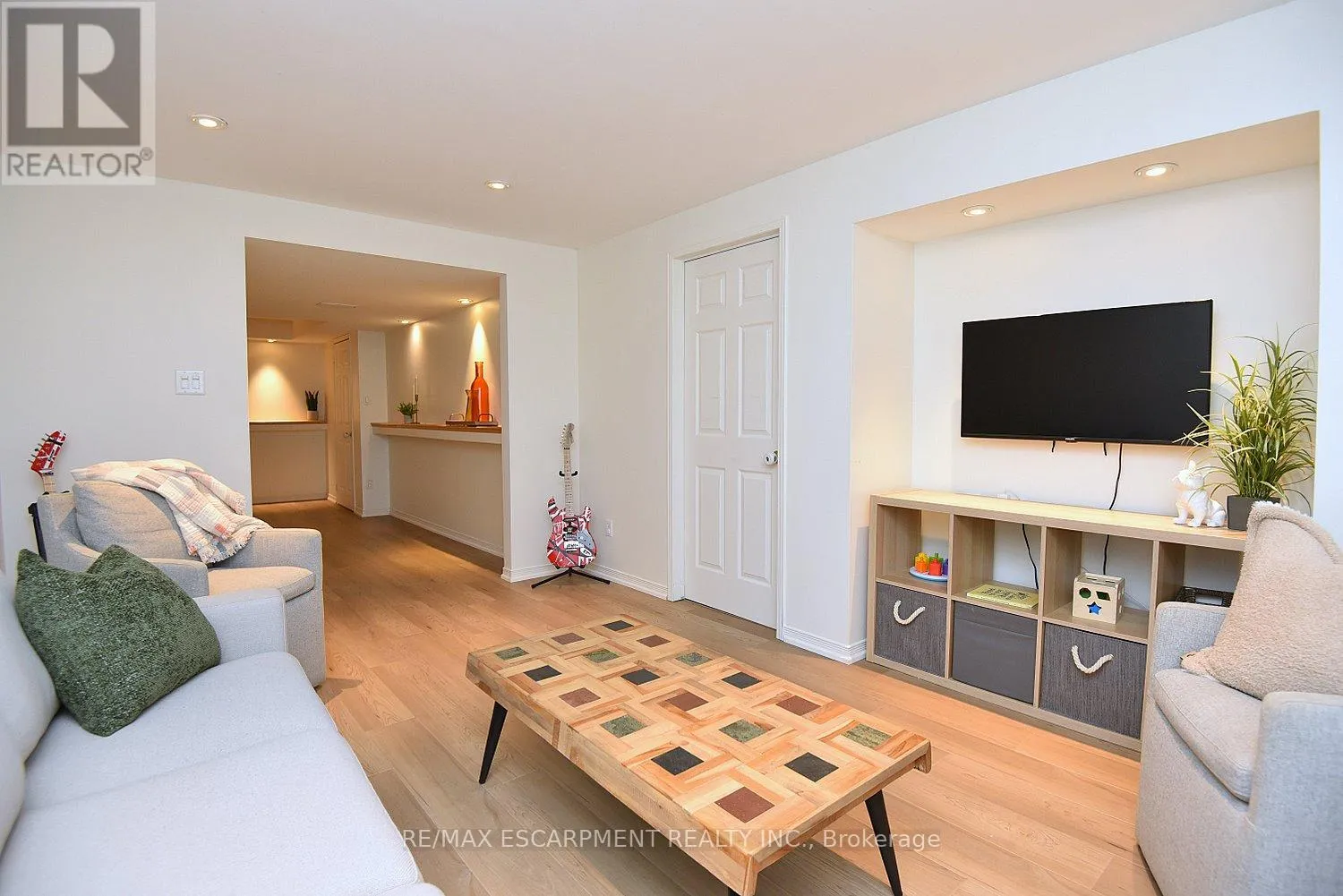 Livingston/Casablanca Welcome to the beautifully appointed townhome, ideally located in the heart of family-friendly Grimsby, just 1.3km from the Casablanca/QEW exit for convenient highway assess. The Open-Concept main level is perfect for modern living, featuring a stylish white kitchen, with granite countertops, SS appliances, and additional built-in cabinetry. Recent upgrade; newer wood-look flooring throughout the main & upper levels(2025). California Shutters & cozy gas fireplace. Step outside to a private, treed backyard with an aggregate patio and gas-line bbq. The upper level offers three generously sized bedrooms, along with a small loft space perfect for a home office or reading nook. Lower level is finished with a nice size recroom and laundry. A RARE feature; the driveway accommodates parking for 2 cars along with the garage gives you parking for 3 cars. Don't delay this amazing home will not last. (id:27476)