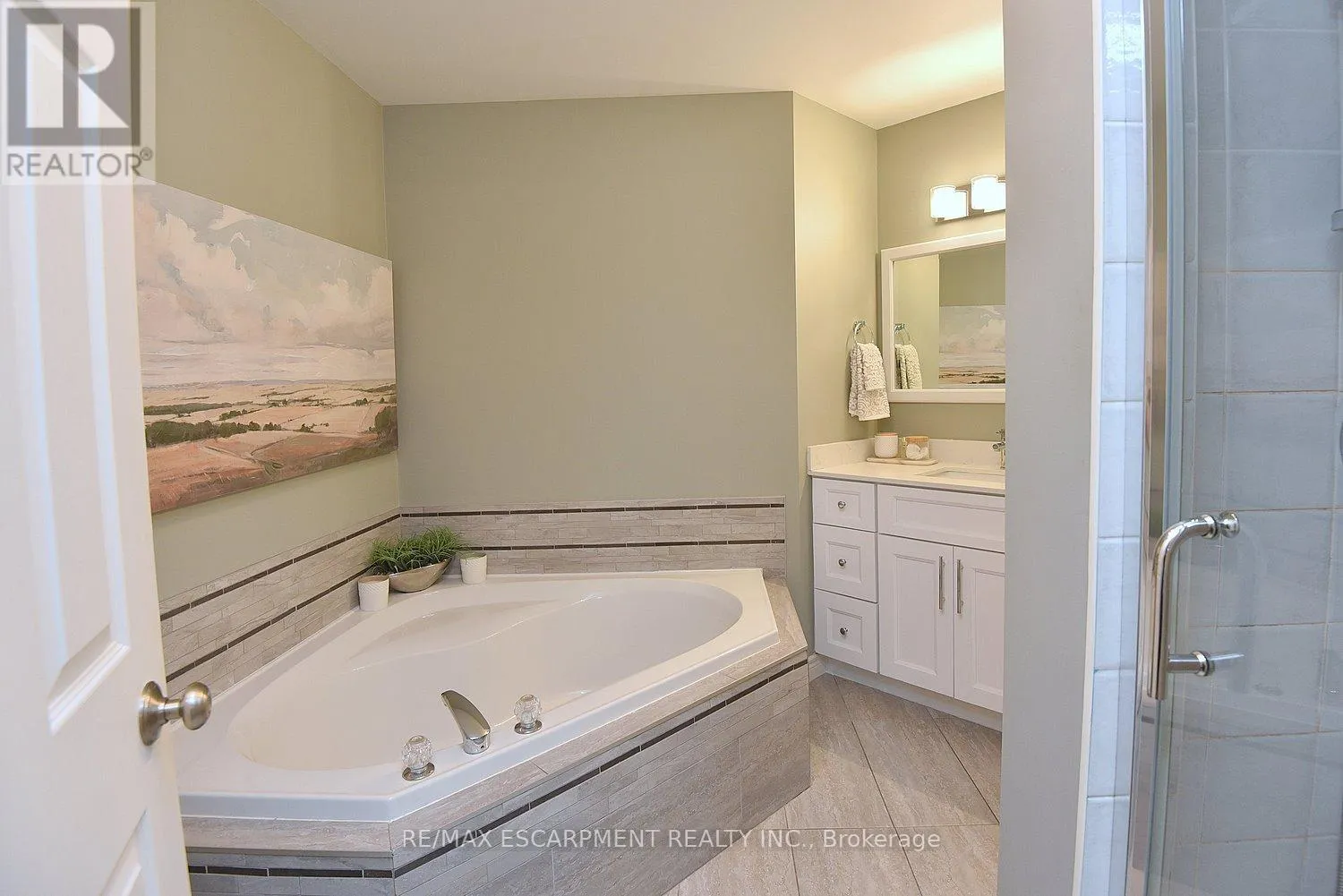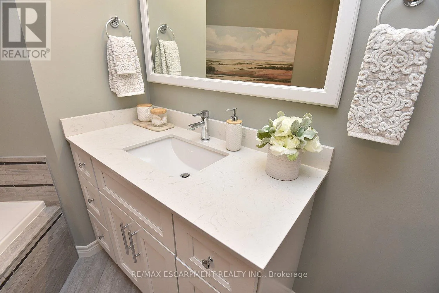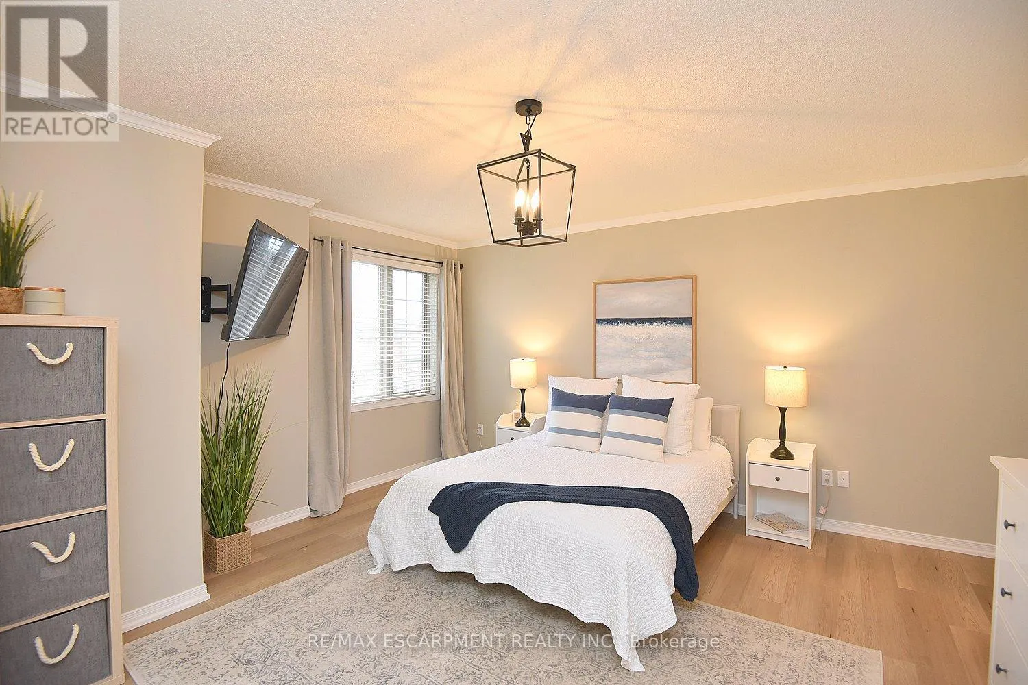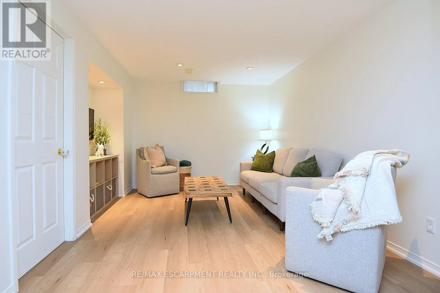 Livingston/Casablanca Welcome to the beautifully appointed townhome, ideally located in the heart of family-friendly Grimsby, just 1.3km from the Casablanca/QEW exit for convenient highway assess. The Open-Concept main level is perfect for modern living, featuring a stylish white kitchen, with granite countertops, SS appliances, and additional built-in cabinetry. Recent upgrade; newer wood-look flooring throughout the main & upper levels(2025). California Shutters & cozy gas fireplace. Step outside to a private, treed backyard with an aggregate patio and gas-line bbq. The upper level offers three generously sized bedrooms, along with a small loft space perfect for a home office or reading nook. Lower level is finished with a nice size recroom and laundry. A RARE feature; the driveway accommodates parking for 2 cars along with the garage gives you parking for 3 cars. Don't delay this amazing home will not last. (id:27476)