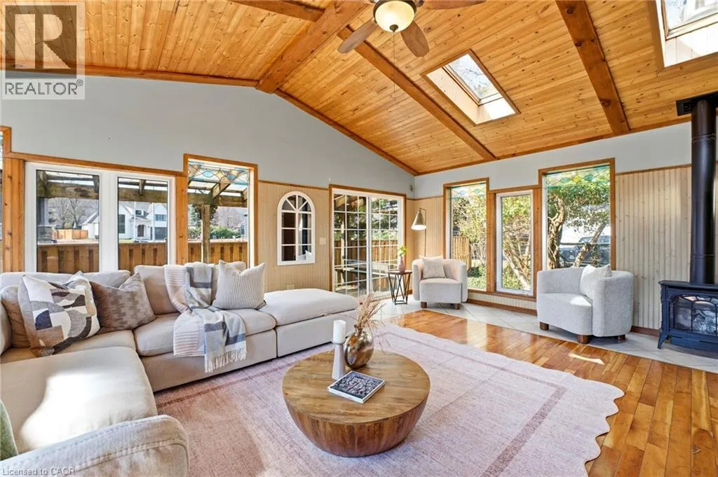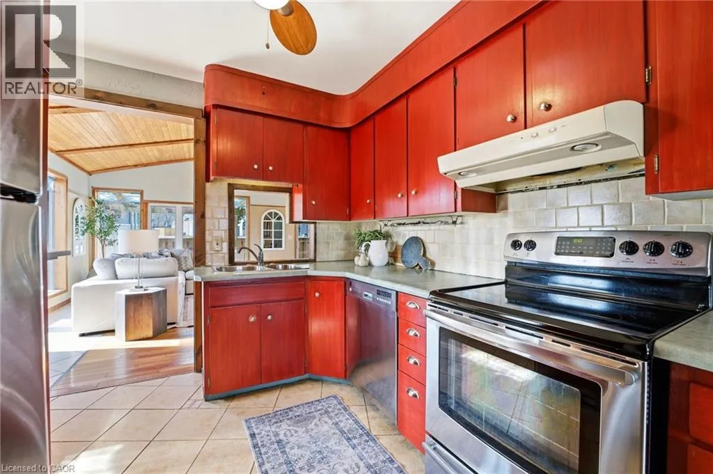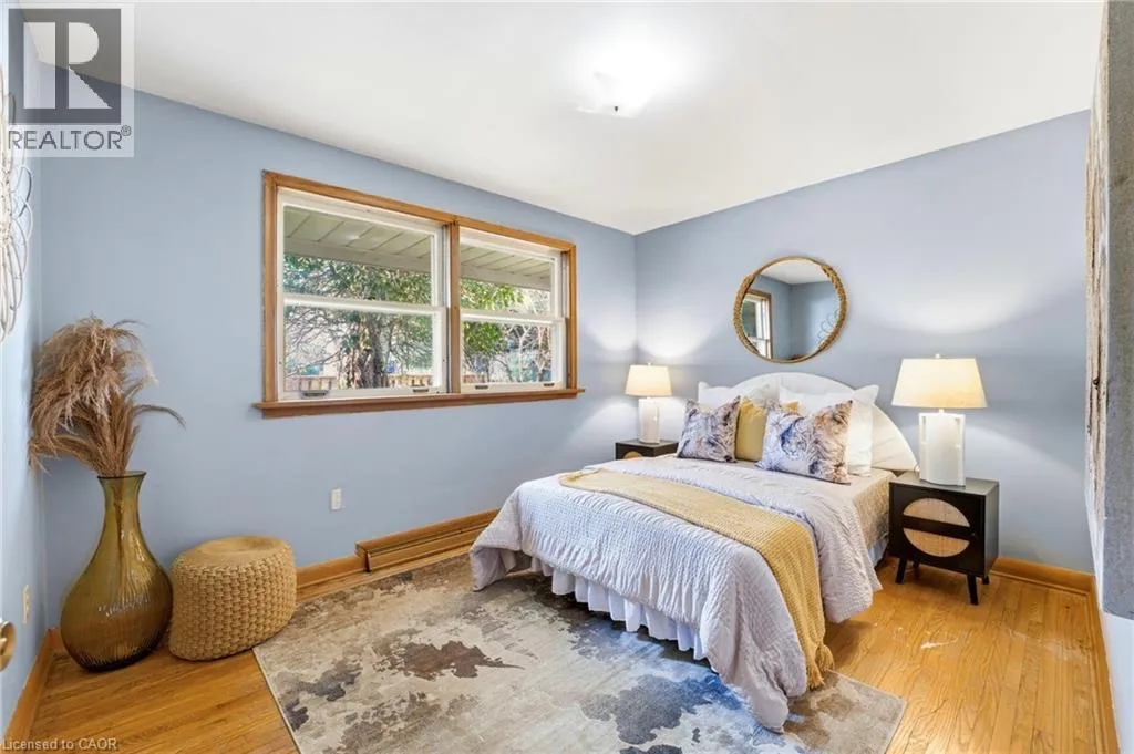 QEW to Bartlett Ave Grimsby, South on Bartlett on Main Street East A rare blend of country-sized living with city convenience â right in the heart of Grimsby. Set on just under half an acre of mature, beautifully landscaped grounds, this charming 2-bedroom bungalow offers the perfect balance of privacy and accessibility. Inside, youâll find a spacious family room with vaulted ceilings and a cozy gas potbelly stove, along with a separate formal living room featuring a wood-burning fireplace â ideal for entertaining or relaxing with family. Ideally located just minutes from the new West Lincoln Hospital, QEW, and GO Transit, commuting is effortless, with quick access to the U.S. border (30 minutes), Hamilton (20 minutes), and downtown Toronto (approximately one hour). Families will appreciate proximity to the new West Niagara Secondary School. Enjoy the serenity of a generous lot without sacrificing convenience â and if the existing home doesnât suit your vision, this property also presents an exceptional opportunity to build your custom dream home in a highly desirable location. (id:27476)
