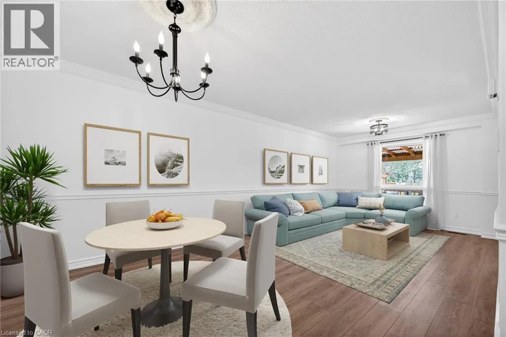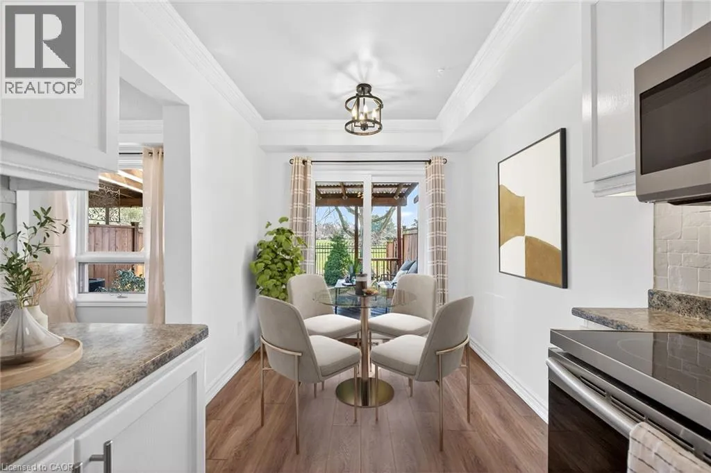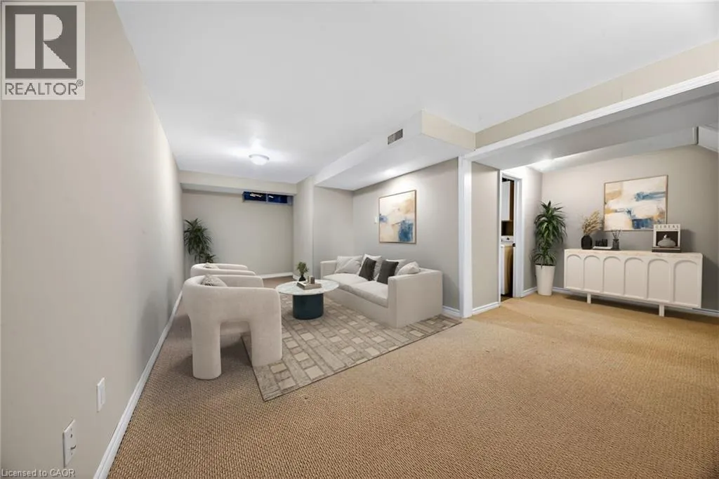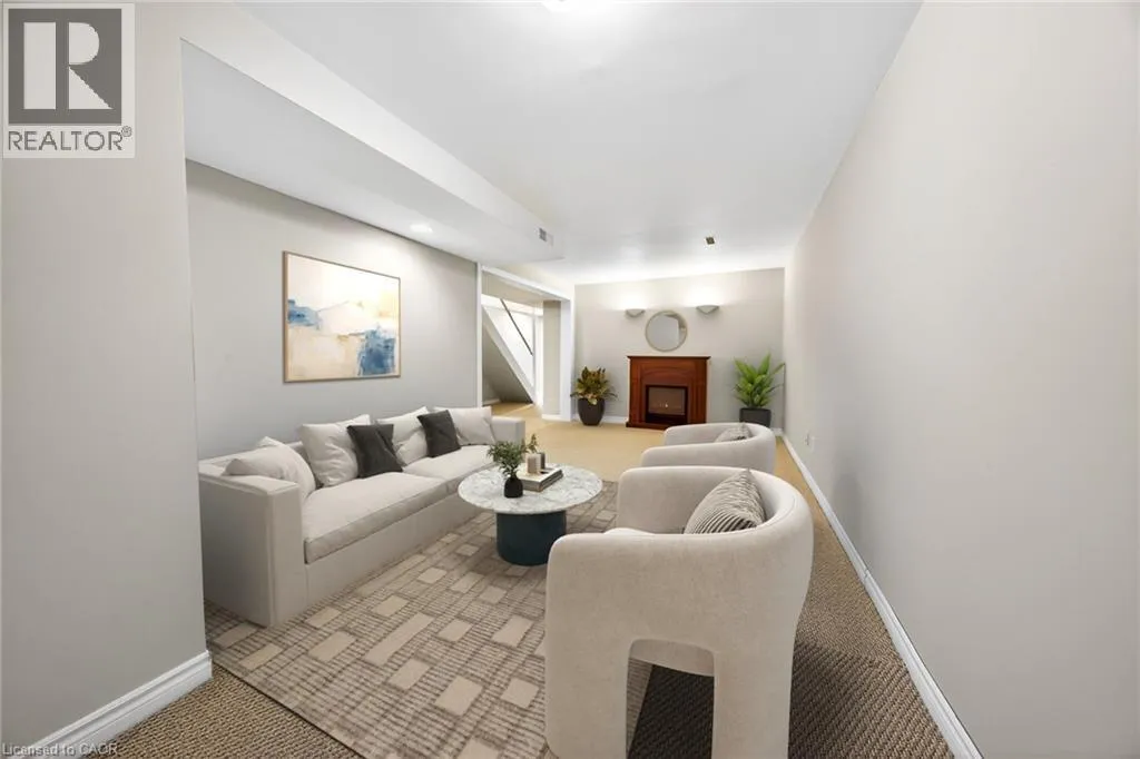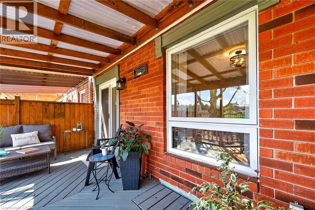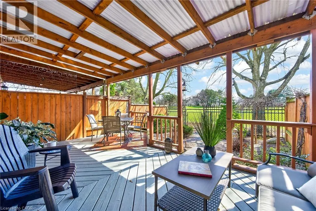 STUNNING 3 BEDROOM, 2.5 BATH, FREEHOLD TOWNHOME ON QUIET COURT backing onto Parkland. This spacious home is beautifully finished top-to-bottom. Welcoming foyer leads to gracious living room/dining room with crown moldings throughout. Fabulous kitchen with abundant cabinetry & appliances. Sliding doors from kitchen lead to serene backyard oasis with expansive covered deck, fenced yard with park & escarpment views. Large primary bedroom suite with 4-piece ensuite bath & walk-in closet. Finished lower level with electric fireplace features a large space for entertaining & relaxation. OTHER FEATURES INCLUDE: 2 1/2 baths, new central air unit 2024, all window treatments, new microwave/fan & premium flooring 2021, new garage door 2023, washer/dryer, roof shingles & furnace replaced, new dishwasher 2025. Steps to park, hospital & conveniences. This home offers a wonderful lifestyle in an idyllic setting! Some photos virtually staged. (id:27476)