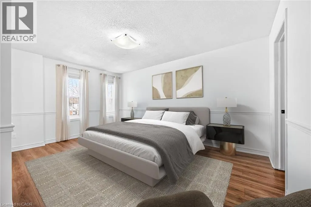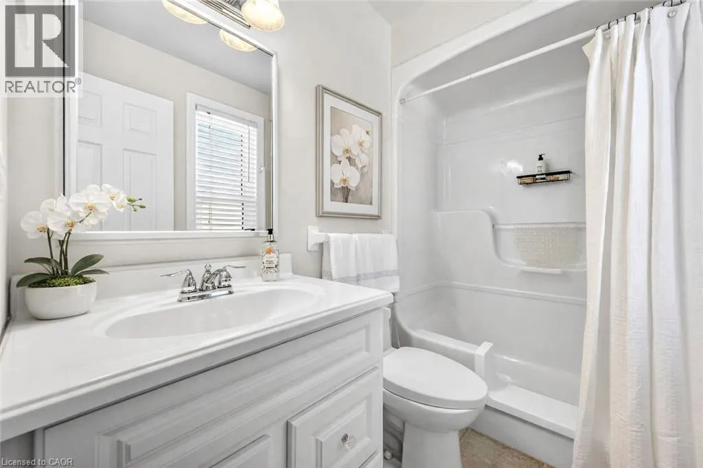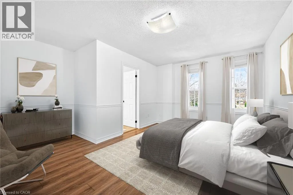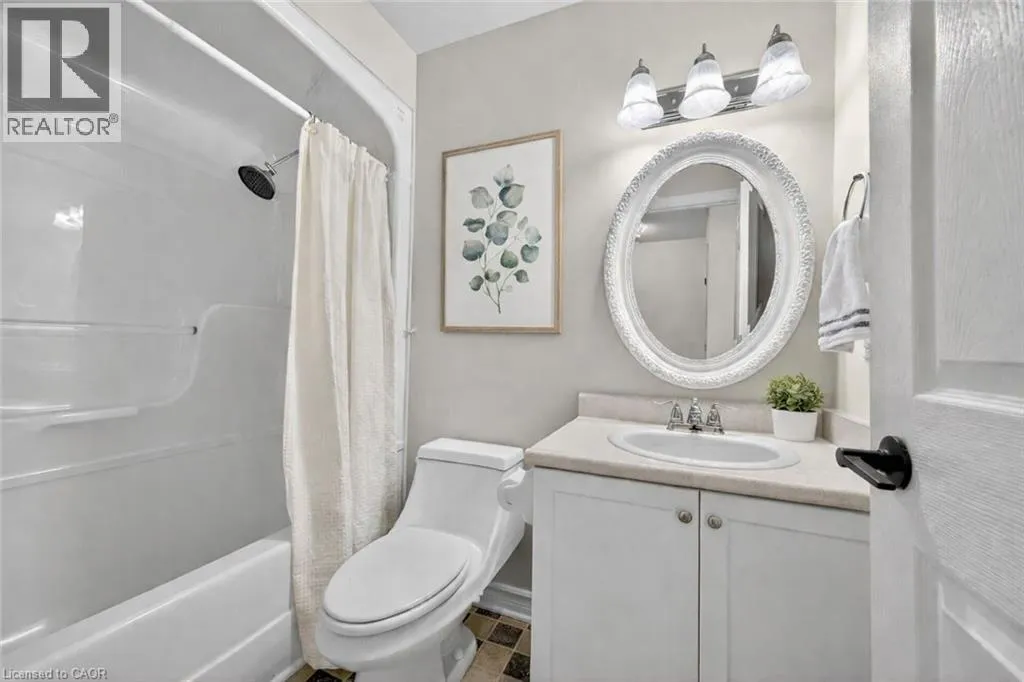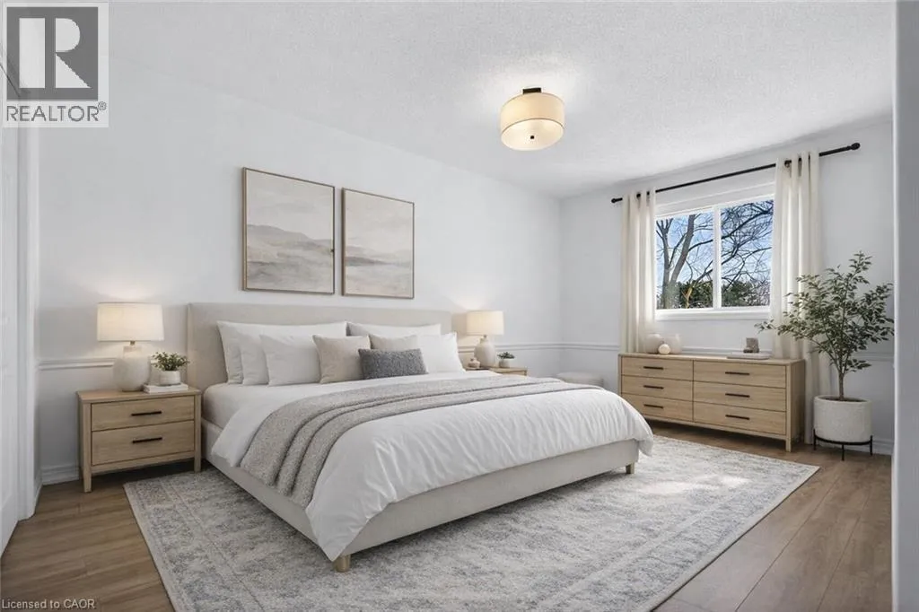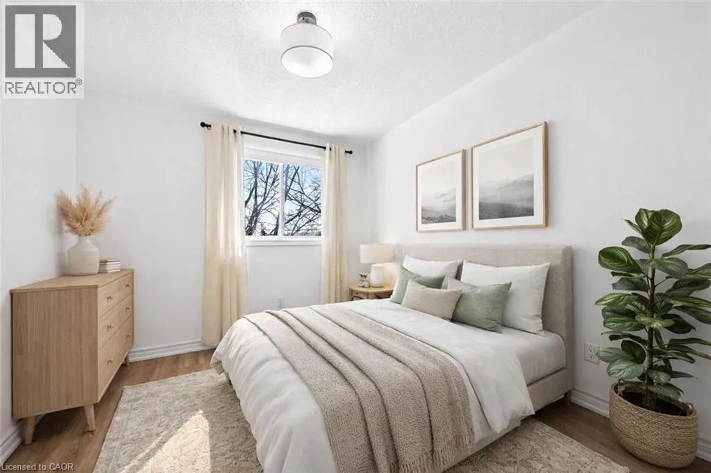 STUNNING 3 BEDROOM, 2.5 BATH, FREEHOLD TOWNHOME ON QUIET COURT backing onto Parkland. This spacious home is beautifully finished top-to-bottom. Welcoming foyer leads to gracious living room/dining room with crown moldings throughout. Fabulous kitchen with abundant cabinetry & appliances. Sliding doors from kitchen lead to serene backyard oasis with expansive covered deck, fenced yard with park & escarpment views. Large primary bedroom suite with 4-piece ensuite bath & walk-in closet. Finished lower level with electric fireplace features a large space for entertaining & relaxation. OTHER FEATURES INCLUDE: 2 1/2 baths, new central air unit 2024, all window treatments, new microwave/fan & premium flooring 2021, new garage door 2023, washer/dryer, roof shingles & furnace replaced, new dishwasher 2025. Steps to park, hospital & conveniences. This home offers a wonderful lifestyle in an idyllic setting! Some photos virtually staged. (id:27476)