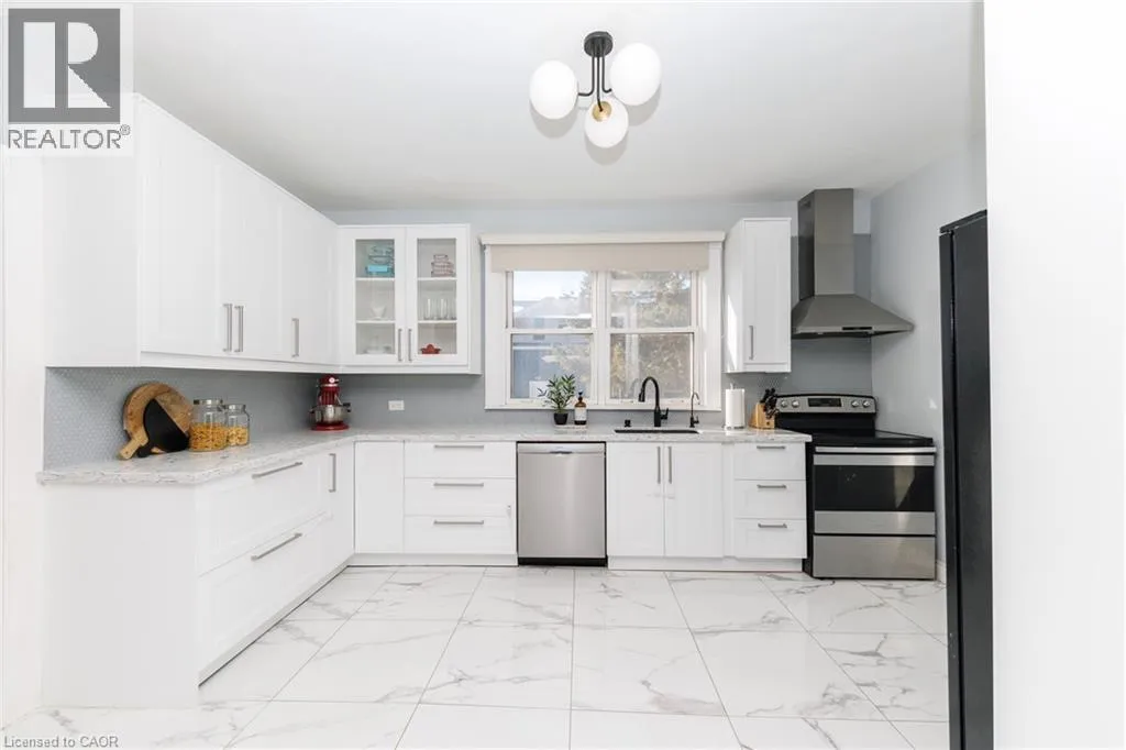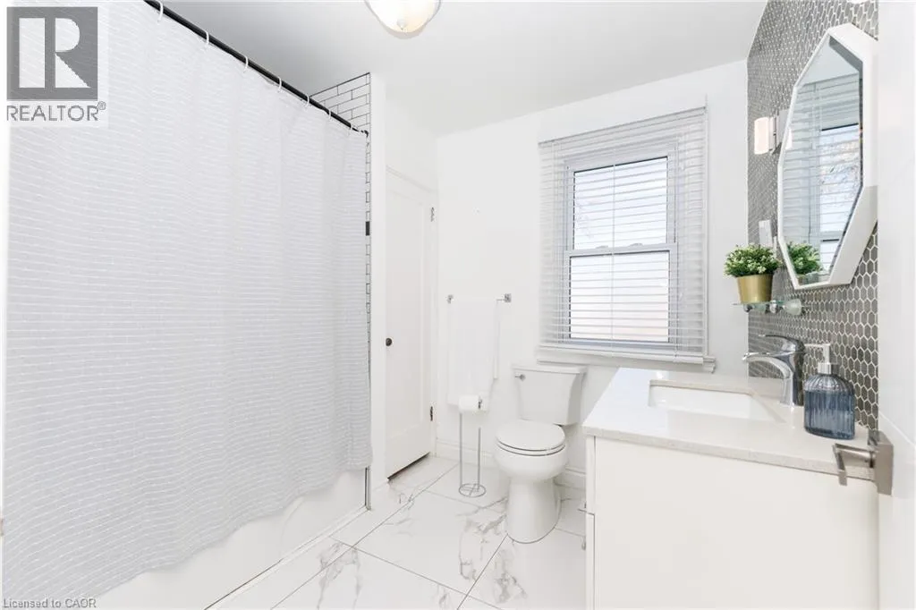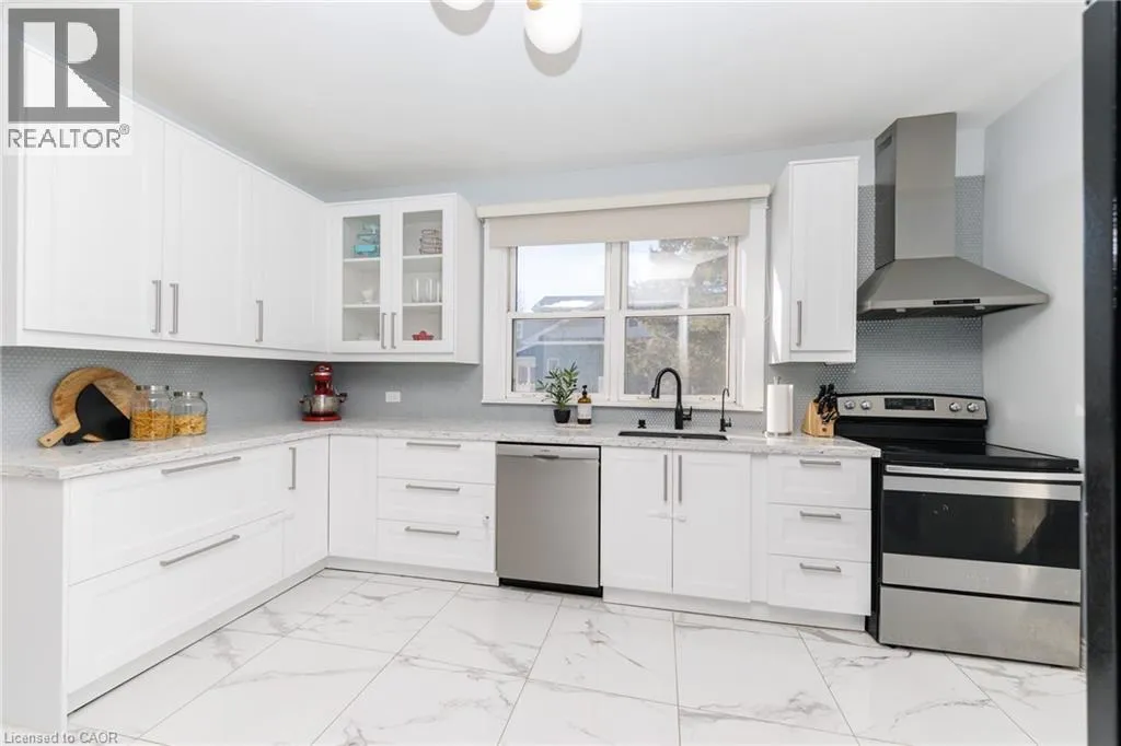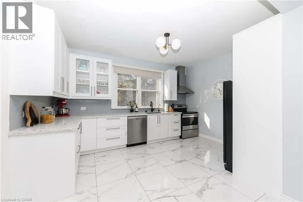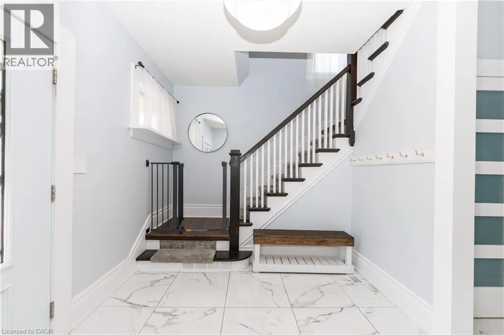 Christie to Olive street. Right on Fairview Beautifully updated 5-bedroom, 2-bath family home located on the desirable lakeside of Grimsby at 11 Fairview Road. Set on a generous lot, this property offers a large, private backyard surrounded by mature trees and fruit trees, ideal for families, entertaining, or future outdoor enhancements. A welcoming covered front porch leads into a bright and spacious interior featuring updated flooring, modern lighting, and abundant natural light throughout. The main floor includes a versatile primary bedroom or home office, stylish 4-piece bath, convenient laundry with exterior access, and an updated kitchen complete with stone countertops, backsplash, and ample cabinetry. The open living and dining areas provide comfortable everyday living and entertaining space. The upper level features four additional bedrooms, an updated 3-piece bath with glass shower, and a bonus den/sunroom overlooking the fully fenced backyard, perfect as a workspace, playroom, or relaxation area. The home offers excellent attic height with potential for additional finished living space, while the spacious lot presents potential for a future garage addition. Basement provides ample storage. Double driveway with parking for three vehicles or space for a boat or RV. Ideally located close to schools, parks, downtown Grimsby amenities, lakefront access, wineries, and just minutes to QEW access for commuters. (id:27476)