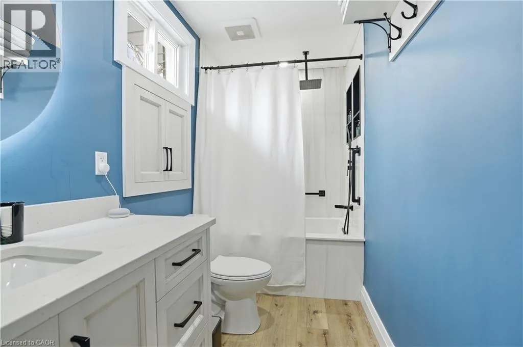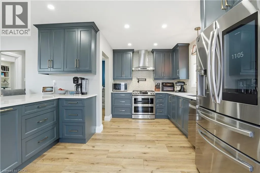 *Open House Saturday April 18, 2026 at 2pm-4pm & Sunday April 19 at 2pm-4pm * Bigger than it appears! Welcome to 101 Livingston Ave in the heart of Grimsbyâan extensively renovated 1.5 storey home (2021) offering exceptional space, versatility, and modern finishes throughout. Step inside to a stunning chefâs kitchen featuring quartz countertops, a large breakfast island, counter-to-ceiling backsplash, pot filler, and all stainless steel appliancesâperfect for everyday living and entertaining. The open-concept main floor showcases premium vinyl plank flooring, a bright dining area, and a spacious primary bedroomâideal for downsizers or those seeking main floor livingâplus a den perfect for working from home. Upstairs, youâll find two generously sized bedrooms, both with walk-in closets. The lower level offers a warm and inviting family space complete with a gas fireplace and walk-out to the backyardâperfect for gatherings or movie nights. The basement provides excellent in-law suite potential with an additional bedroom, 3-piece bath, rec room, and workshop. Enjoy a fully fenced backyard featuring a hot tub and endless possibilities to create your own outdoor oasis on a rare 53 x 150 ft lot. Located close to parks, schools, amenities, and quick highway accessâthis is one you donât want to miss! (id:27476)