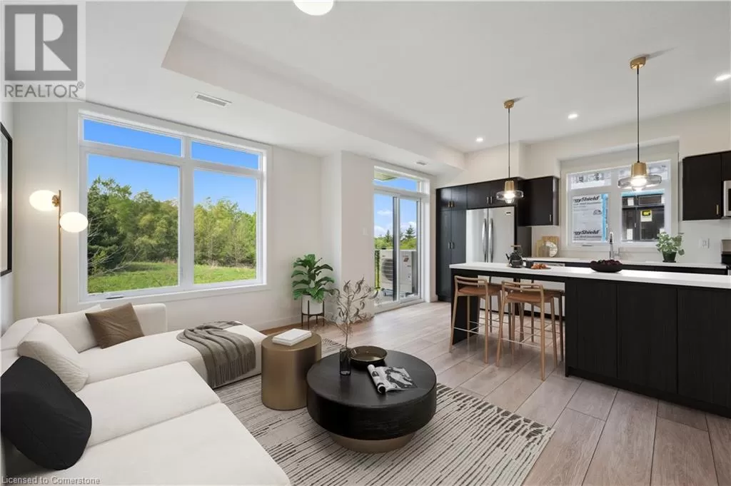 Woodlawn Road to Woolwich Street Step into your first home with confidence at this brand-new Granite Homes stacked townhouse, where modern living meets affordability without compromise. Picture yourself waking up to stunning green space views through expansive windows that flood your open-concept living area with natural light no more cramped apartments. With 2 spacious bedrooms and 2 full bathrooms featuring sleek, contemporary finishes, you'll have room to grow whether you're working from home, hosting friends, or simply enjoying your own sanctuary. The thoughtfully designed layout maximizes every square foot, giving you the space and privacy you've been dreaming of while remaining within reach of your budget. Located minutes from schools, shopping, and entertainment, your daily commute becomes a breeze, and weekend adventures are right outside your door. Best of all, this move-in-ready home means no waiting, no renovations, and no surprises just grab your keys and start building memories in a place that's truly yours. (id:27476)