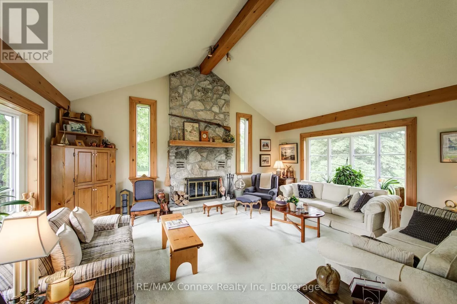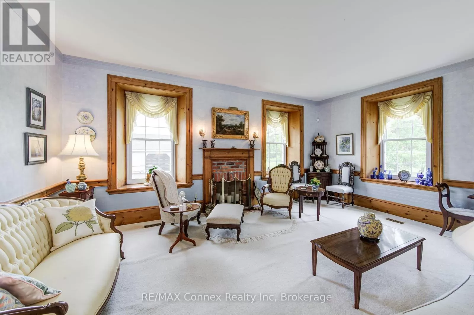 Cross Streets: Highway 7. ** Directions: Going west on HWY 7, Turn Right on Sixth line. Going East on HWY 7, turn left on sixth line. Imagine waking up every morning in your dream property. Driving down the stunning tree lined driveway, showcasing two spring fed ponds, a beautiful bank barn, detached building with two separate one car garage units and a heated workshop in the middle with a loft above. Walk the picturesque grounds to view the 45 acres of workable land, with additional gardens and trees making up a total of 86.4 acres of your very own. In addition to this, sits a 19th century home with 2904sq.ft of space to make your very own. It encompasses 4 bedrooms, 3 washrooms, family room with beautiful vaulted ceilings, a number of windows and a wood fireplace, separate living room with deep window sills and another cozy fireplace and a full dining room ready to fit all friends and family at your gatherings. A large functional kitchen with island, plenty of cupboard space, overlooking a breakfast area and cozy reading nook creating the perfect space for the cook and entertainer in your family. Upstairs has four bedrooms with lots of closet space, a primary bedroom with a 4pc ensuite, double closets and sitting area. Something very usual for a beautiful 19th century home, making it stand out from the rest is the large unfinished rec. room with high ceilings and poured concrete walls just waiting for your final touches. Every inch of this property has been meticulously kept and looked after. It has history, unique features that you will not find anywhere else and breath taking scenery. You are close to Acton, Rockwood, Guelph, Milton and so much more. Living in the country could not be easier. (id:27476)
