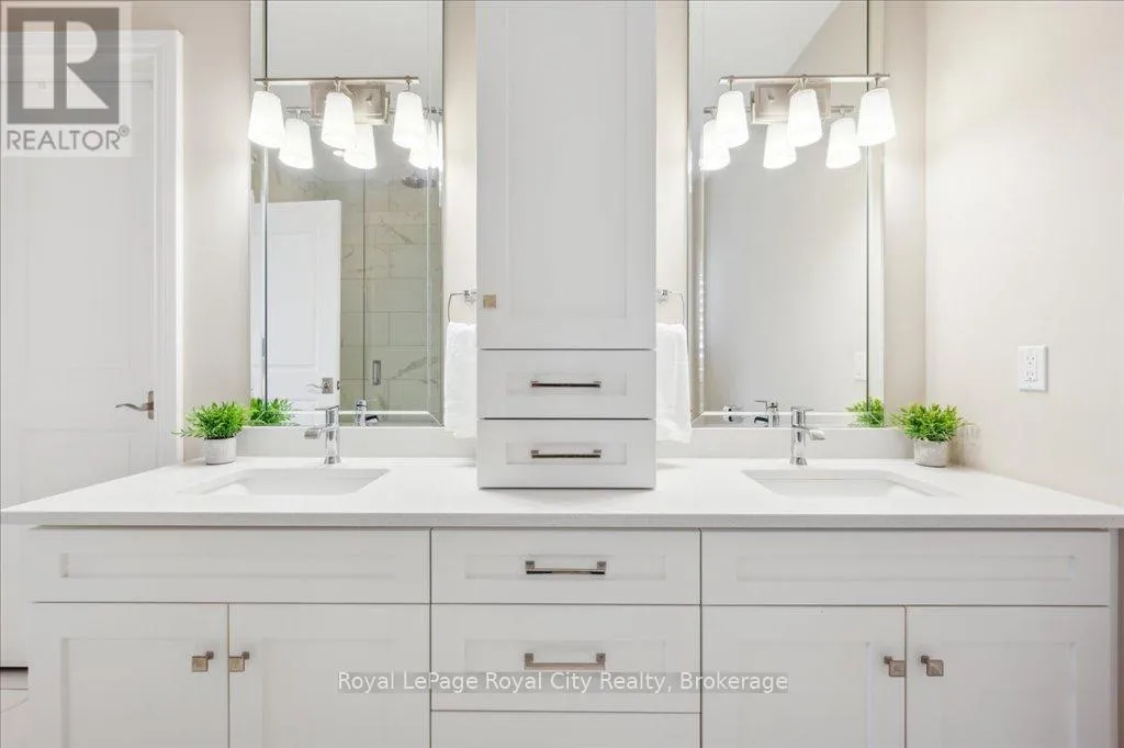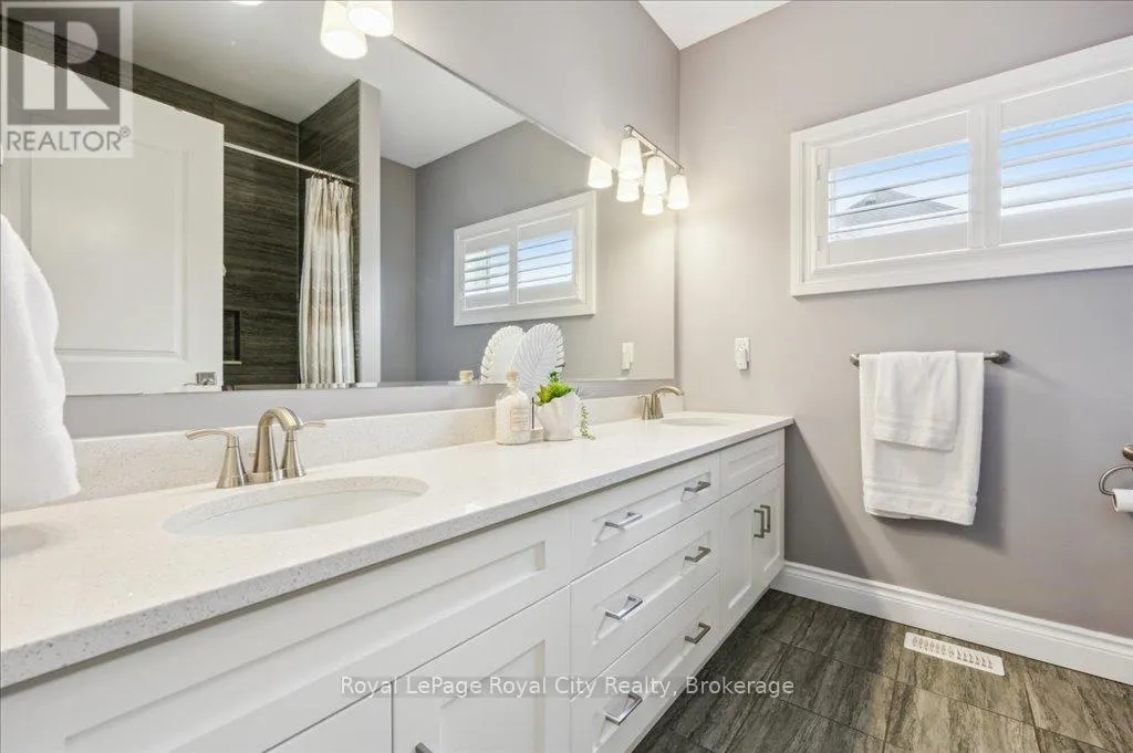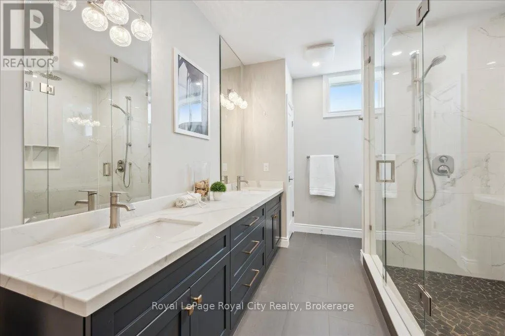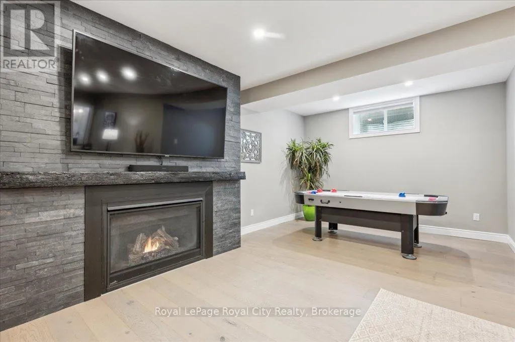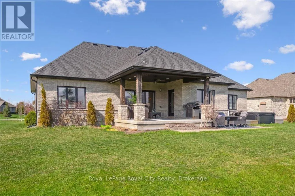 Off Wellington Rd. 51 Tucked away on a prestigious cul-de-sac in Ariss, this extraordinary executive residence epitomizes refined luxury, privacy, and community. From the moment you arrive, the attention to detail and upgrades, both inside and out, set this home apart as a true showpiece. The open-concept main level is a masterpiece of design, showcasing hand-scraped engineered hardwood beneath soaring 9' ceilings. In the living room, a striking coffered ceiling elevates the space with architectural elegance, while oversized windows flood every corner with natural light. A massive quartz island anchors the gourmet kitchen/dining area, surrounded by floor-to-ceiling custom cabinetry, premium finishes, a generous pantry, and high-end appliances, including a gas countertop range, double built-in ovens, and a MARVEL wine fridge. Step outside to the covered rear porch and adjoining composite deck, where a built-in hot tub invites relaxation overlooking the expansive backyard and the scenic Kissing Bridge Trail beyond. The primary suite is designed to rival any five-star spa, boasting a luxurious ensuite with a frameless glass shower, dual vanities with custom cabinetry, a spacious walk-in closet, and direct access to the deck and hot tub. Two additional bedrooms, a stunning 5-piece bathroom, and an elegant powder room provide comfort and sophistication for family and guests alike. The main-level laundry and mudroom combination is both beautiful and practical, finished to the same high standard as the rest of the home. The lower level is equally impressive, with soaring ceilings, engineered hardwood, a striking stone-clad gas fireplace, a 4-piece bathroom, and two generously sized bedrooms- creating the perfect space for guests, teenagers, or extended family. Ideally located just minutes from Guelph, K/W, and Centre Wellington, and a short stroll to Ariss Valley Golf Course, this home delivers an unparalleled lifestyle of elegance and convenience in a highly desirable rural setting. (id:27476)