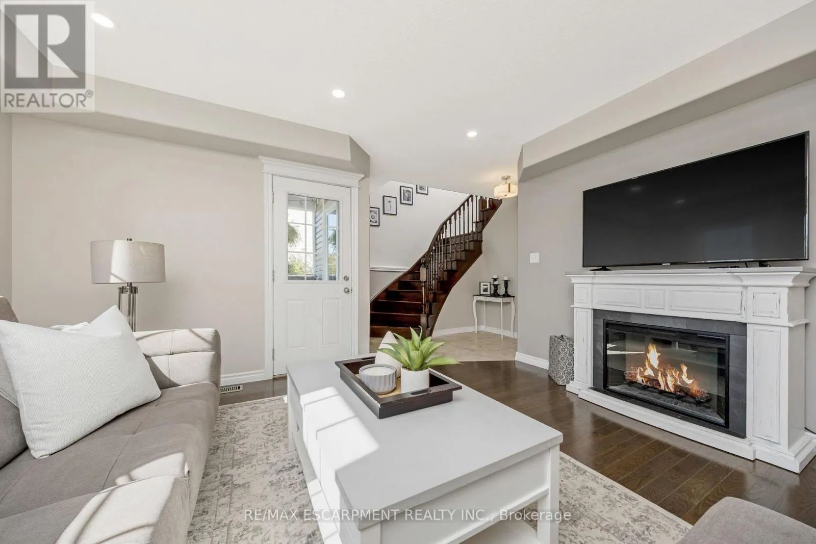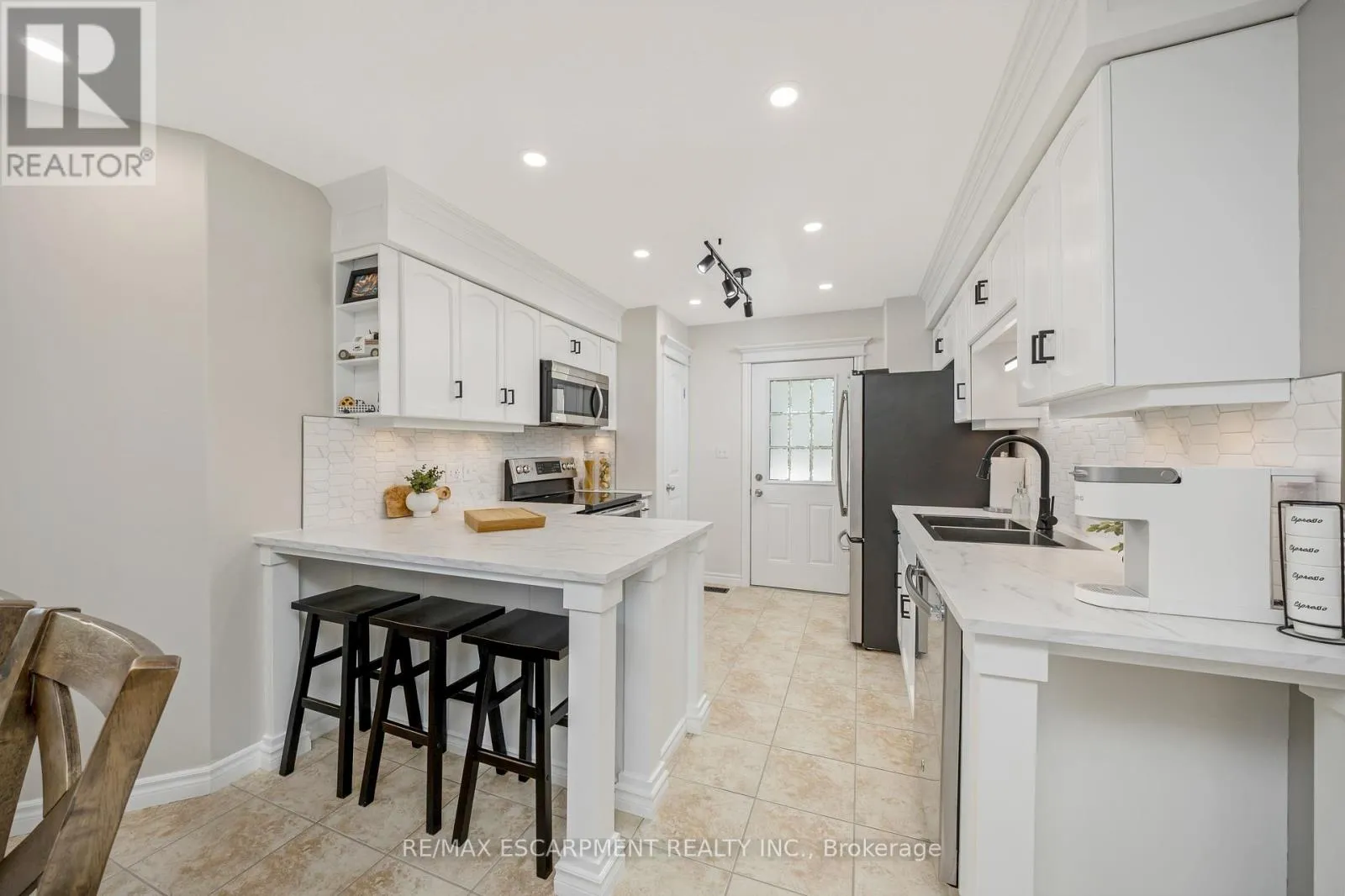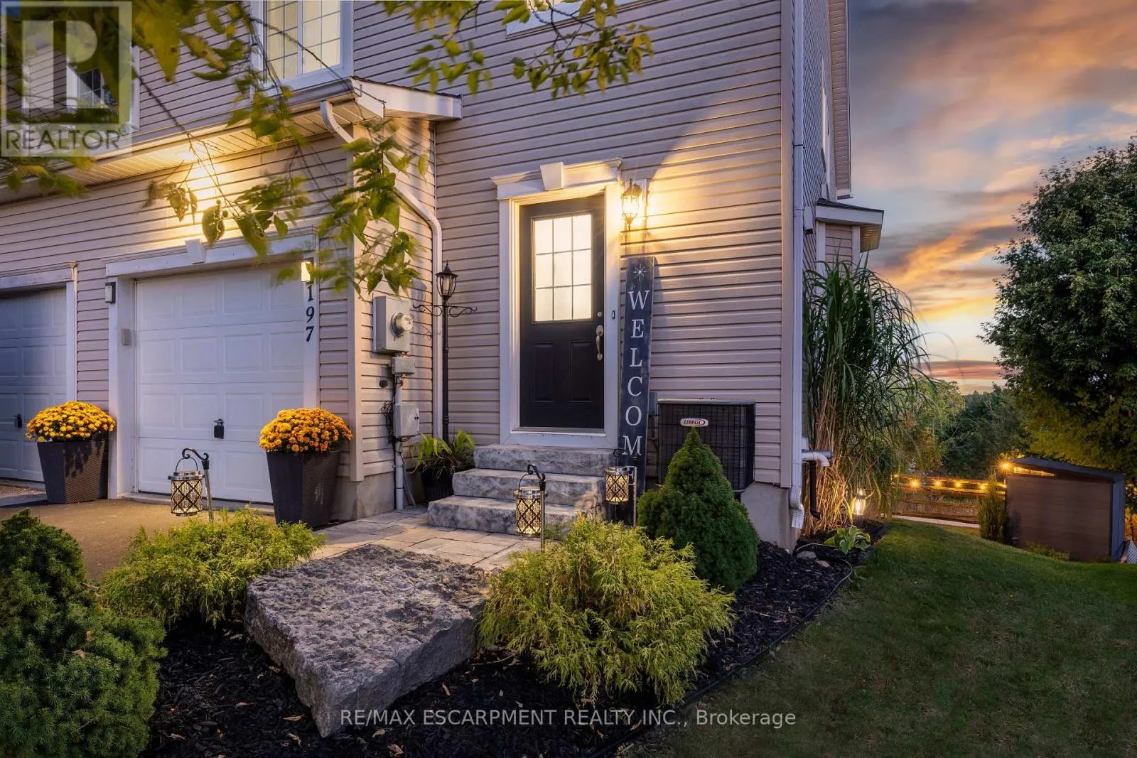 Cross Streets: Main St S & Ridge Rd. ** Directions: Main St S to Ridge Rd to Jolliffe Ave to Ridge Top to Carters Lane. Welcome home to 197 Carters Lane, Rockwood, ON, an end-unit townhouse that checks all the boxes for growing families or those taking the exciting leap into home ownership. Situated on a pie shaped lot with no backyard neighbours, this home offers privacy, comfort, and space to grow. Step through the beautifully landscaped front entrance with charming arbor stone steps into the heart of the home. The main floor features an updated kitchen - new countertops, a stylish backsplash, and modern light fixtures - flowing effortlessly into a bright dining area with a large window that brings in warm natural light. The living room boasts gleaming hardwood floors, pot lights, and a walkout to a balcony overlooking the well-kept backyard - perfect for morning coffee or watching kids play. The main level also features a powder room and direct access to the garage. Upstairs you'll find three cozy bedrooms and a full four-piece bathroom, with semi ensuite access from the primary bedroom. The primary also includes a walk-in closet and generous natural light. Upper-level laundry makes life easier-no more hauling laundry up and down stairs. The finished basement adds even more living space: a bright recreation room, exercise room, vinyl flooring, pot lights, and a walkout to a covered patio - an ideal spot for family BBQs, kid space, or just chilling outdoors in any weather. There's also a convenient 3-piece bathroom downstairs. Located on a friendly, family-oriented street in a neighbourhood known for green space and natural features, you'll love having access to trails, and nearby parks. The Rockwood Conservation Area is close by for weekend adventures in nature. And with easy commutes to Guelph and Acton (for GO train access), this home delivers both peaceful living and connected opportunity. If you're ready to start your home ownership journey in a place where your children can make new friends, play in the yard, and you feel part of a real community - this one's waiting for you. (id:27476)