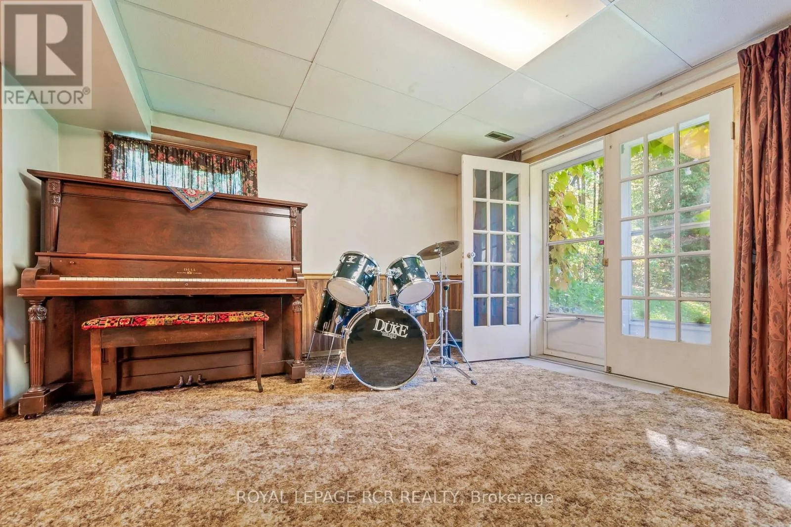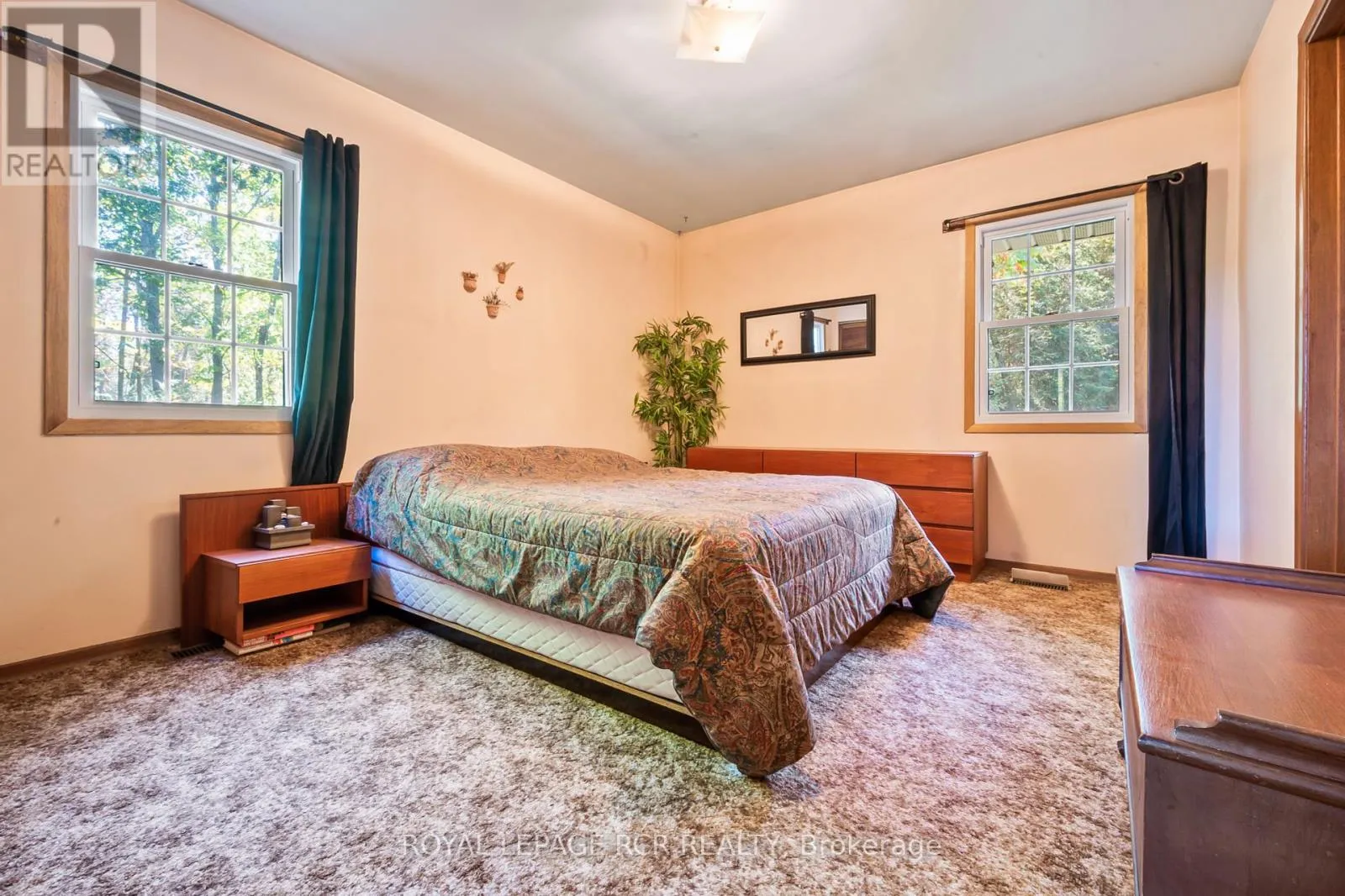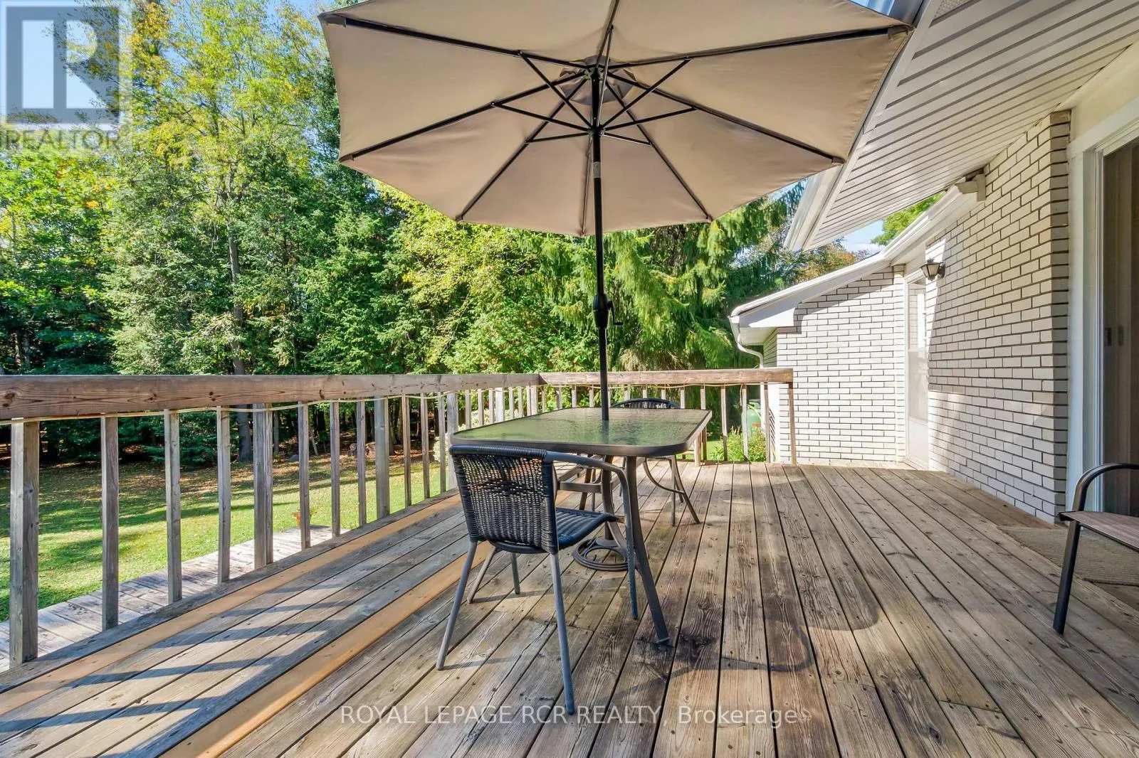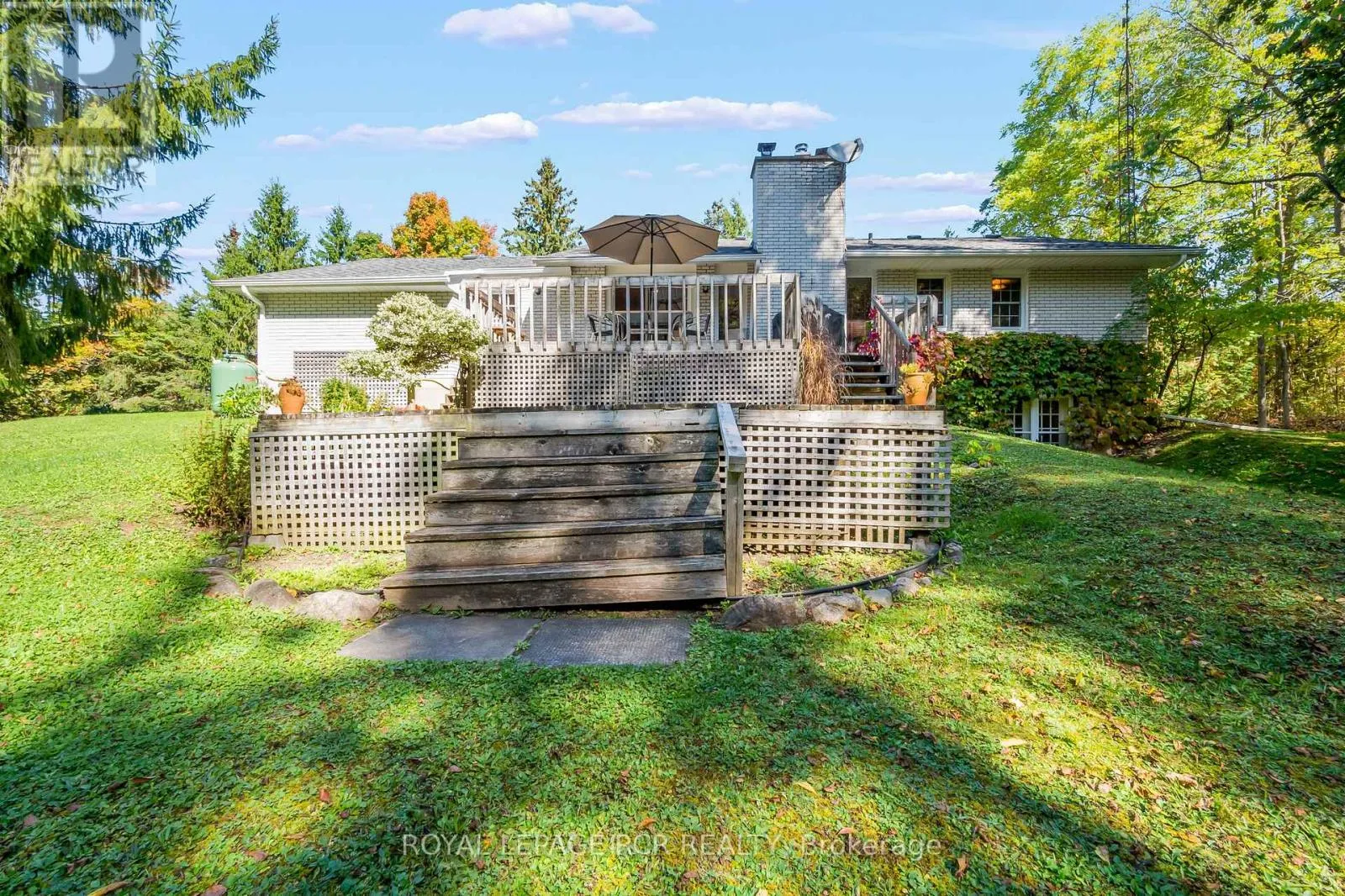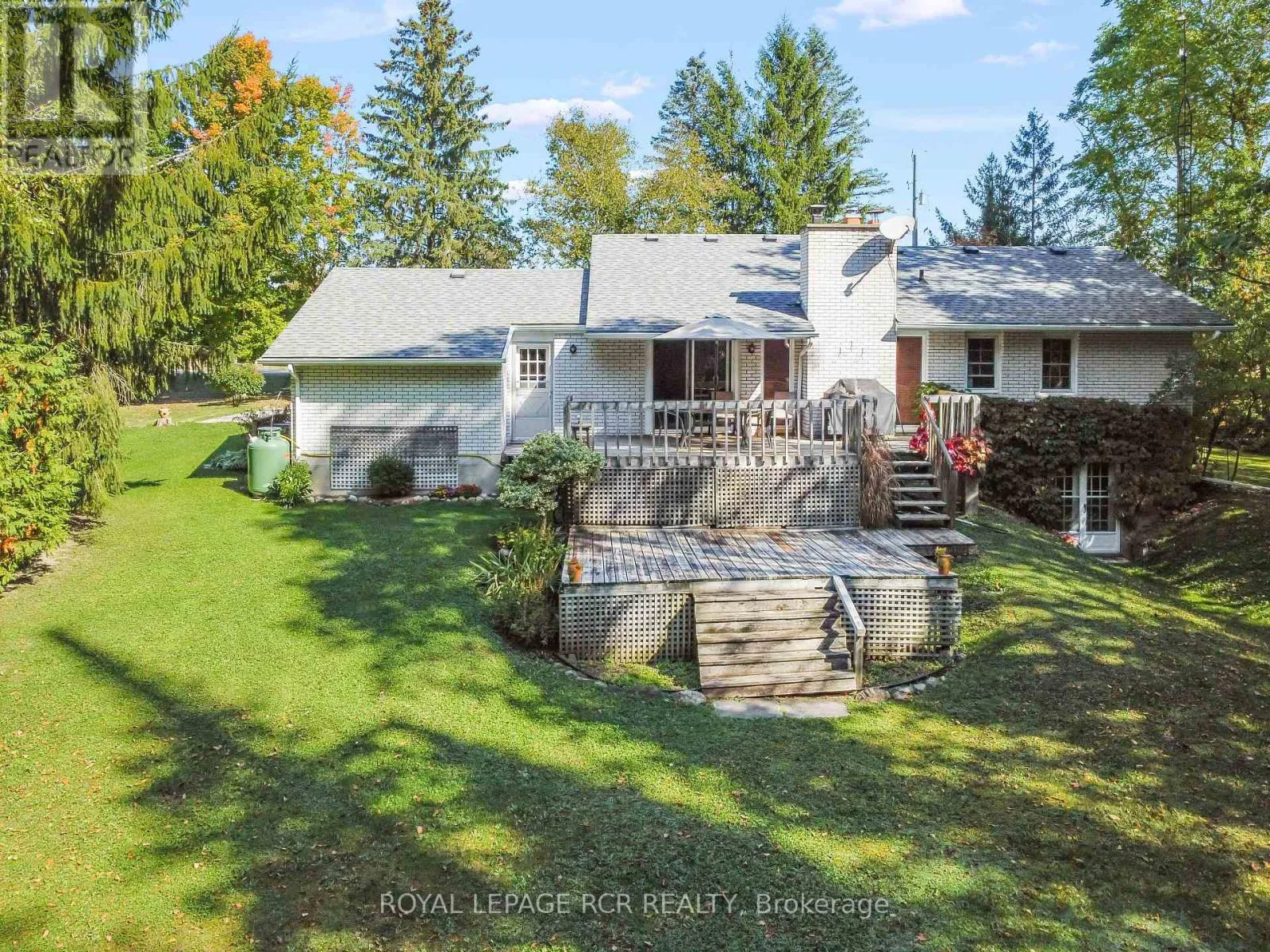 Cross Streets: Wellington Rd 124/Wellington Rd 49. ** Directions: South on Wellington Rd 49 (Wellington Street) from Wellington Rd 124. Set back from the road and surrounded by a canopy of mature trees, this 3+1 bedroom bungalow sits on a deep lot with a mix of open green space and wooded backdrop. The setting feels peaceful and secluded, yet is only a short drive to town amenities. The main floor offers comfortable living, with a bright eat-in kitchen overlooking the yard and a spacious living/dining area ideal for family gatherings. Three generously sized bedrooms provide plenty of space for family or guests, while large windows throughout the home frame calming views of nature.The finished walkout basement expands your living space with endless possibilities. A cozy brick-clad woodstove creates a warm focal point in the recreation room, while additional finished areas offer room for hobbies, a games room, music or art studio, or even a guest suite. Outside, the multi-level deck is perfect for hosting barbecues, enjoying morning coffee, or simply relaxing under the trees. The spacious yard invites gardens, play, or quiet moments surrounded by nature, while the wooded section of the property adds both privacy and charm. The location is a true highlight. Just a short drive brings you to Rockwood, Guelph, and the 401, making commuting towards the GTA or Kitchener-Waterloo simple and stress-free. Local parks, conservation areas, and trails are nearby for weekend adventures, while shopping, dining, and schools are close at hand for everyday convenience. (id:27476)