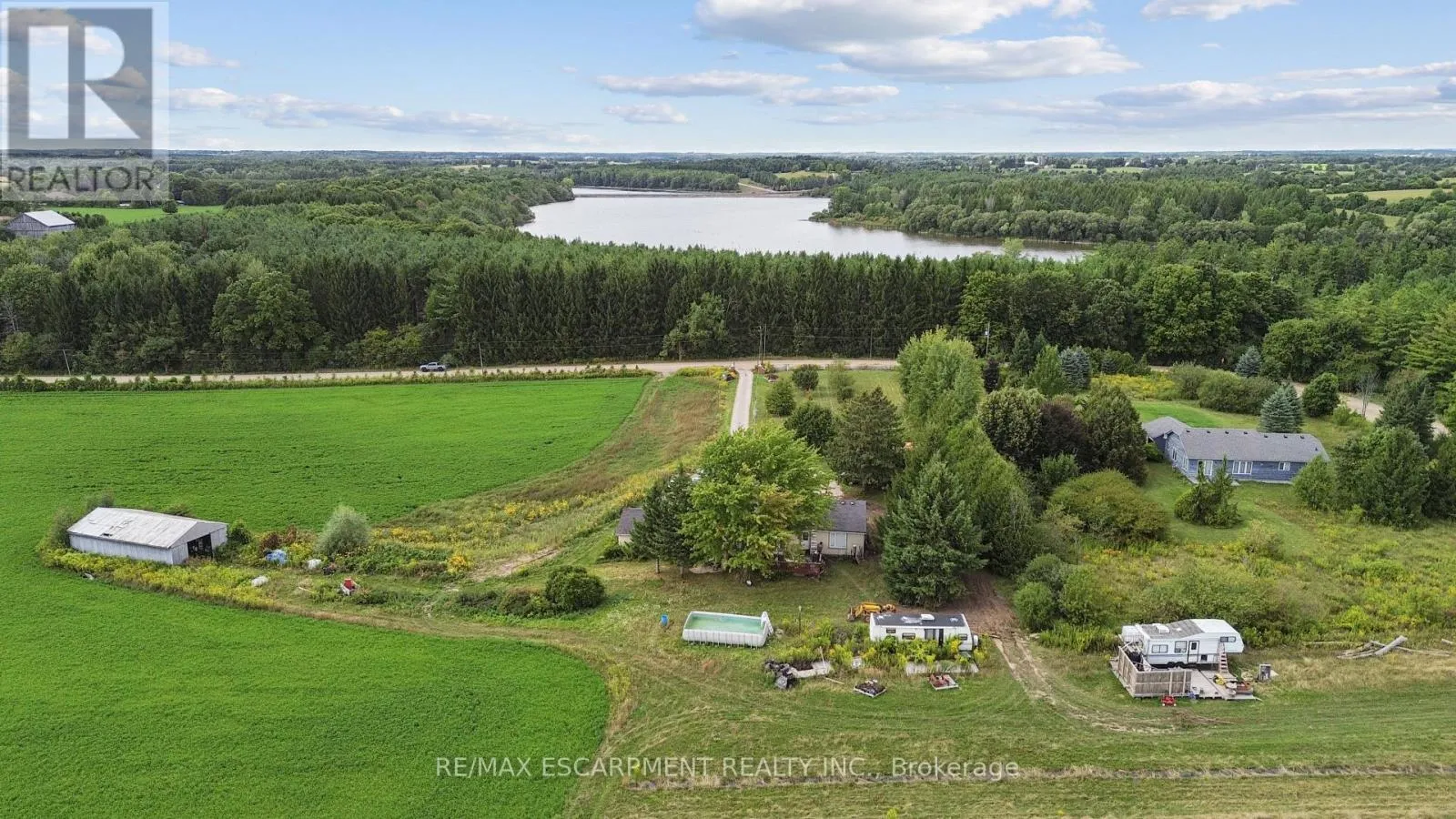 Cross Streets: Hwy 7 & Jones Baseline. ** Directions: Hwy 7 to Jones Baseline to 10 Sideroad. Investor alert: 44.84 acres of prime sandy loam agricultural land with multiple income streams and future upside. Located just outside the city limits, this unique Guelph/Eramosa opportunity combines cash flow today with long-term land value appreciation. Set on a gently rolling landscape with stunning views, open fields, mixed bush, and daily breathtaking sunsets, this property borders Guelph Lake - literally just across the road. Enjoy watching local wildlife roam freely while standing on land thats both serene and income-producing. The parcel includes: Workable arable land (rented annually for crop income), A well-established Saskatoon berry patch with strong harvest yield, Two rented billboard signs for recurring passive revenue, A self-contained 2-bedroom in-law suite/apartment with separate entrance, A main home featuring 2 bedrooms and 2 bathrooms, Double garage + long private driveway with ample parking, Outbuildings for equipment storage. Serviced by well, septic, and propane, and zoned agricultural, this property offers privacy, stability, and flexible income generation. Bonus - You can live the country lifestyle while staying just minutes from Guelph, with direct access to trails, and conservation lands nearby. Whether you're buying to hold, develop, or harvest its income potential - this land performs now and appreciates over time. (id:27476)