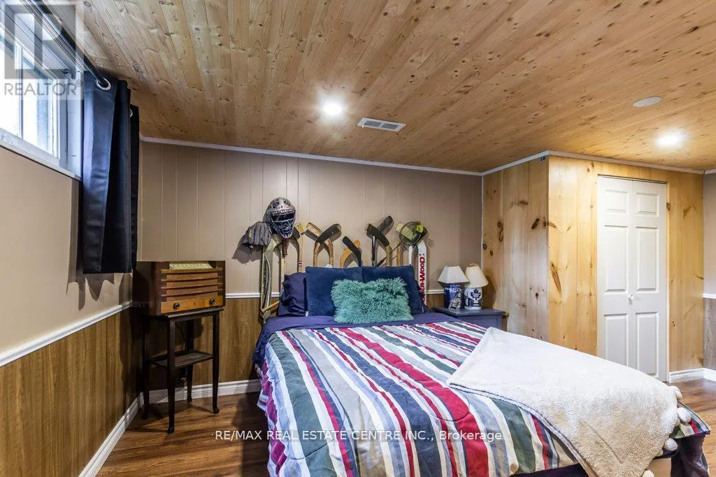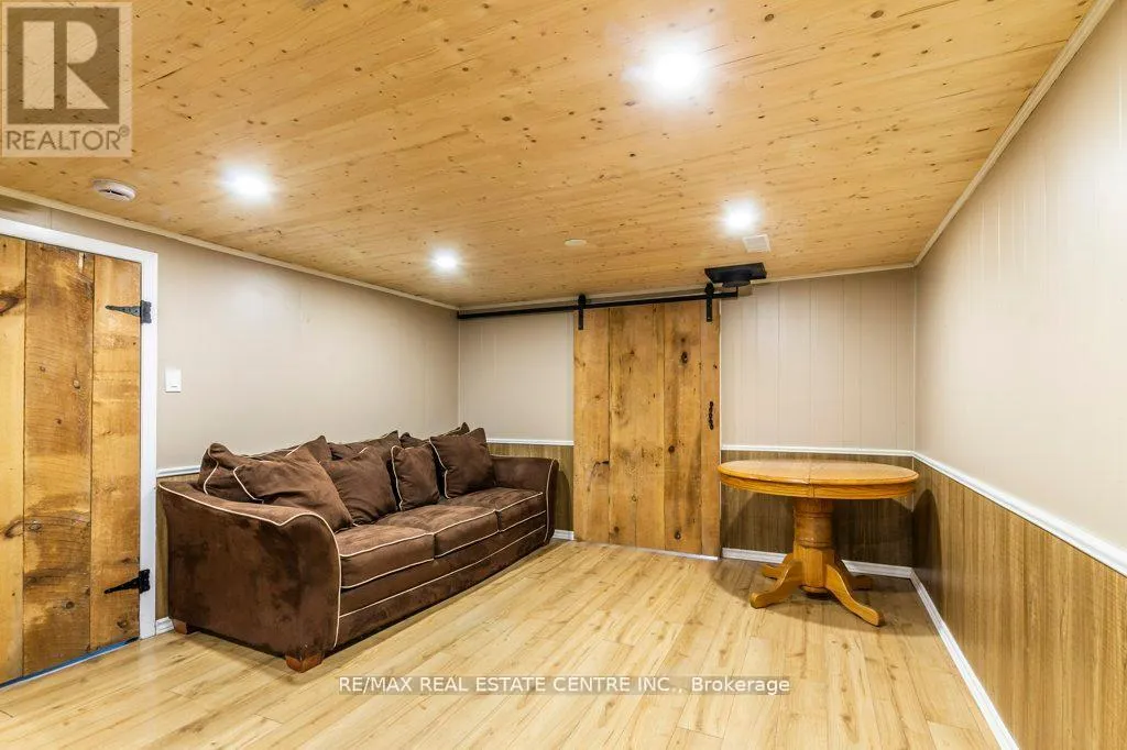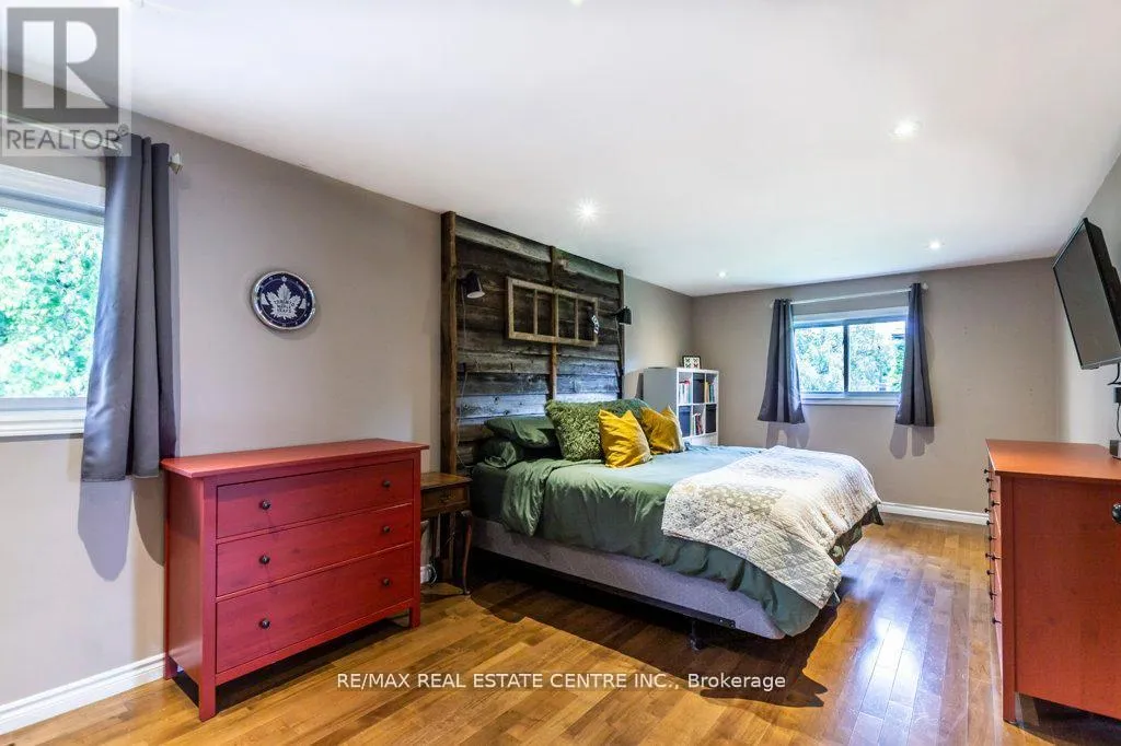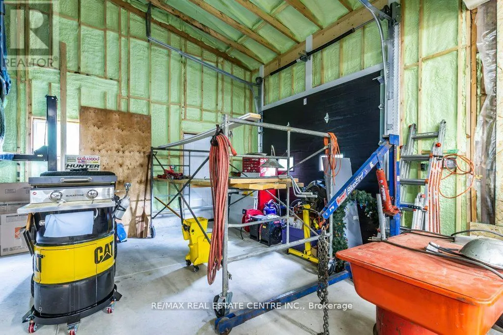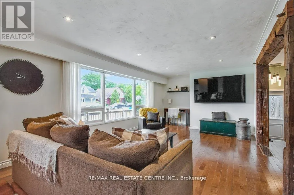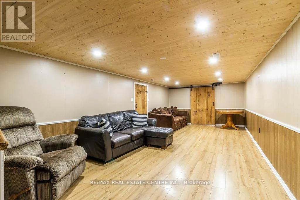 Wilson Street and GuelphLine Gorgeous upgraded open concept brick bungalow with a huge garage/workshop on half an acre in picturesque village of Eden Mills. The expansive eat-in kitchen is enhanced with rich cabinetry with undermount lighting, stunning granite counters with farm-style sink inset, stone backsplash, and movable island. Stainless steel built-in microwave, built-in oven, countertop range, stainless steel hood fan and stainless steel refrigerator. The kitchen overlooks the vast living room with huge picture window. Rich hardwood floors and barn beam accents compliment the main floor with huge primary bedroom, second bedroom and a renovated four piece bathroom with heated floors and luxurious ceramics. The lower level offers a huge recreation room, spacious bedroom and a recent three piece washroom with built-in laundry. Lots of storage available in the utility room and in the furnace room. The massive garage/workshop has 220 amp power, room for more than four vehicles and a second garage door to the side opening to the private backyard oasis. Notable features: new propane furnace and water heater (December 2024), waterproofed basement, 125 amp house panel, attic insulation (June 2024), new bathroom/laundry room (October 2024), new soffits, facia and eavestrough on house and shop (June 2024), 500 sq.ft. addition to shop (June 2024), new siding on shop (June 2024). A truly awesome opportunity to live in a quiet village setting. (id:27476)