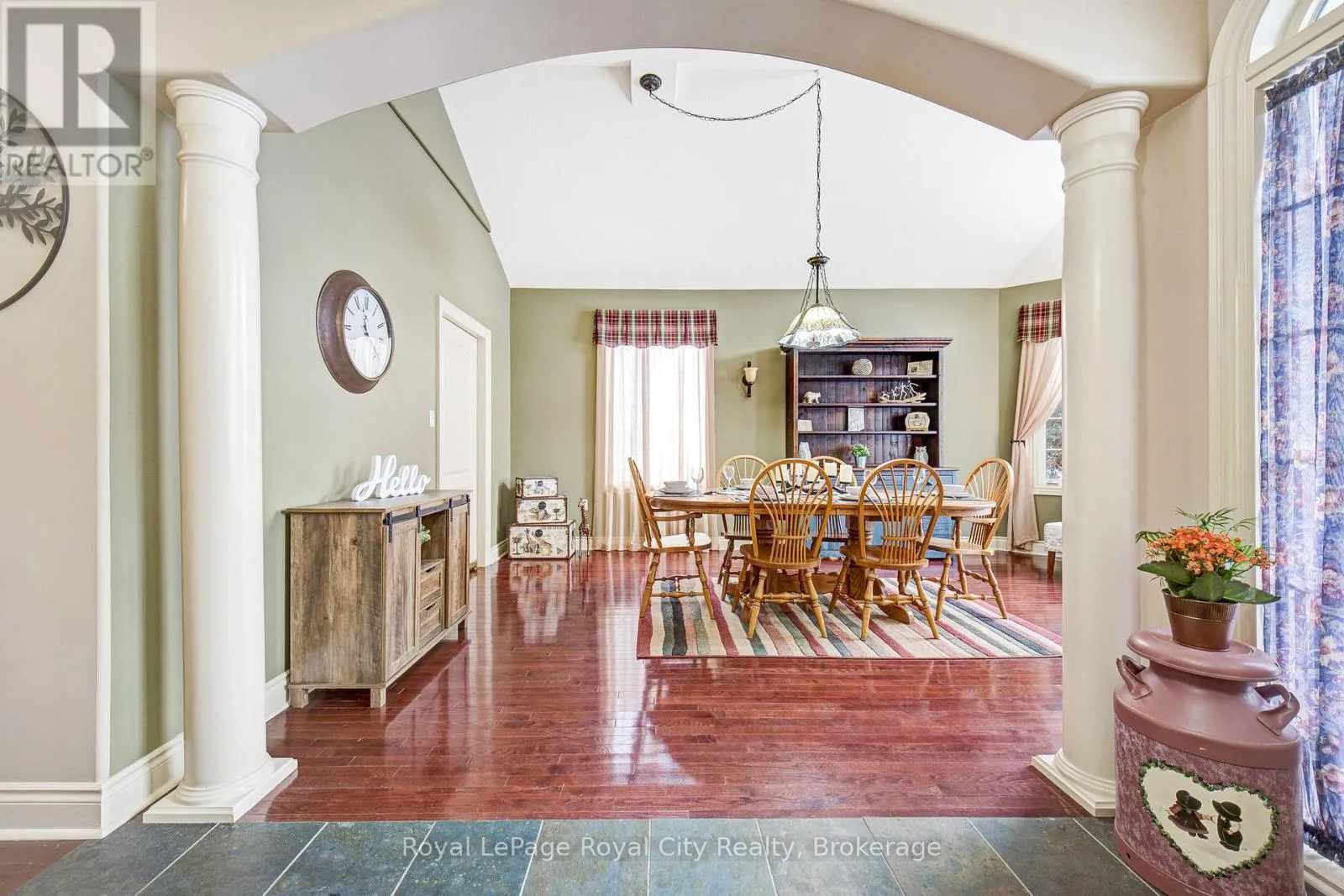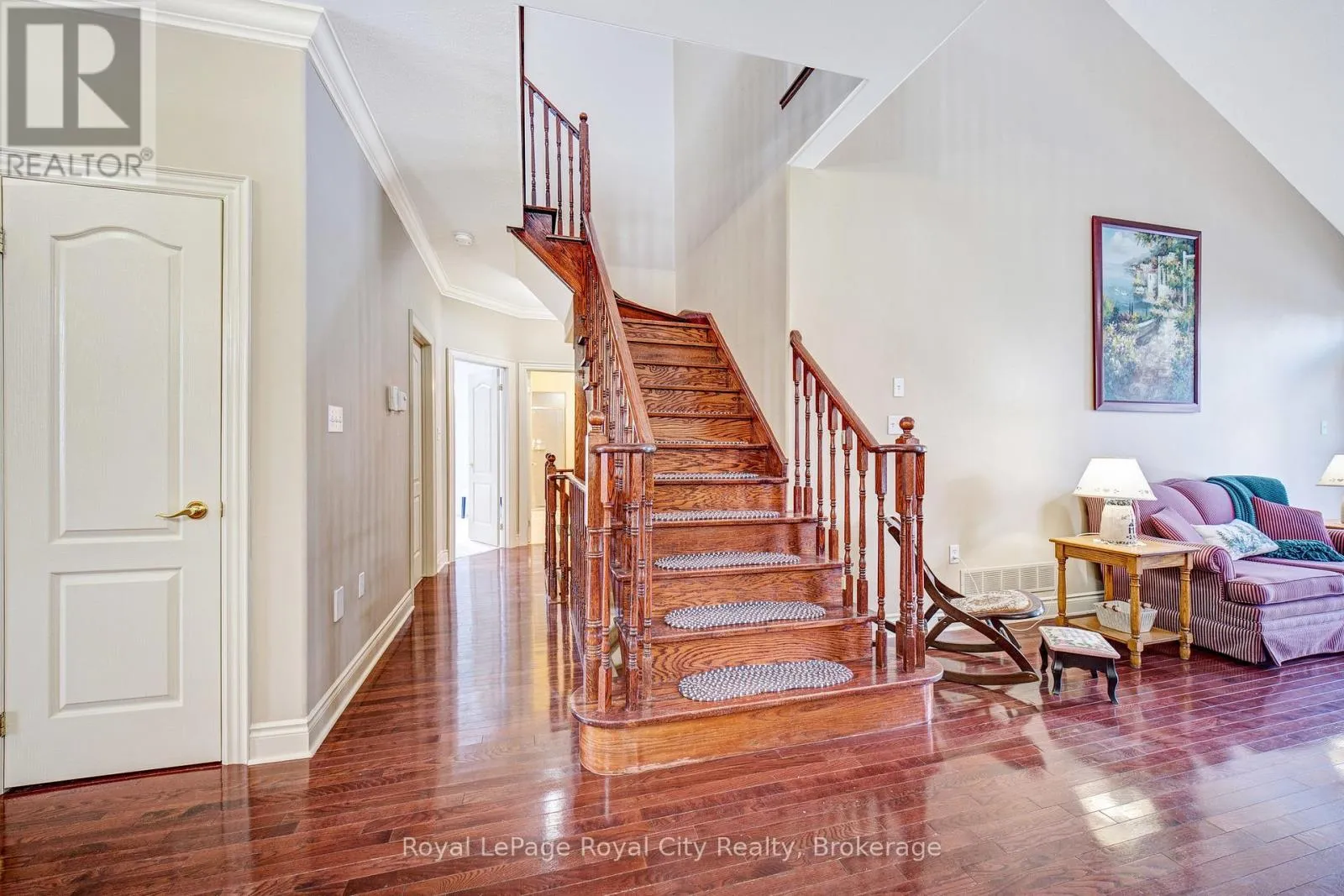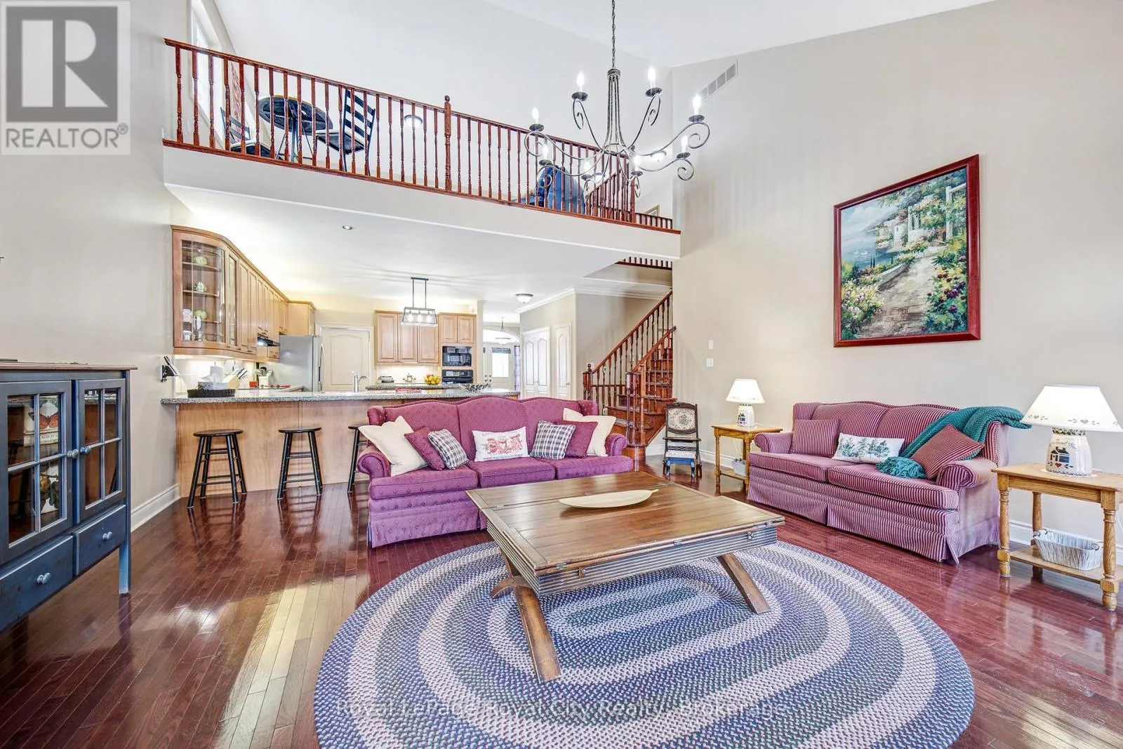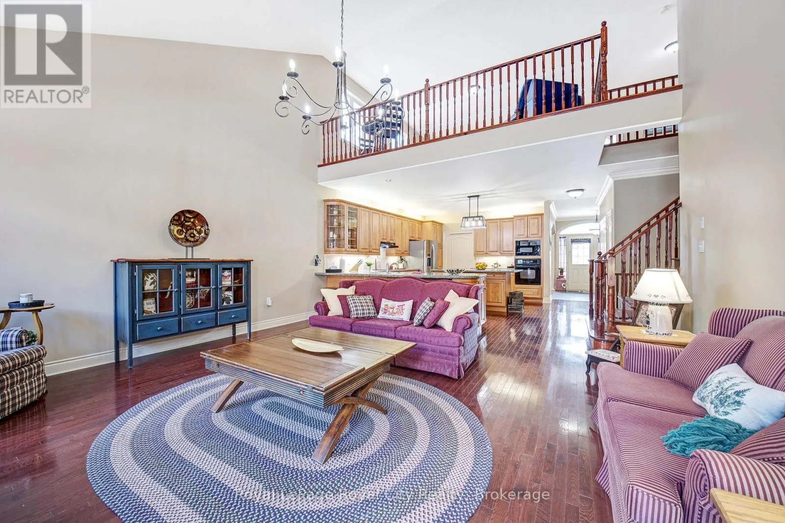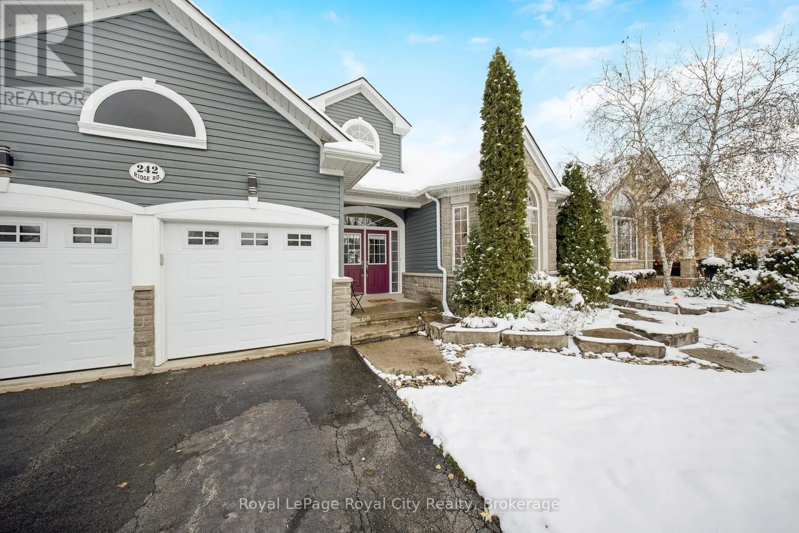 Cross Streets: Ridge Road & Dunbar Street. ** Directions: Hwy 7 to Ridge Road. Nestled on one of Rockwood's most desirable streets, this highly sought-after bungaloft sits on an impressive 51 x 177-foot lot backing onto tranquil natural surroundings. The home offers a spacious, open-concept design beginning with a welcoming front foyer that flows into a bright and elegant dining room, complete with a butler's door leading into a large, well-appointed kitchen featuring built-in appliances. The adjoining living room is both airy and inviting, showcasing vaulted ceilings that open to the loft above, a cozy gas fireplace, and double doors leading to a new back deck with beautiful views of the private yard and greenspace beyond. The main floor includes a generous primary suite with a walk-in closet and luxurious five-piece ensuite, along with a second bedroom, a full bath, and convenient main floor laundry. Upstairs, the spacious loft offers just under 400 square feet of open-concept living space-ideal as a family or media room-along with a third bedroom and another full bath. The lower level remains unfinished, providing exceptional potential for future customization. A double-car garage with excellent ceiling height adds practicality and value, perfect for additional storage or even a potential lift. Set in a peaceful and highly regarded neighbourhood, this home blends comfort, space, and timeless design with a picturesque backdrop of natural beauty. (id:27476)