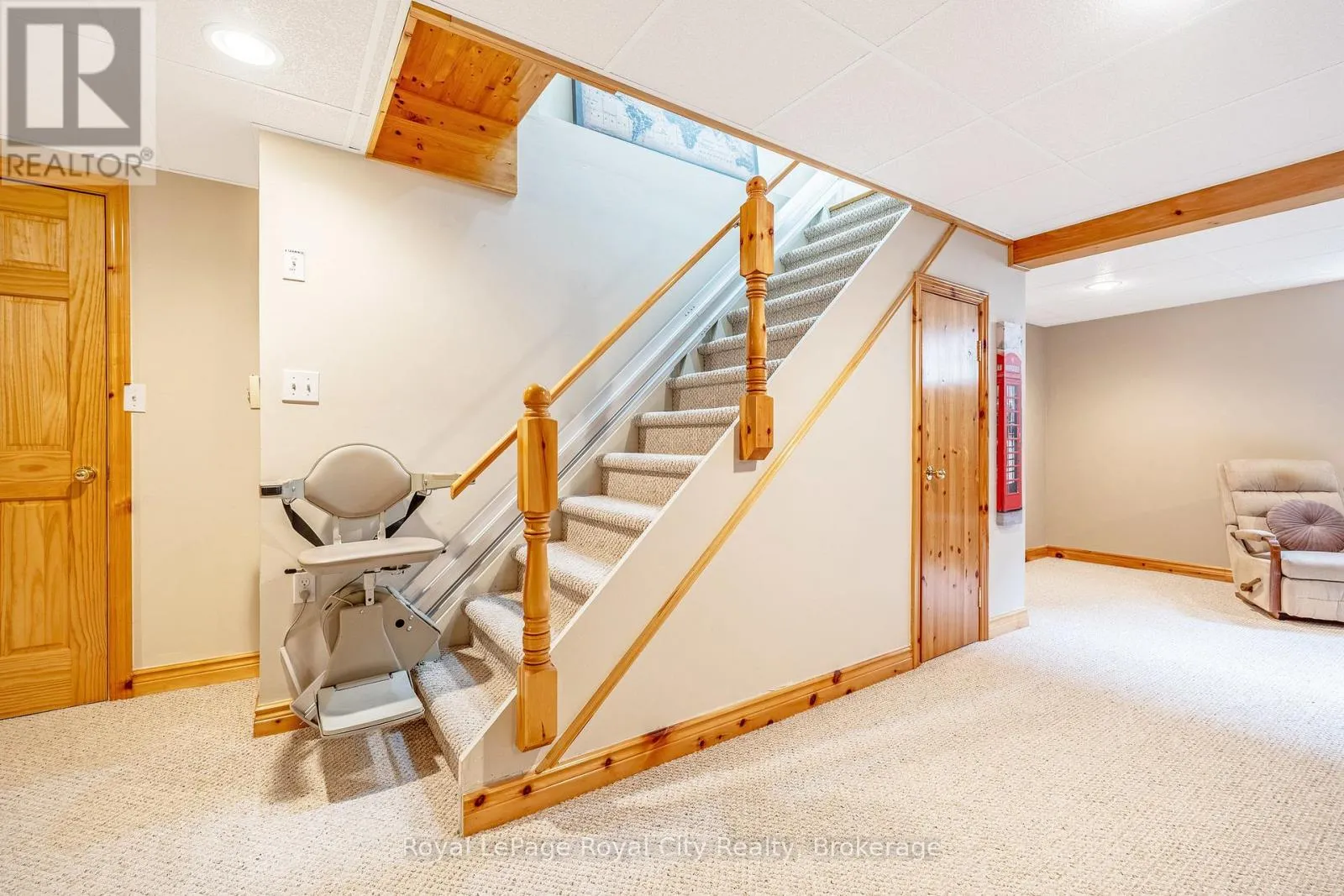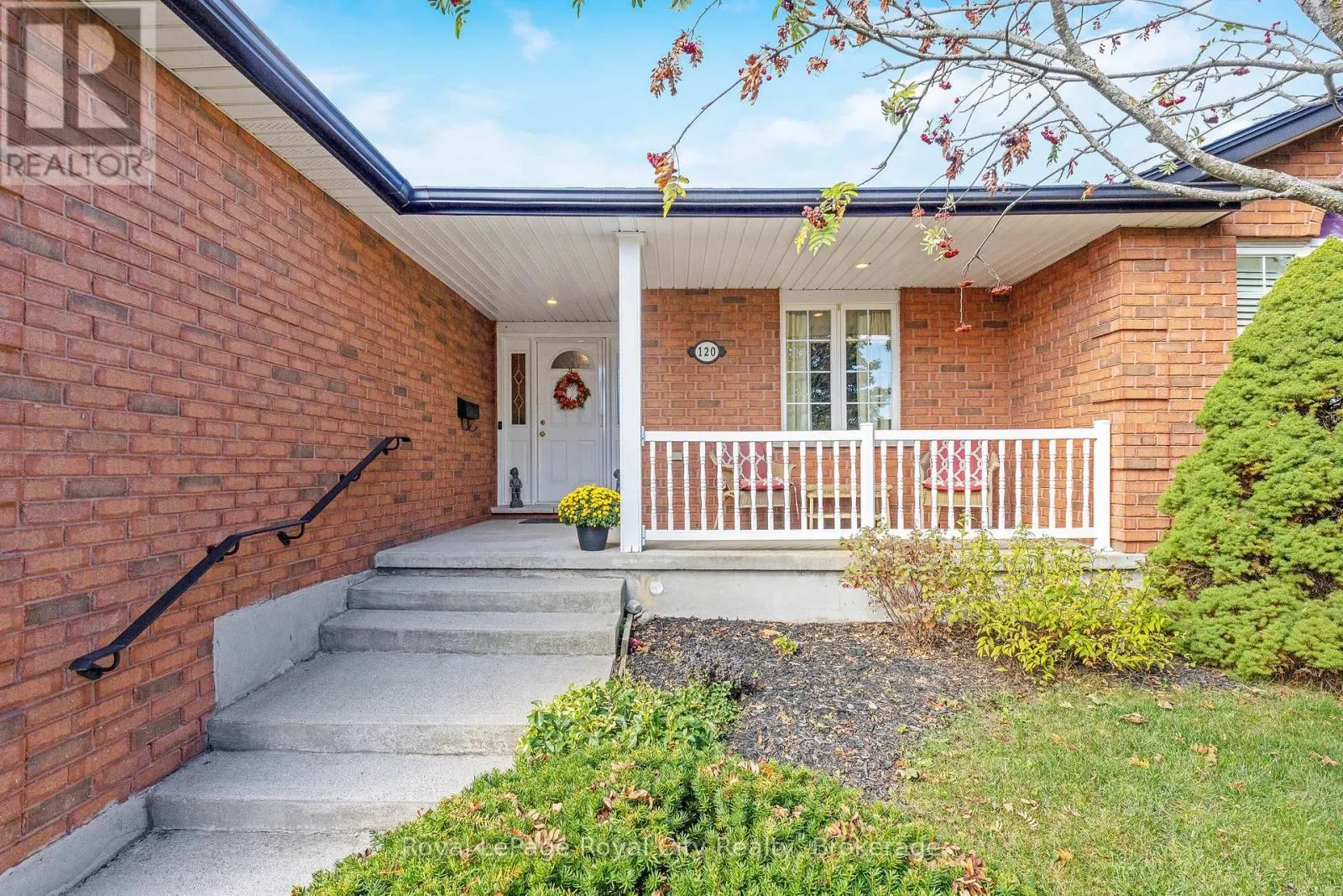 Cross Streets: Bernardi Cres & May St. ** Directions: Hwy & to MacLennan St. Right on Henry St. Left on May St, Right on Bernardi Cres. Welcome to 120 Bernardi, nestled on a quiet, mature street, this charming all-brick bungalow has been lovingly maintained by its original owners since it was built in 2000. The main floor features a warm and inviting living room with hardwood floors and a gas fireplace, along with both a formal dining room and a bright dinette area. There are three main-floor bedrooms and two full bathrooms, including a spacious primary suite complete with a 4-piece ensuite and walk-in closet. Main floor laundry adds everyday convenience, and thoughtful accessibility features include a stairlift in the garage for easy entry into the home, as well as an additional stairlift to the basement. The lower level offers an expansive, open-concept recreation room finished with berber carpet, along with a generous fourth bedroom and a 3-piece bath-a comfortable and flexible space for guests or family. The backyard is a peaceful retreat, offering excellent privacy and a large newer wood deck ideal for outdoor enjoyment. The location is highly desirable, just steps from Valentino Park and within close proximity to Harris Mill Public School. This is a beautifully cared-for property that truly shows 10+. (id:27476)