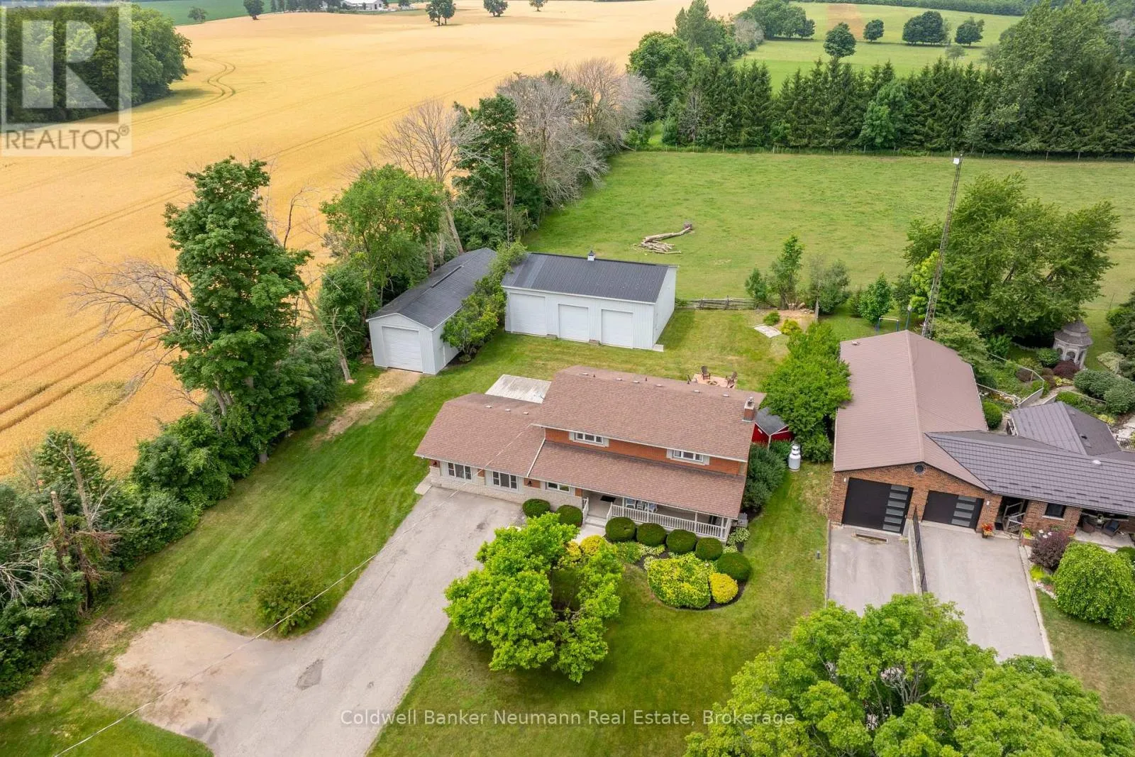 Cross Streets: watson and mill road. ** Directions: North on Watson , Right on Mill Rd, House on left hand side. Country living at its best! This spacious home loved by one family for over 35 years, sits on just shy of an acre of beautifully landscaped land with serene views of open countryside featuring two shops! Offering over 2,700 sq ft of living space, including a 400 sq ft above-grade bachelor style in law suite, ideal for multigenerational living. The main two story home features a large wood kitchen with stainless steel appliances, ample storage, and quartz countertops. In addition to a separate dining room, and a bright living room with an electric fireplace. Main floor laundry, a 4-piece bath, and a dedicated office/flex space provide everyday convenience. The homes second floor features 4 generous bedrooms, and a full 4-pc bath. The fully finished basement offers additional living space and abundant storage. Additionally - the property features a 20kw generator for an added peace of mind to the homeowner. Outside, you'll find two impressive shops: a 20x60 ft gravel-floor shop with 14ft door - perfect for RV or equipment storage - and a 32x47 ft three-bay shop with one, 12ft and two, 10ft doors boasting over 2,700 sq ft of combined shop space for hobbies, business, or storage needs. The backyard is private and landscaped with no rear neighbours. A perfect combination of function, space, and flexibility in a peaceful rural setting. Just minutes to town amenities with a quick drive into Guelph. A must-see! (id:27476)