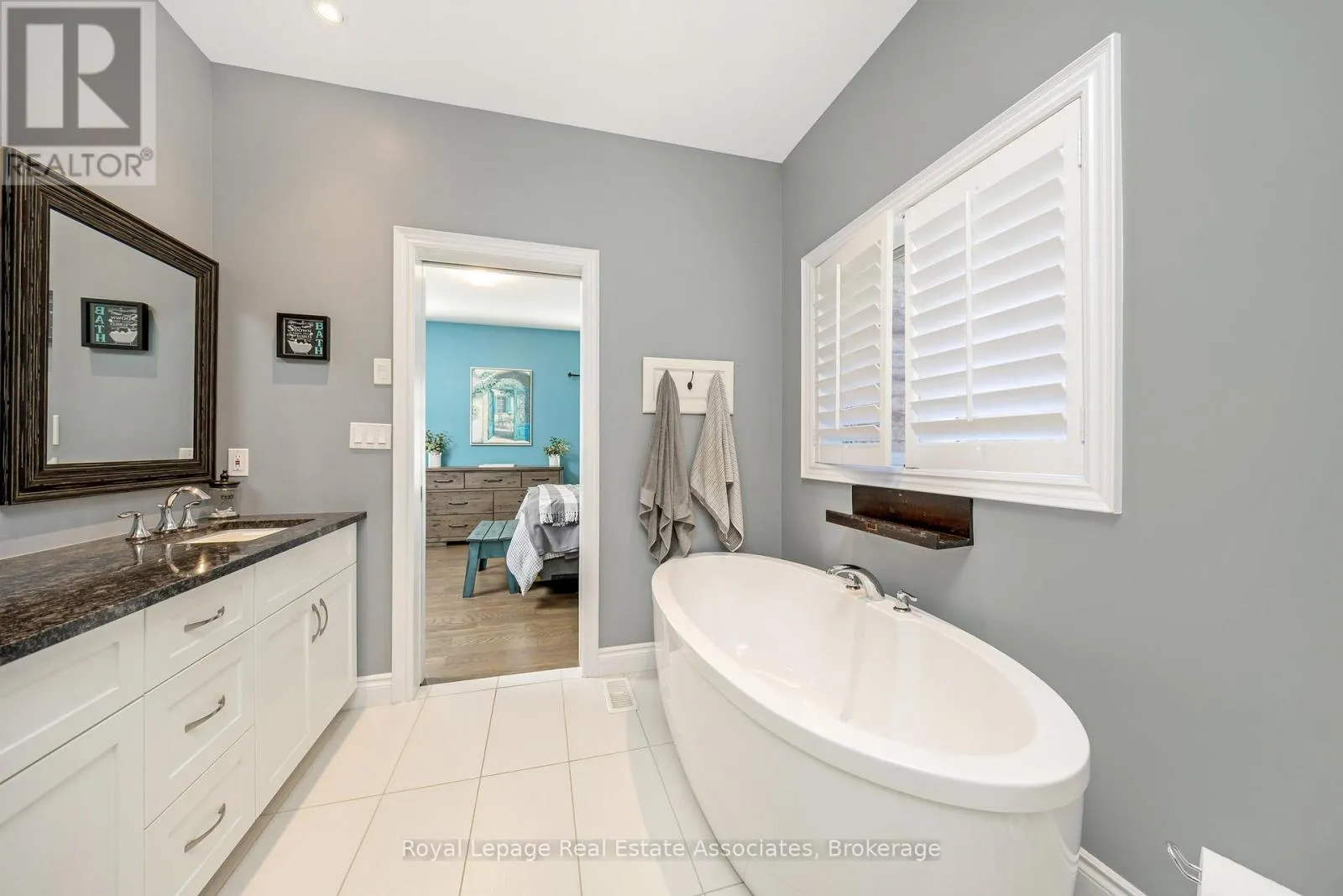 Cross Streets: Hickory Drive/Chestnut Drive. ** Directions: Hwy 7 to Ridge Rd. Left on Joliffe, up hill Right on Hickory, Left on Chestnut. Gorgeous Charleston Built Bungaloft with over 3000 sq ft. of Finished Living Space Located in the Charming Town of Rockwood. This Home features a Stunning Barzoti Kitchen with Granite Counter Tops, Back Splash, Large Centre Island and Stainless Steel Appliances. The Primary Bedroom located on the main floor has a Large walk-in Closet and 5 Piece Bath, Open Concept Living/Dining Room with Gas Fireplace and Plenty of Natural Light. Upstairs to the Loft with 2 Great Size Bedrooms and 4 Piece Bath. Downstairs to Finished Basement , 3 Piece Bath and a Second Gas Fireplace. No Sidewalk and Close to the Downtown and all Amenities. (id:27476)