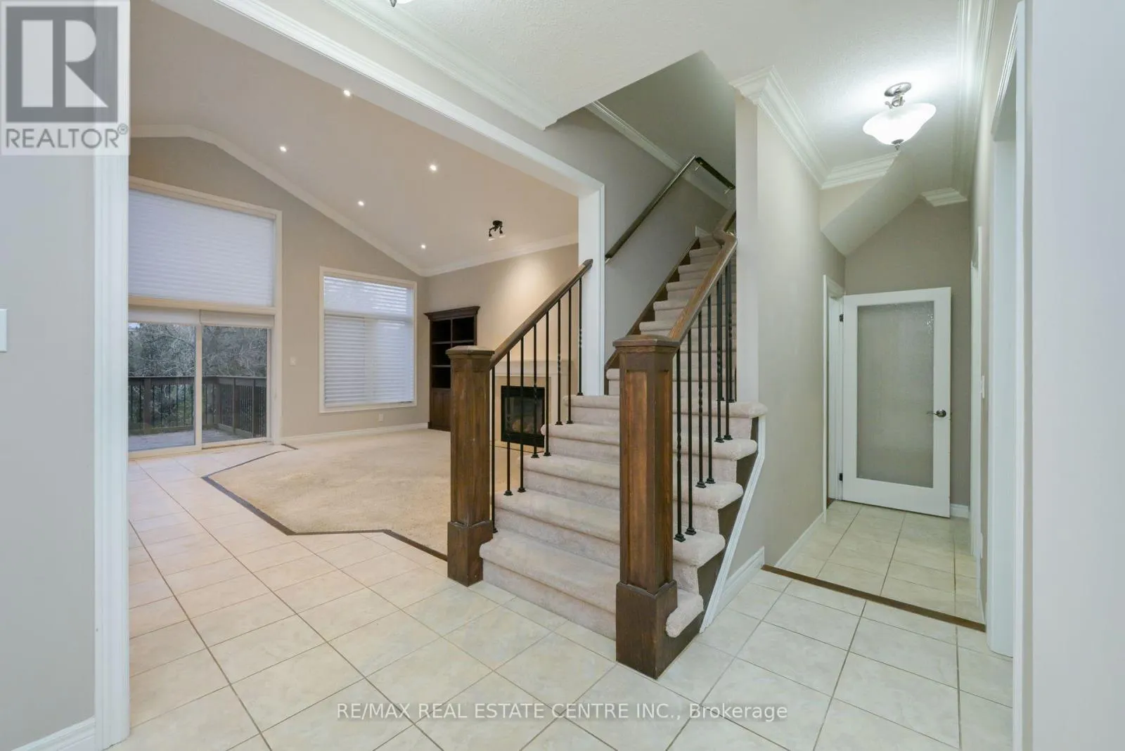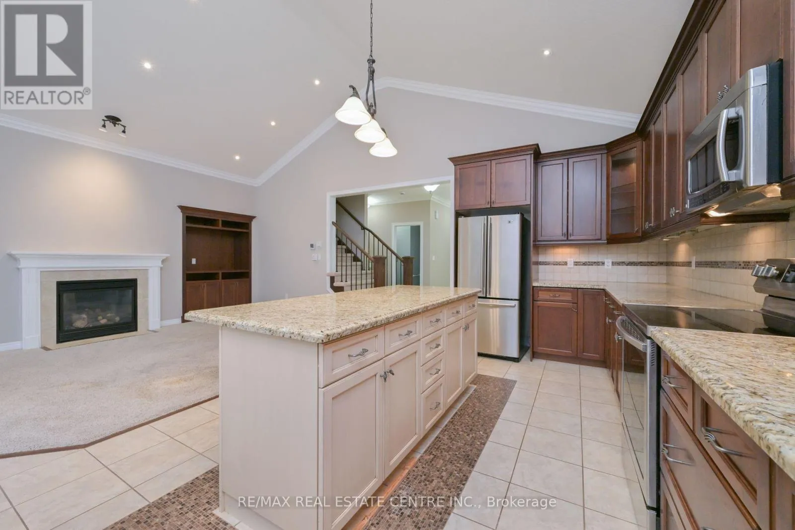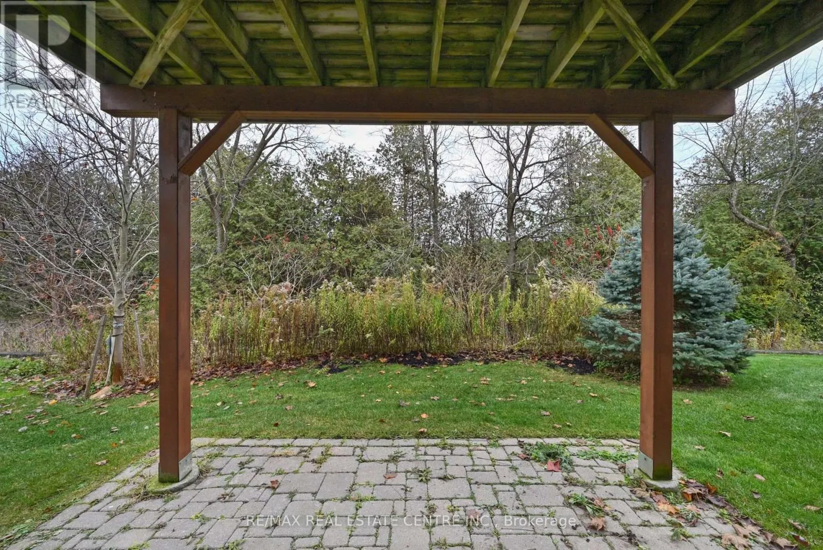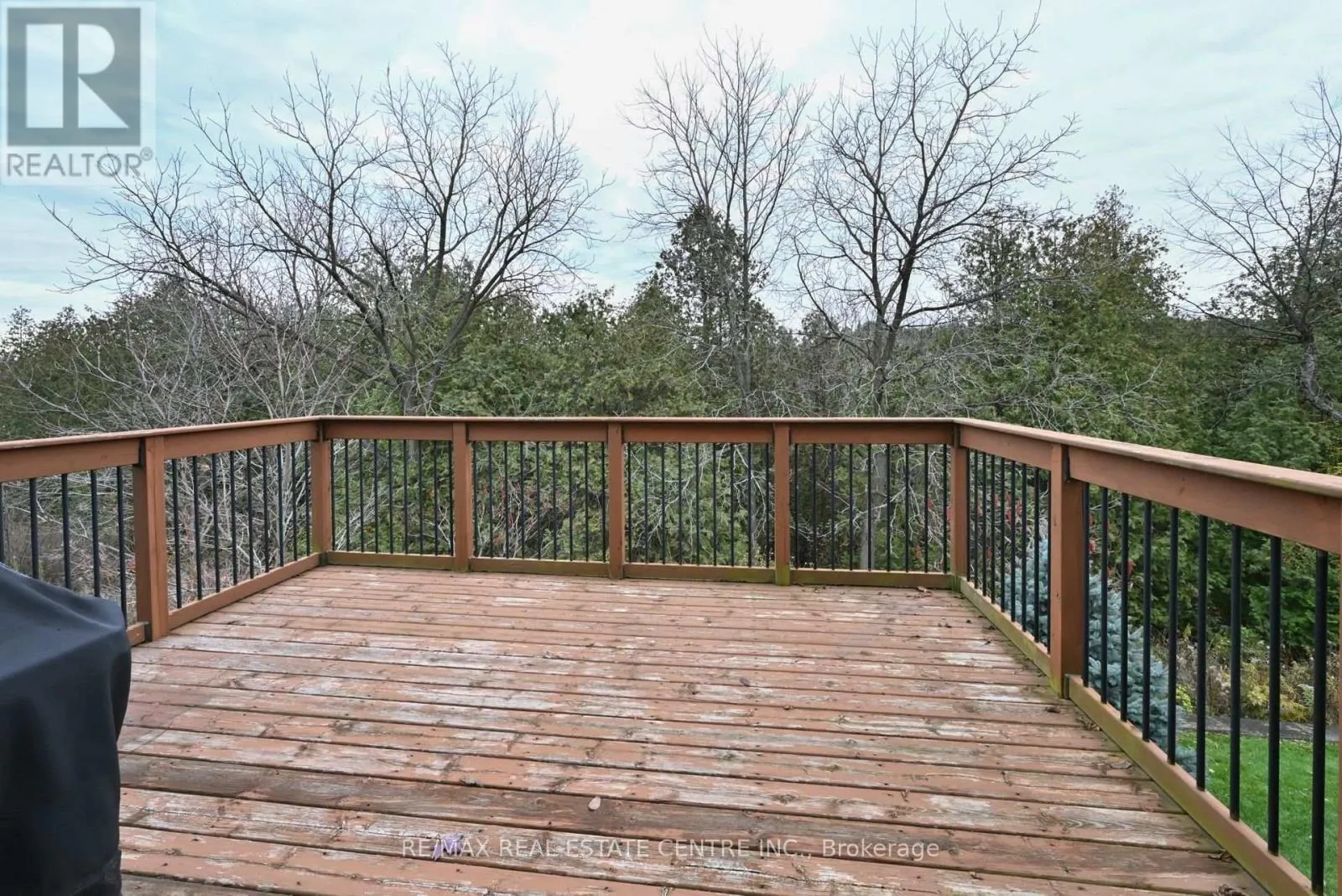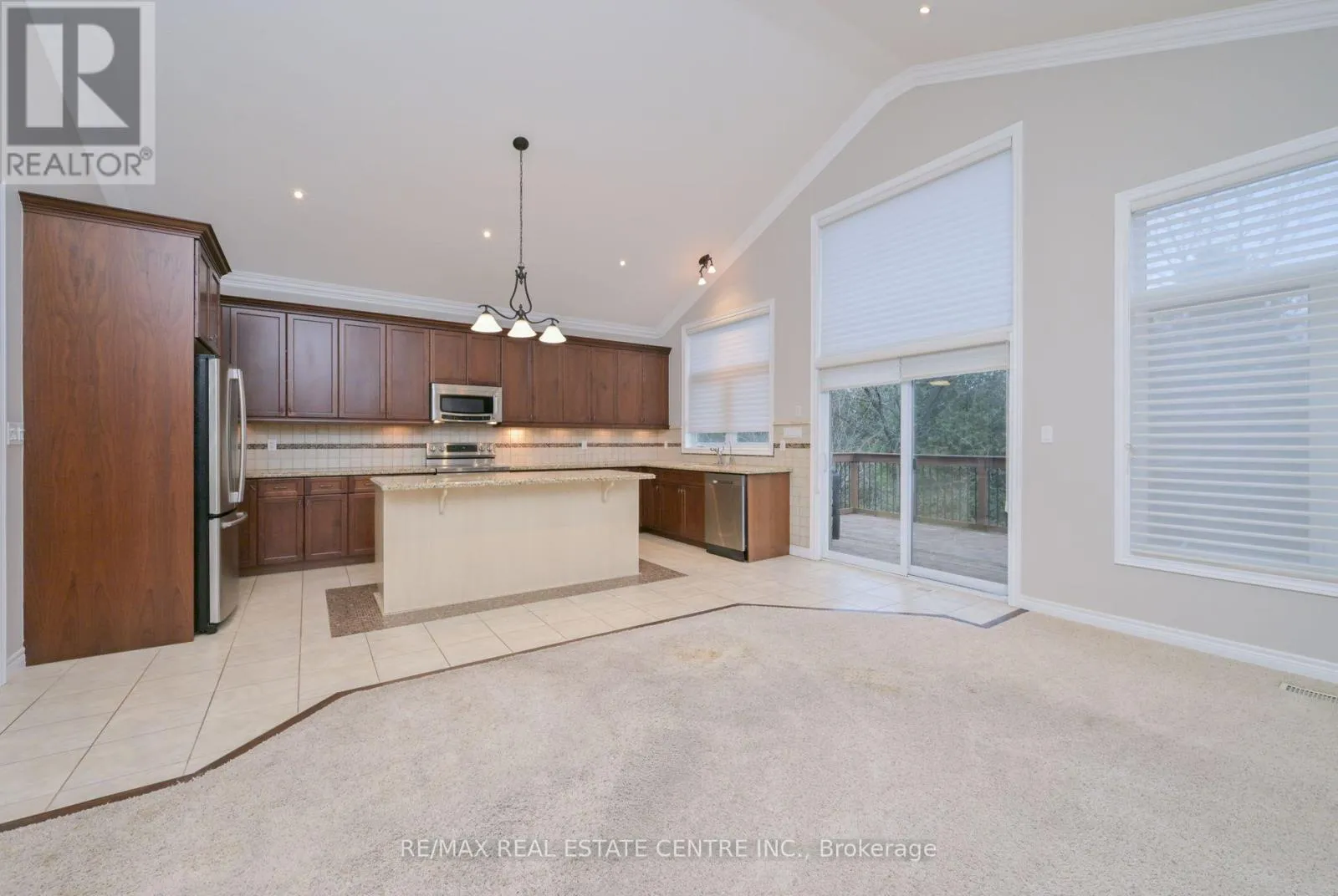 Cross Streets: Hwy 7 and Cobblestone. ** Directions: Main to Cobblestone to Mill. This impressive brick and stone home will take your eye! Located on a quiet cul-de-sac in the quaint village of Rockwood, this freehold beauty is positioned on a large pie shaped premium ravine lot. No lawn mowing and no snow shoveling - it's all done for you! Backing onto mature trees, this tastefully decorated and well cared for home offers a spacious foyer, a den that could be used as an office or 3rd bedroom, dining room. The kitchen is spectacular! Tons of custom walnut cabinetry, centre island, granite counters, stainless appliances overlooking the living area that features a gas fireplace with built in shelving and a wall of impressive windows with a walkout to an expansive deck with gas bbq and natural gas hookup. This is perfect for enjoying your morning coffee or an evening with friends. The second level opens to a built-in workspace, primary bedroom with a luxurious 3pc ensuite and walk-in closet. Second bedroom also has an ensuite for family or guests. Lower level is finished with a cozy recreation room with gas wood stove and a walkout to your own landscaped yard. The 3pc washroom allows comfort for all your guests. Truly Elegant! (id:27476)