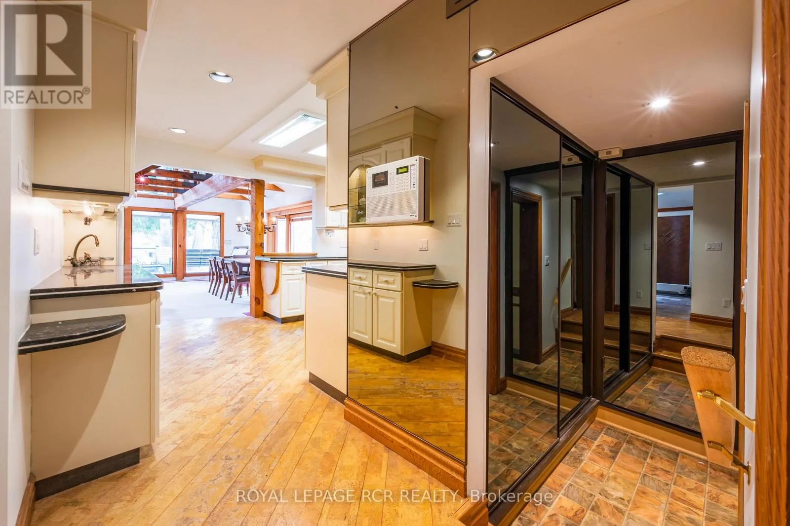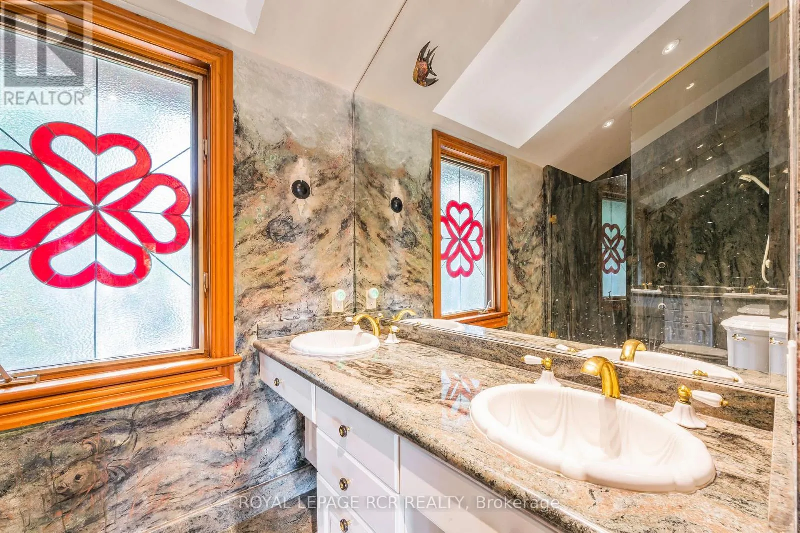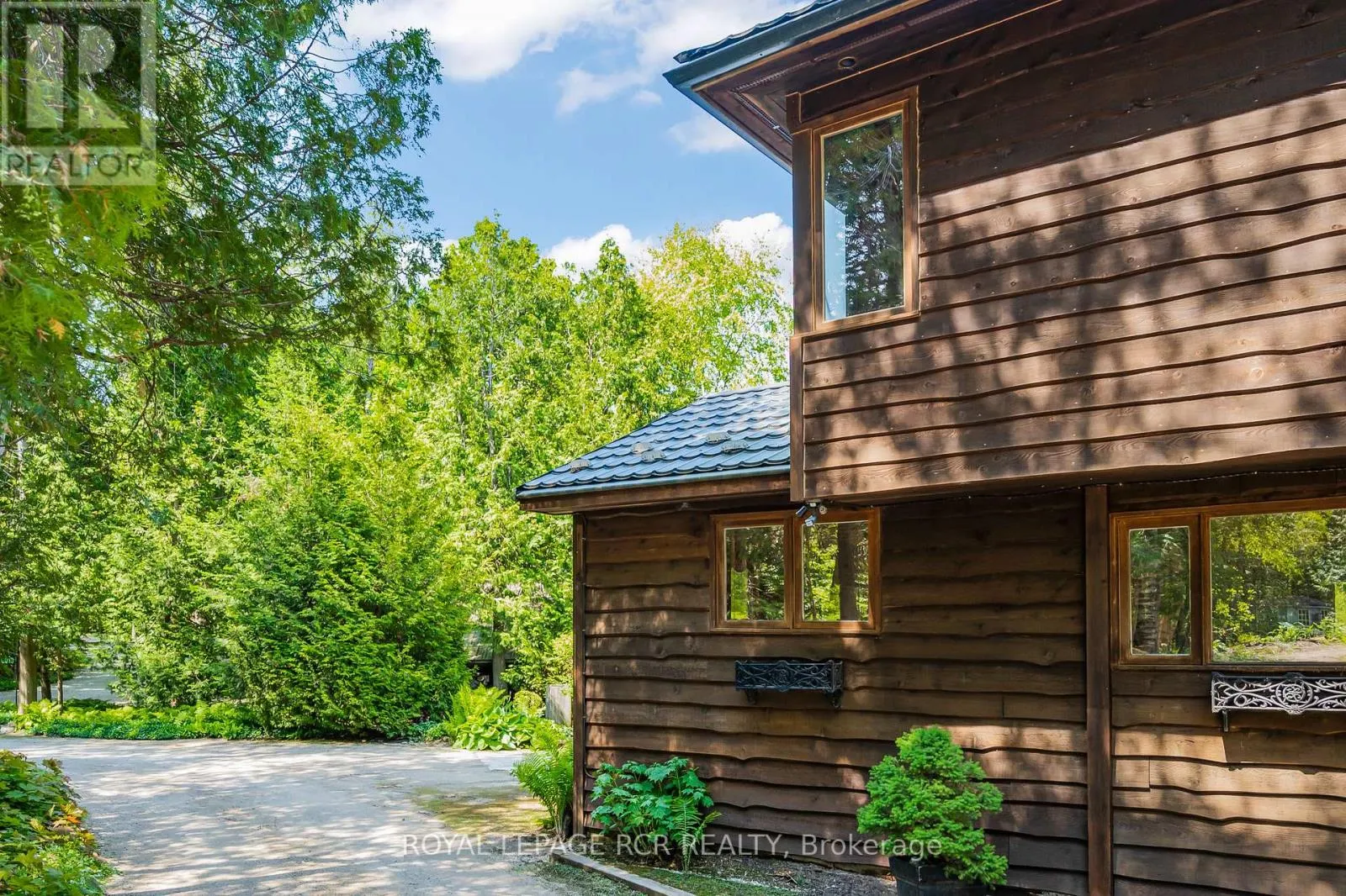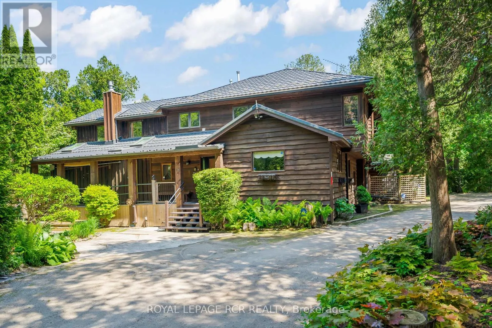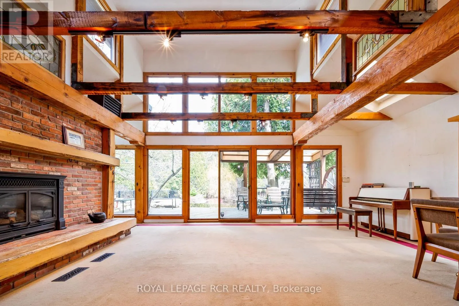 Cross Streets: Fourth Line/Guelph Line & Highway 7. ** Directions: South on River Bluff Path from Highway 7. Tucked away on a secluded road, 15 River Bluff Path offers an extraordinary sanctuary blending natural beauty, creative energy, and quiet seclusion. Set on 13 acres with over 750 feet along the Eramosa River, this property presents a once-in-a-lifetime opportunity, with many unique features grandfathered in by the GRCA. The winding drive leads through a forest of mature trees to an almost otherworldly scene where a breathtaking infinity pool appears to spill into the river, surrounded by tranquil vistas and lush vegetation. Enjoy the scenery from the tiered deck, relax in the indoor hot tub, or watch wildlife such as deer, herons, and turtles. The private trail system leads to whimsical outbuildings, including a screened wooden pergola, a Japanese Maple Zen garden, and an outdoor privy. Once owned by a renowned Canadian naturalist, the property brims with creativity and inspiration. Inside, the great room captivates with soaring ceilings, stained glass accents, rustic wood beams, and a dramatic gas fireplace. A wall of windows connects the indoors to the breathtaking river view. The adjoining dining nook is perfect for gatherings, while the spacious kitchen features ample storage, a skylight, and an iconic AGA gas cooker. The main floor includes a vaulted-ceiling bedroom, a dressing/hobby room, two three-piece bathrooms (one wheelchair accessible), and a large laundry room. Upstairs, a loft-style theatre room provides an ideal space for entertainment, and two additional bedrooms share an impressive four-piece bathroom with heated floors and a spacious walk-in glass shower. With a two-car garage and an intercom system throughout, this retreat guarantees comfort and connectivity. Despite its privacy, it's just minutes from Rockwood's amenities and easily accessible to Guelph, Milton, and Pearson Airport. 15 River Bluff Path is more than just a home - it's a legacy property rooted in nature and creativity, where every moment feels extraordinary. (id:27476)
