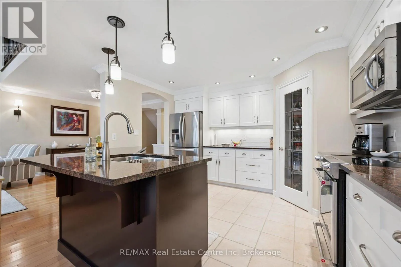 Cobblestone Pl Extensively renovated 2-bdrm, 2.1-bath executive townhome in heart of the picturesque community of Rockwood! Set on peaceful street just steps from the river, trails & downtown core, this is where carefree upscale living meets small-town charm. Curb appeal is undeniable W/interlock driveway, front porch, manicured gardens & attached 2-car garage. Inside the open-concept layout is impressive W/cathedral ceilings, arched entryways, sun-filled windows including skylight & seamless flow from great room to the dining area, accented by hardwood floors. In the dining area, B/I buffet cabinet/espresso bar provides ample storage blending functionality W/elegance. Garden doors offer access to back deck creating effortless indoor-outdoor flow. Renovated kitchen W/top-tier S/S appliances, custom 2-toned cabinetry, granite counters & centre island W/pendant lighting & seating. W/I pantry provides smart storage! Completing this level is laundry room & 2pc bath. Upstairs the primary bdrm features picture window, W/I closet & dbl-door entry to 5pc ensuite W/vanity with granite & dbl sinks, soaker tub & sep glass shower. Bright loft office W/custom shelving adds perfect space for working from home, reading or creative pursuits. Finished lower level offers incredible flexibility W/above-grade windows, rec room W/fireplace that could also serve as home gym or second living space. Large bdrm W/dbl closet & 3pc bath make this ideal for guests, teens or in-laws. Private backyard oasis W/new deck & spacious patio surrounded by mature landscaping. Just mins from Rockwood Conservation Area, enjoy quick access to limestone cliffs, caves, canoeing, hiking & historic Harris Woollen Mill ruins. Short walk brings you to downtown for shops, cafes & dining. Effortless commutes to Guelph, Milton, Halton Hills & Brampton. Whether you're downsizing or upgrading your lifestyle this beautiful home delivers perfect balance of luxury, comfort & community. Welcome to Riverwalk where nature meets elegance! (id:27476)