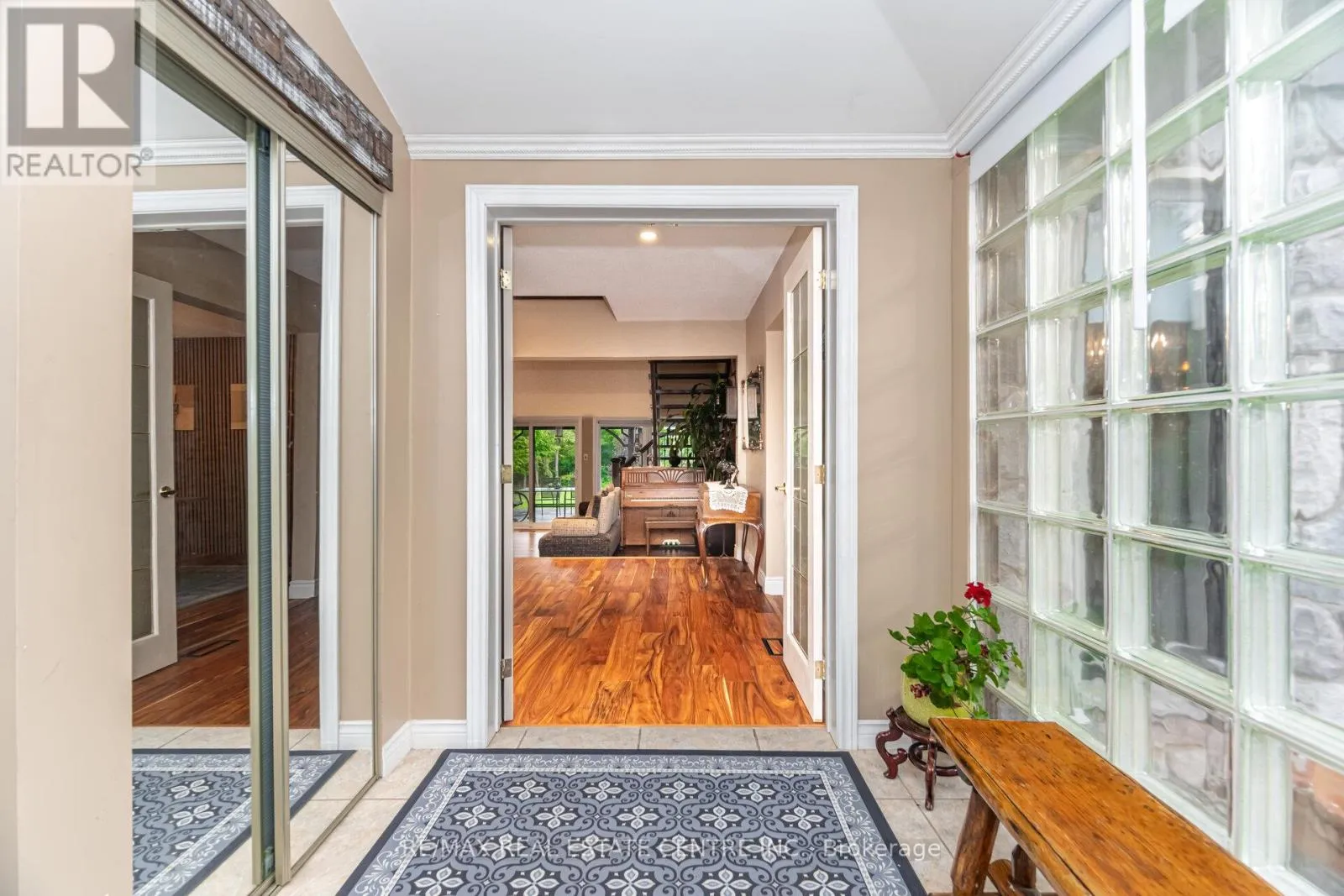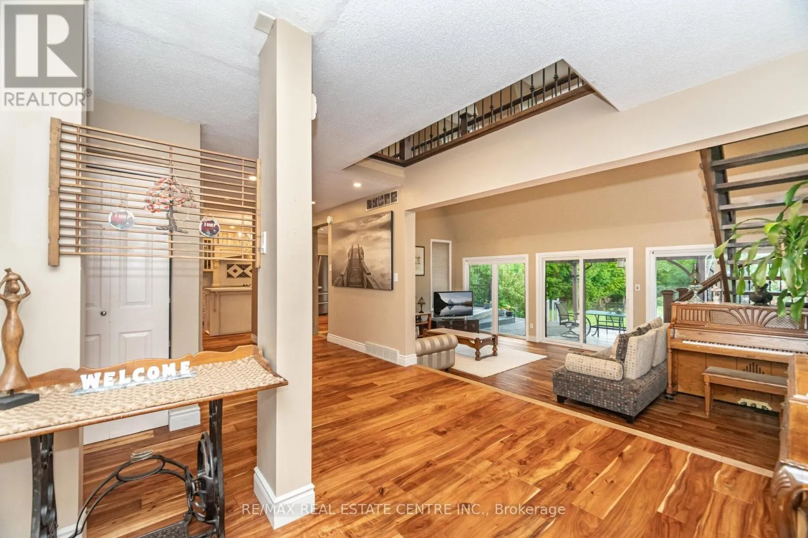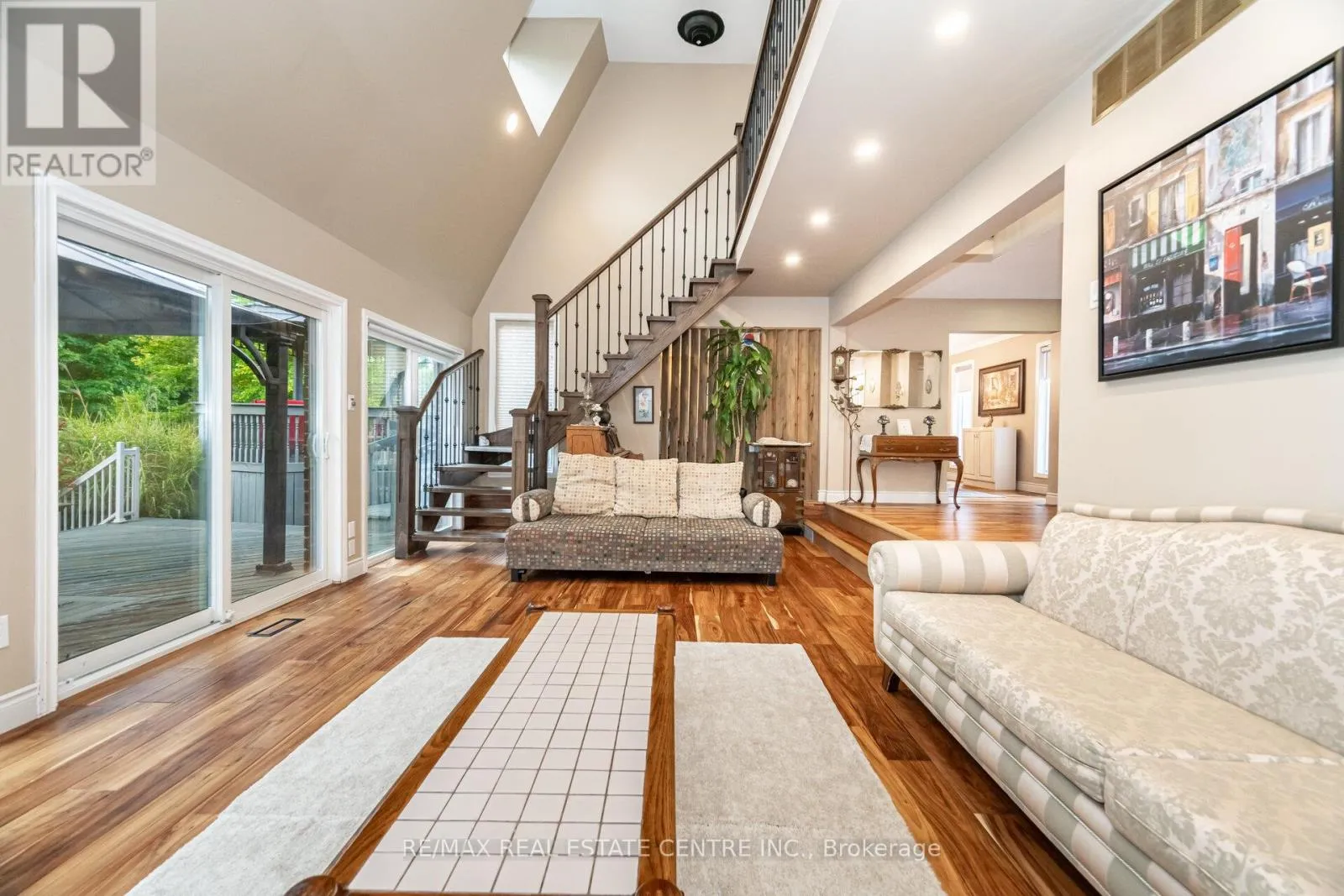 Victoria Road/Conservation Rd Tucked away from the noise of the outside world, this property unfolds like a hidden oasis in an executive subdivision, steps from Guelph Lake Conservation Area. Welcome to your dream home this stunning 3-bedroom, 4-bathroom executive-style residence offers the perfect blend of luxury, comfort, and natural beauty. Nestled on a sprawling acre lot and backing directly onto the Speed River and Royal Recreation Trail, this property offers a rare, serene country-like setting just minutes from modern amenities. From the moment you arrive, you'll be captivated by the peace and privacy this home affords. Soaring ceilings and oversized windows flood the main floor with natural light, highlighting the thoughtful design and beautiful tile and hardwood flooring throughout. The spacious living room is perfect for entertaining or relaxing, while the formal dining room and stylish eat-in kitchen with granite countertops and stainless-steel appliances offer both form and function. Step through sliding glass doors onto a gorgeous 3-tier deck, complete with two gazebos, overlooking a lush, tree-lined backyard with direct access to the Speed River, a true outdoor retreat in your own backyard. Head upstairs to find three spacious bedrooms, including a primary suite with walk-in closet and private ensuite, as well as a luxurious 4-piece main bathroom with double sinks and a stand-up glass shower. The fully finished basement (over 1,000 sq ft) featuring engineered hardwood flooring, a massive recreation room, 3-piece bathroom, bedroom and a flexible bonus room perfect for a home gym, office, hobby room, or playroom. Enjoy the spacious double car garage and plenty of parking space outside for all the toys. (id:27476)
