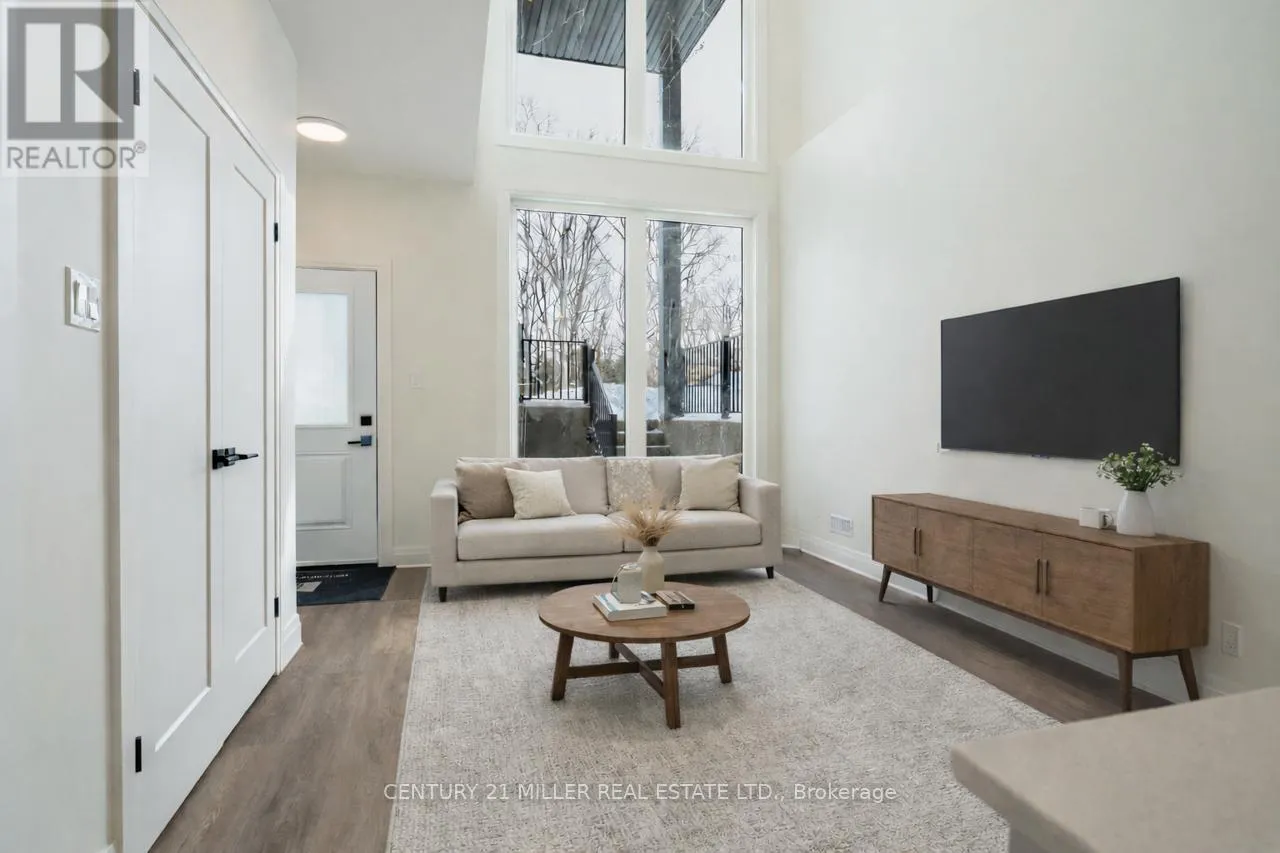 Cross Streets: Main St S/Almas St. ** Directions: Main St S - Guelph St - Richardson St. Welcome to this bright and modern lower-level apartment offering approximately 960 square feet of thoughtfully designed living space in a quiet, sought-after setting. The standout feature is the dramatic living room with soaring 20-foot ceilings and expansive windows that fill the home with natural light - a unique feature not found in homes like this. The contemporary kitchen includes under-cabinet lighting, clean finishes, and a functional layout perfect for everyday living. This unit features two bedrooms, a four-piece main bathroom, plus an additional two-piece powder room for added convenience. Step outside to your private covered patio, ideal for relaxing or enjoying fresh air year-round. Even better, the unit includes two tandem driveway parking spaces - something most rentals of this size simply don't offer. Tucked away at the end of a quiet street and overlooking forest and parkland, this is the perfect place to call home. Please note: Photos have been virtually staged for your viewing pleasure. (id:27476)