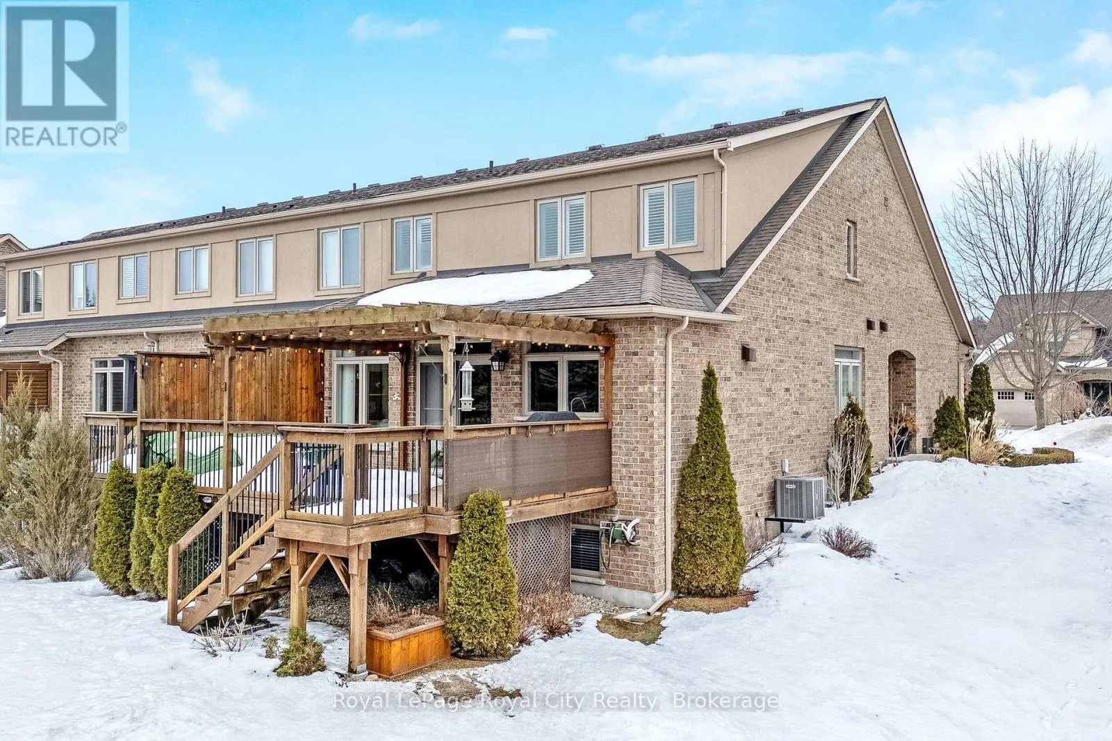 Cross Streets: Cobblestone Place & Millview Court. ** Directions: Hwy 7 to Cobblestone Place, Right on Millview Court. Welcome to 129 Millview Court Exceptional end-unit townhome showcasing refined finishes, thoughtful design, and a truly elevated standard of living. Set on a premium lot, the home features a beautiful elevated rear deck overlooking the yard-an inviting outdoor retreat ideal for relaxing or entertaining. Inside, the home reveals an elegant open-concept layout enhanced by abundant natural light, upscale flooring, and carefully selected high-end finishes throughout. The stunning kitchen serves as the heart of the home, offering premium cabinetry, granite countertops, and quality appliances, seamlessly connected to the spacious living and dining areas designed for both everyday comfort and sophisticated gatherings. The upper level offers a well-appointed primary suite providing a private retreat complete with a walk-in closet and beautifully finished ensuite bath. The additional bedroom offer plenty of space and includes it's own ensuite. The finished lower level extends the living space with a versatile recreation area ideal for relaxing, entertaining, or family enjoyment. Designed for both luxury and convenience, the property also benefits from professionally maintained grounds, including lawn care, and snow removal-allowing for effortless year-round living. An exceptional opportunity to experience elegant, low-maintenance living in a highly desirable setting. The monthly fee of $130.59 covers Grass Cutting, Fertilizer, Leaf Cleanup and Snow shoveling to your door. Furnace & A/C - 2025, Water Softener - 2019. (id:27476)