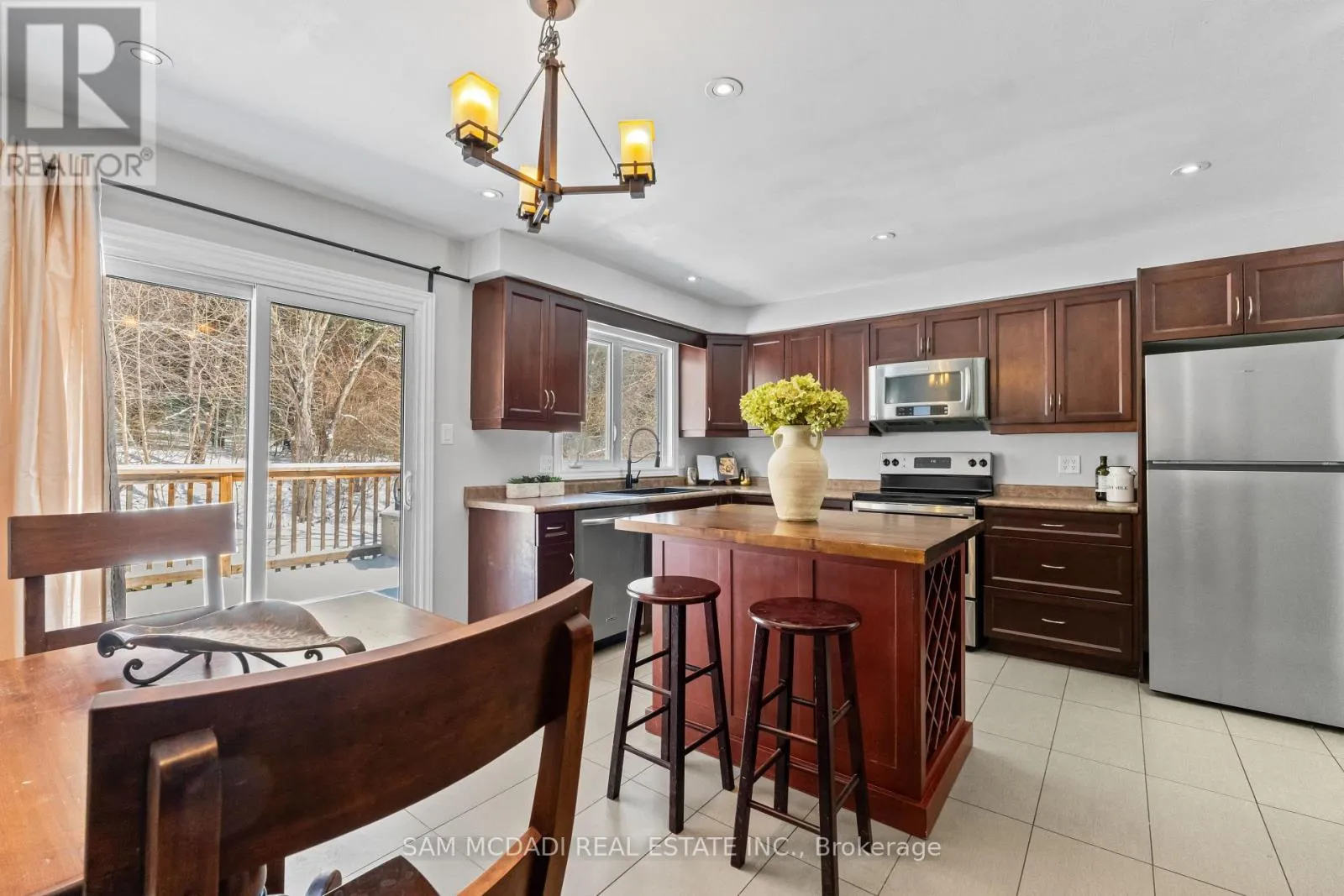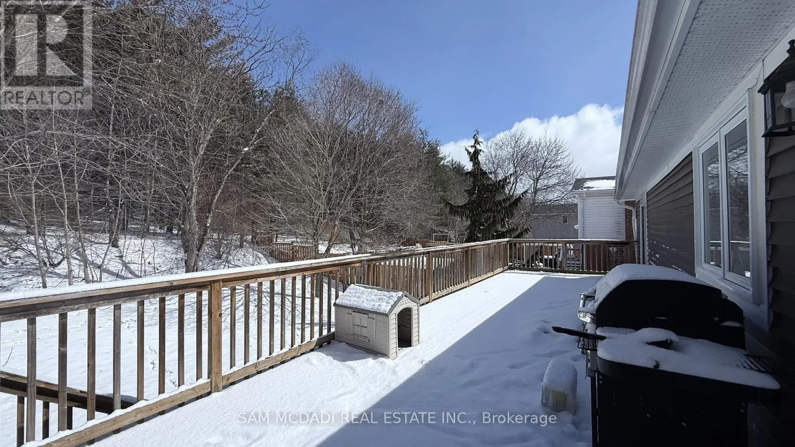 Main Street / Christie St. Welcome to 241 Christie St in the charming town of Rockwood! This well-maintained raised bungalow sits on a large pie-shaped lot on a quiet, family-friendly street. The home features hardwood floors in the living and dining room, a bright eat-in kitchen with plenty of cupboard space and a walk-out to the deck, and a spacious primary bedroom with a walk-in closet overlooking the landscaped backyard. The 4-pc bathroom includes a skylight, bringing in beautiful natural light.The finished lower level offers a cozy family room with a wood-burning fireplace and large above-grade windows. Step outside to enjoy a private, tree-lined backyard with no rear neighbours, backing onto a wooded area that provides exceptional privacy and a peaceful natural setting. Great opportunity to enjoy small-town living just minutes from the Rockwood Conservation Area, parks including Rockmosa Park, local schools and shops, and a short drive to Guelph with easy access to Highway 7 (id:27476)