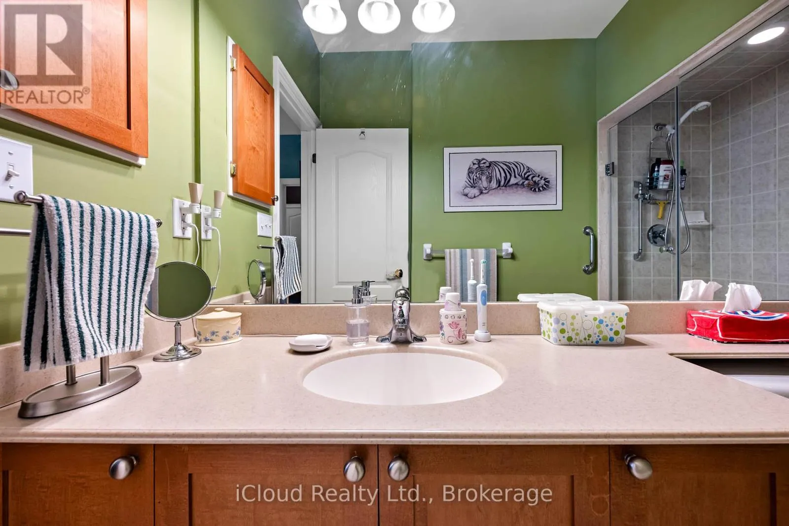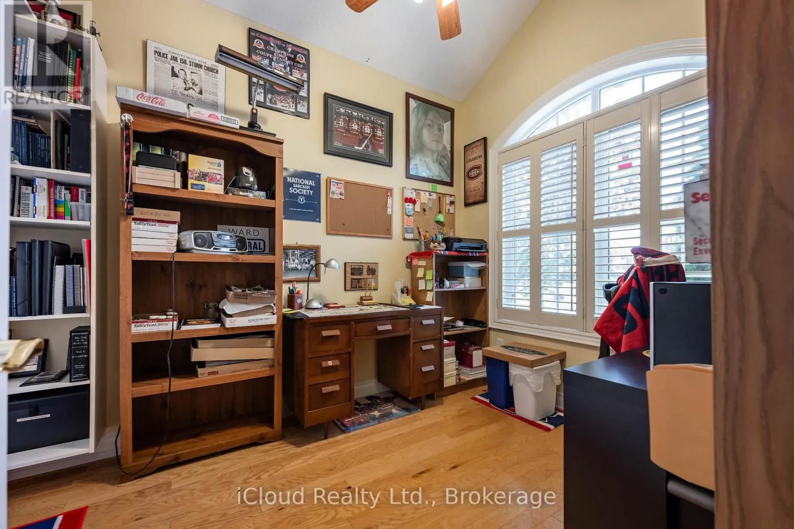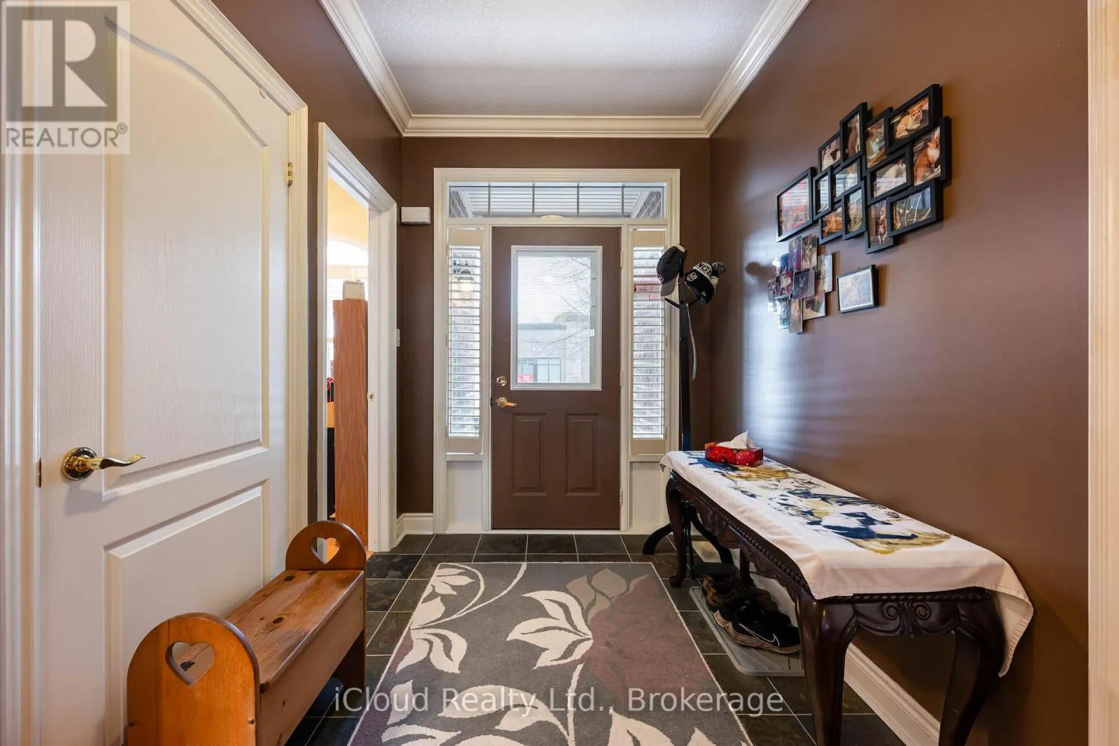 Cross Streets: Hwy #7 & Ridge Road. ** Directions: Hwy #7, turn east on Ridge Road. This welcoming BUNGALOW TOWNHOME is located on the outskirts of charming Rockwood. As you enter, the foyer has slate floors, crown molding and 9' ceilings. The primary bedroom to the left has a large bay window, vaulted ceiling, 3 piece ensuite with a generous glass shower and a large walk-in closet. Across the hall is the main 3 piece washroom and a bright sunny second bedroom currently used as a home office with a large window, bookshelves and a double door closet. Beautiful hardwood floors carry throughout and all the windows have custom California shutters. The combination living/dining room boasts an impressive vaulted ceiling, corner gas fireplace and garden doors that overlook the private fenced yard. You will not lack storage in the well appointed kitchen with a wall of upgraded cabinetry, pantry, granite countertops and a breakfast area. Pot lights and both under and above cabinet lighting make it an inviting place to prepare meals or entertain. A laundry room with additional cabinets & broom/storage closet is conveniently located off the eat-in area. Access to the rear single car garage is from the kitchen as well as an outside door from the fenced in yard. The basement is unspoiled except for framing of the utility area and rough-in for bathroom. Animal lovers will appreciate the pet door incorporated into the sidelight on the left side of the garden doors that allow their pet to safely enjoy the outside from the custom pet enclosure. This is a freehold bungalow townhome with a common elements condo corporation fee. Roof (2020) Water Heater (2022) Water Softener (2022) Dishwasher (2022) Sump Pump (2023) (id:27476)
